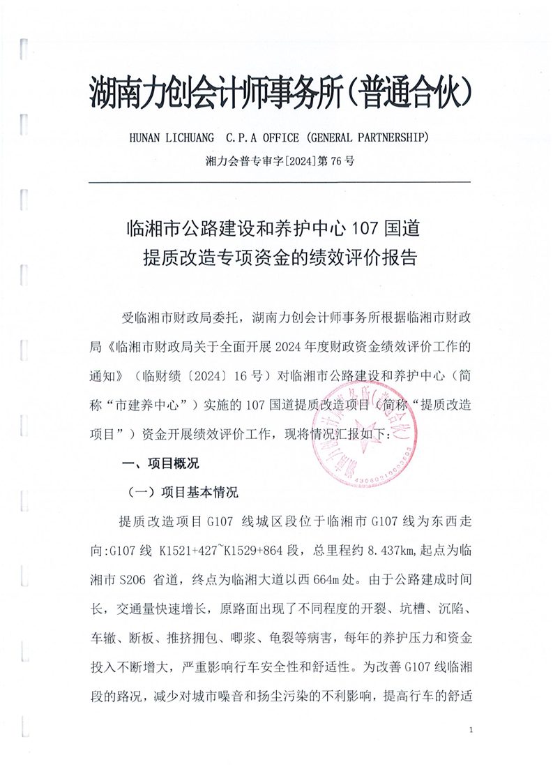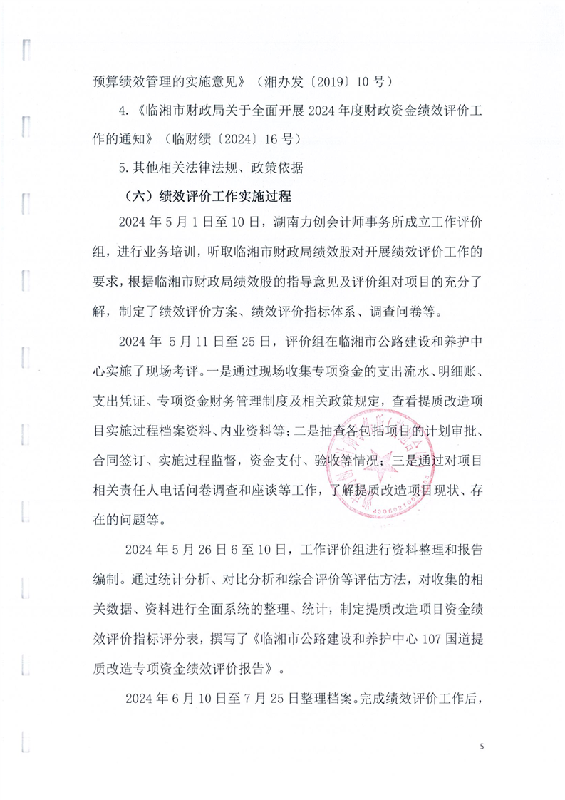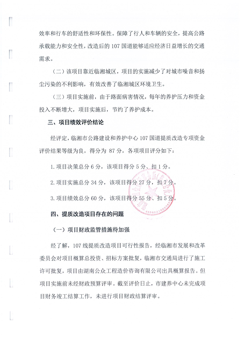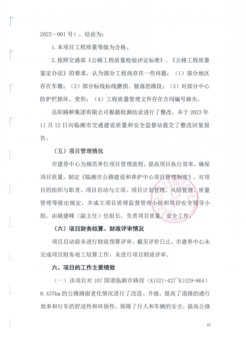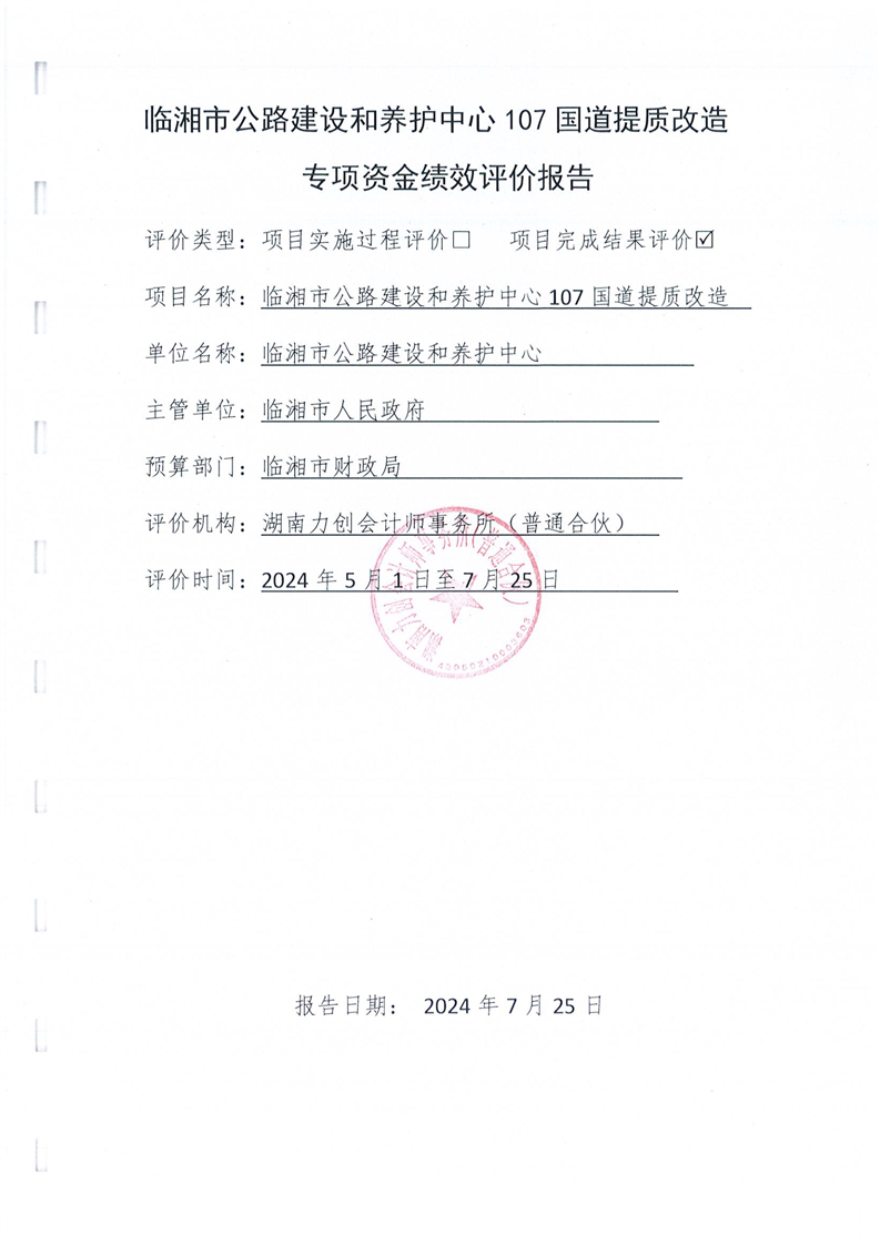 临湘市公路建设和养护中心107国道提质改造专项资金绩效评价报告