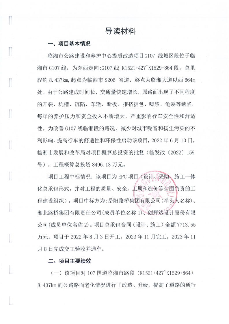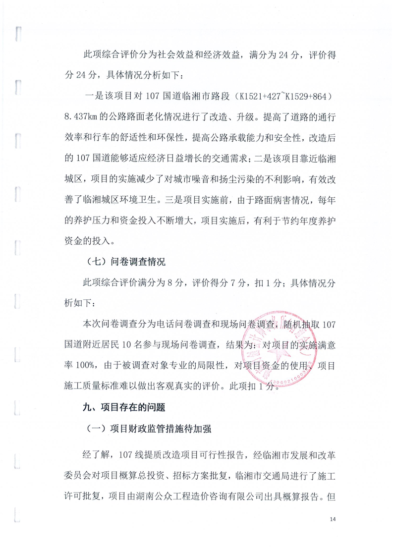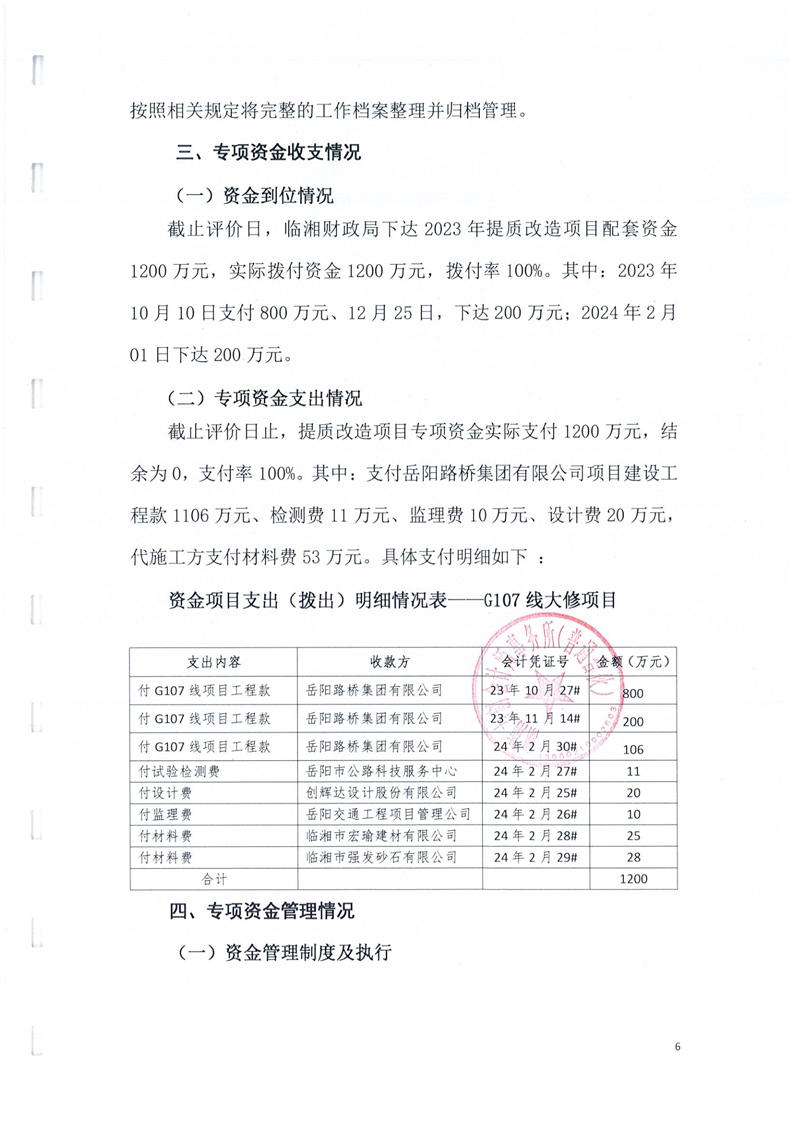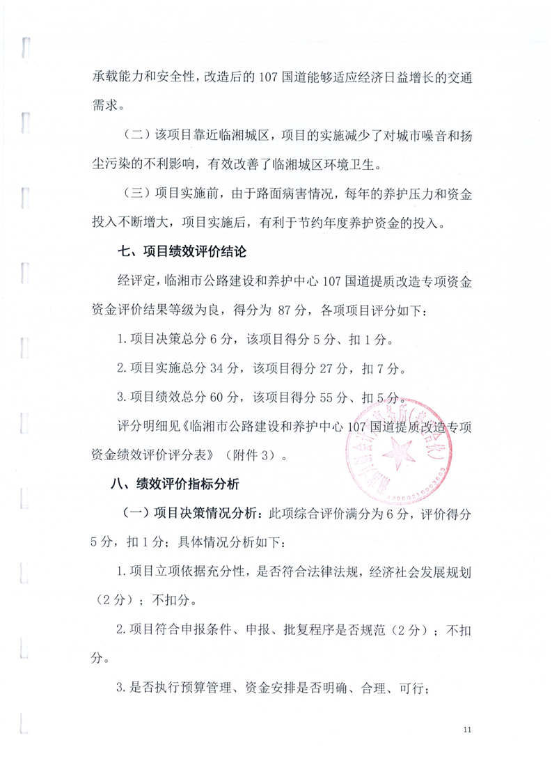 临湘市公路建设和养护中心107国道提质改造专项资金绩效评价报告