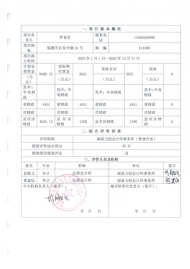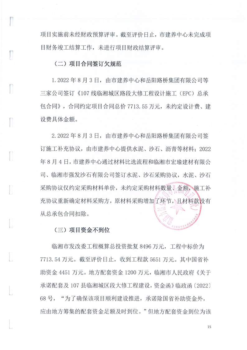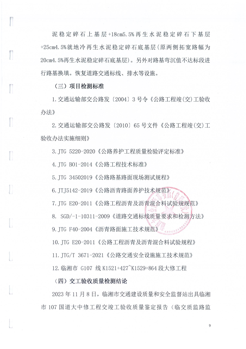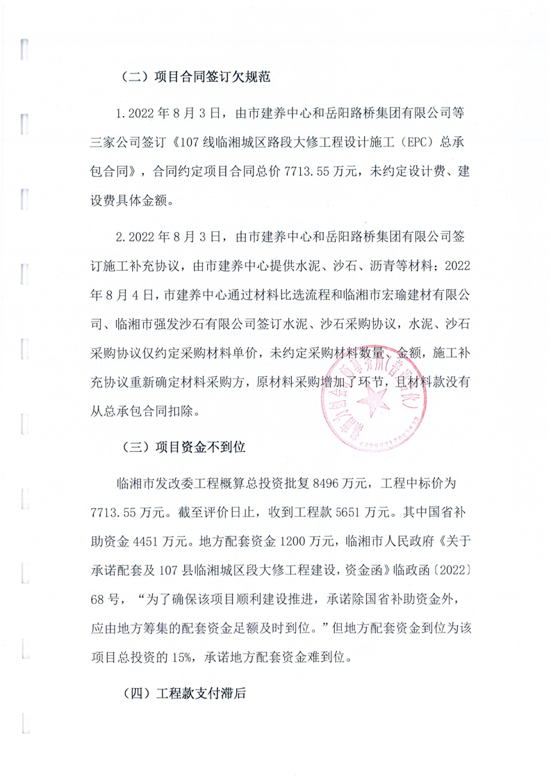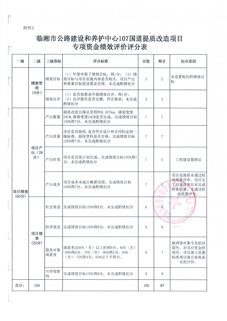 临湘市公路建设和养护中心107国道提质改造专项资金绩效评价报告