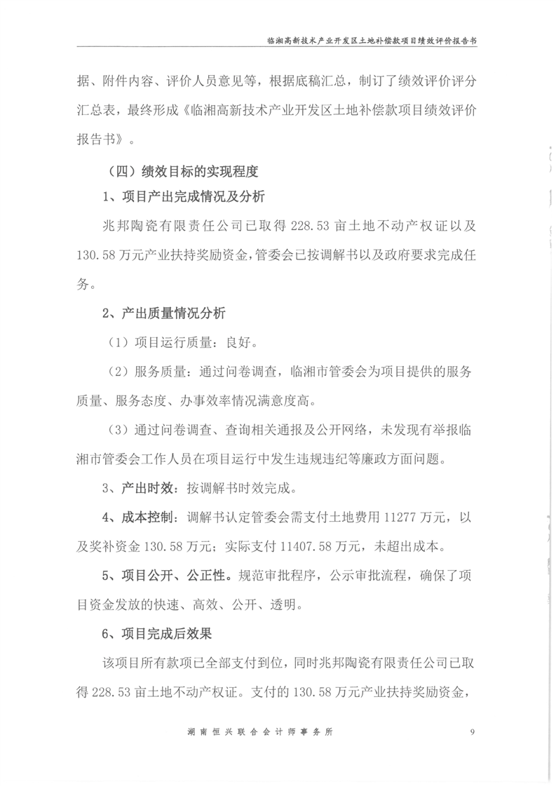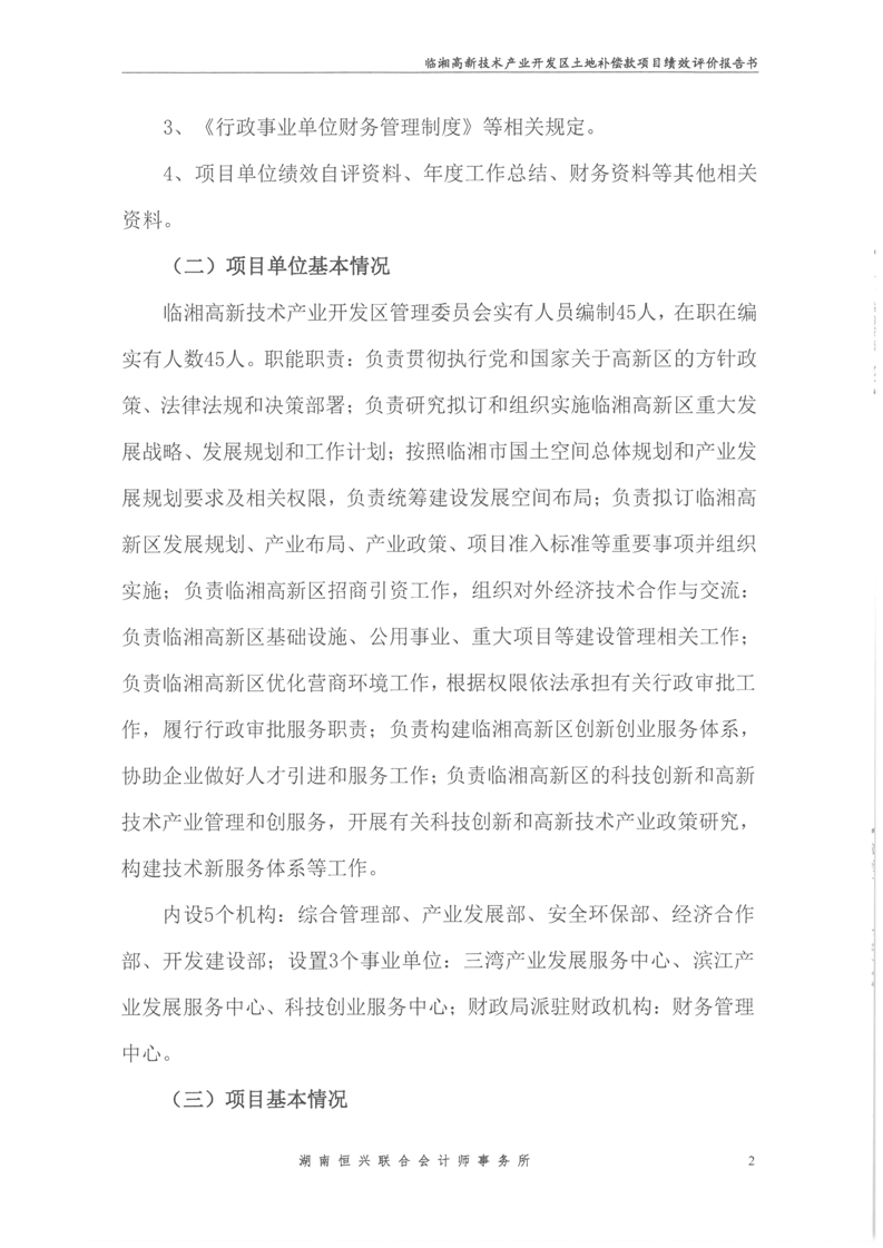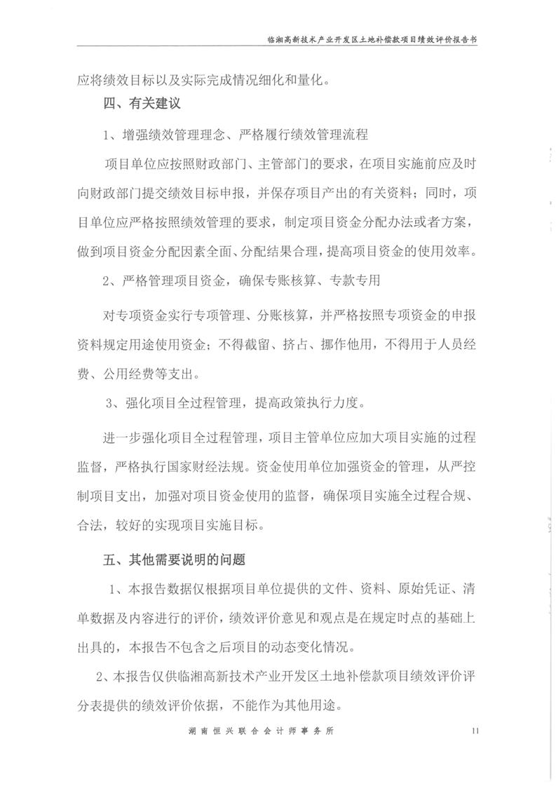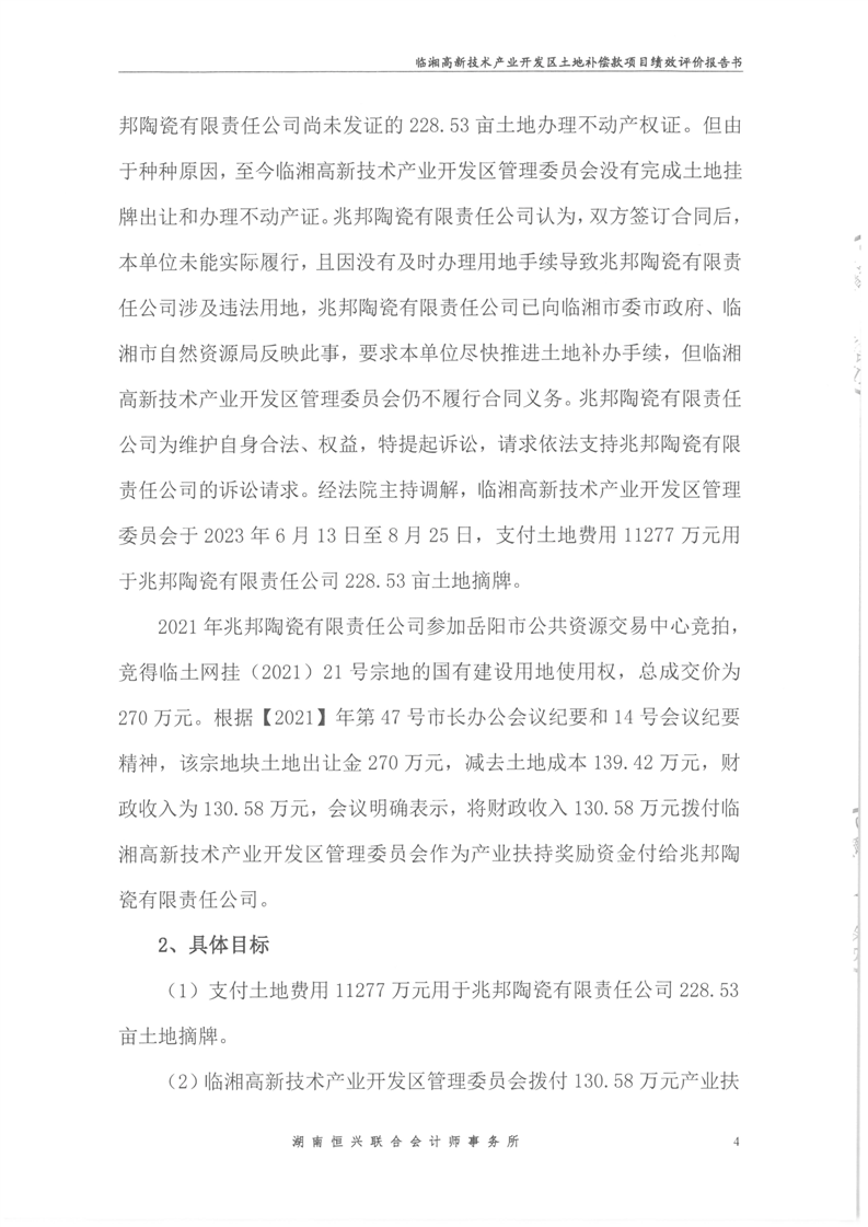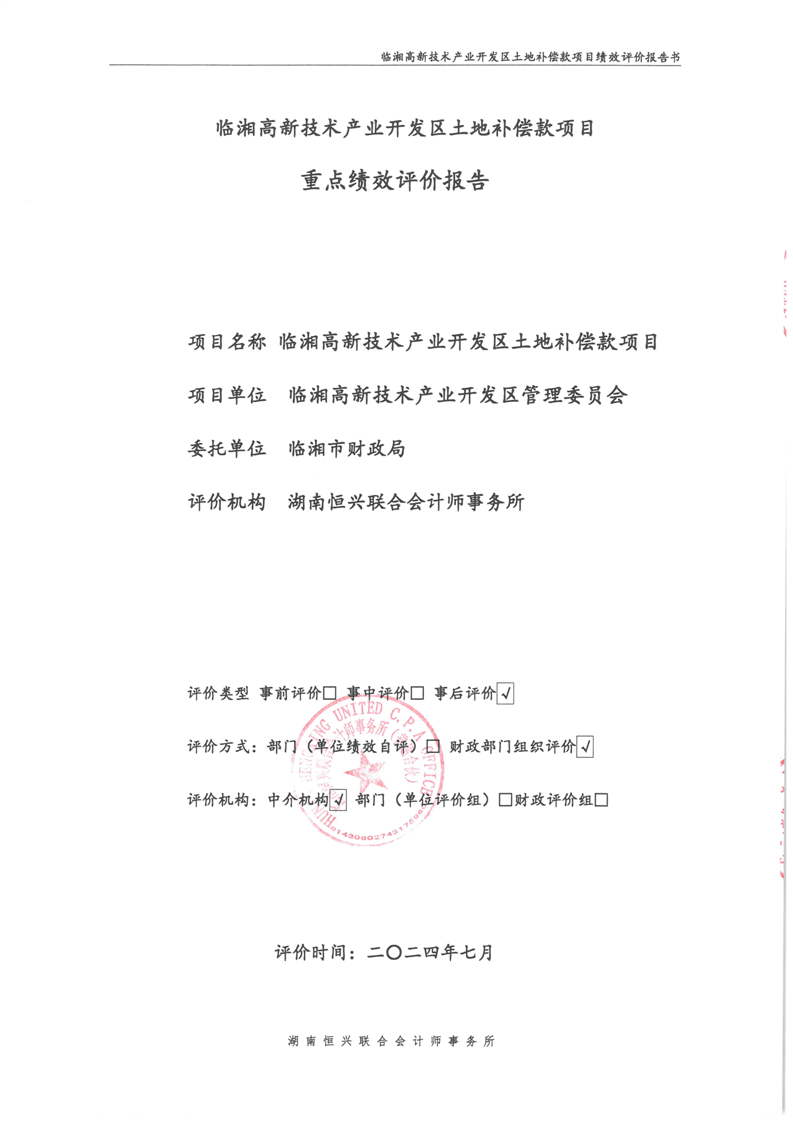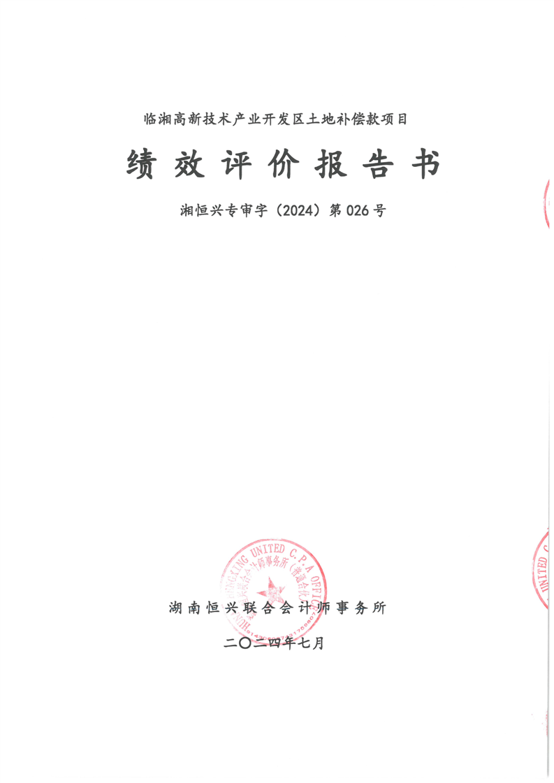 临湘高新技术产业开发区土地补偿款项目重点绩效评价报告
