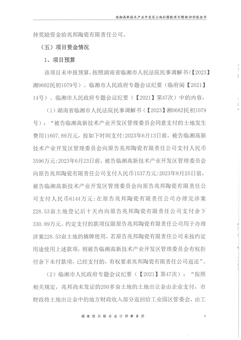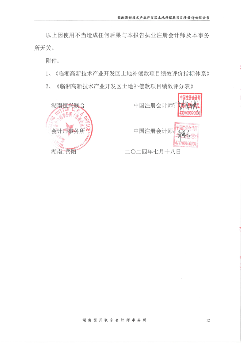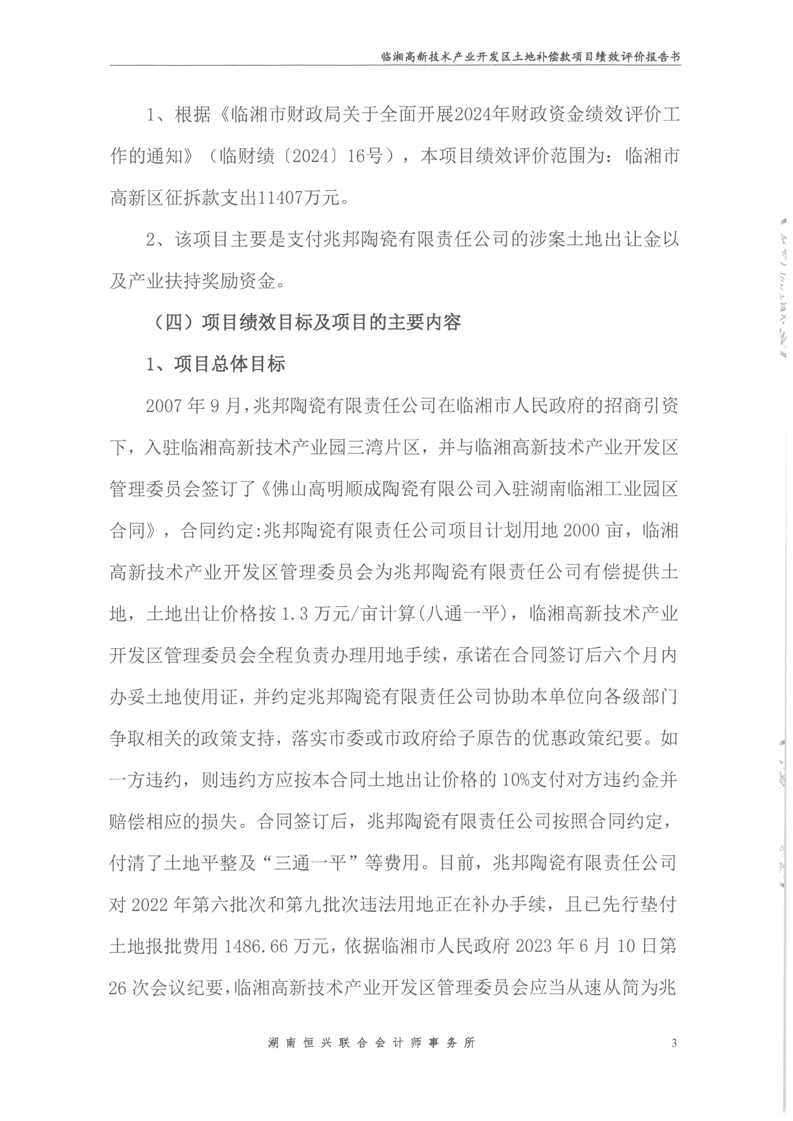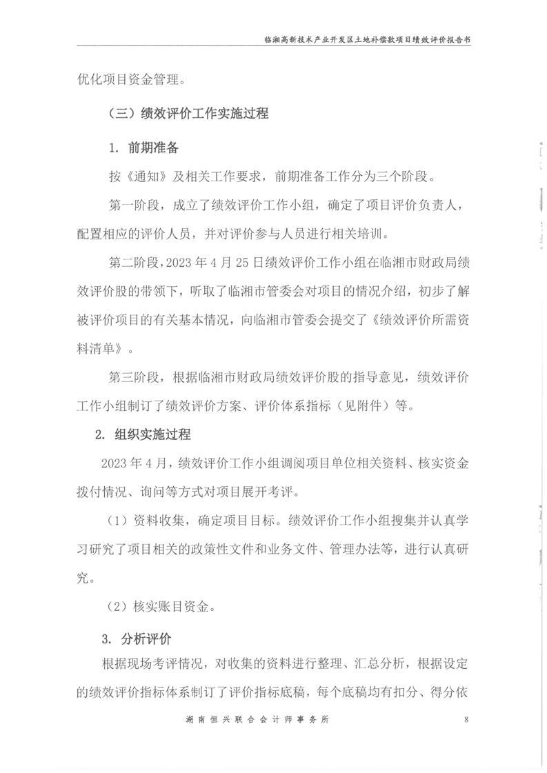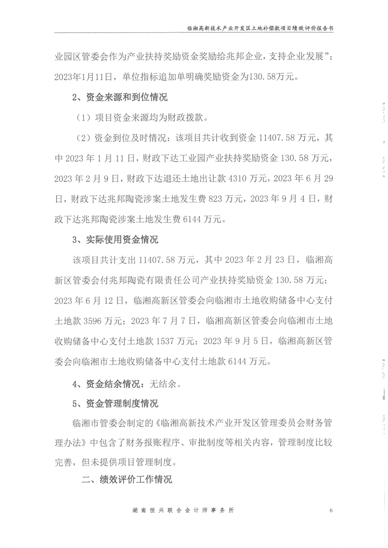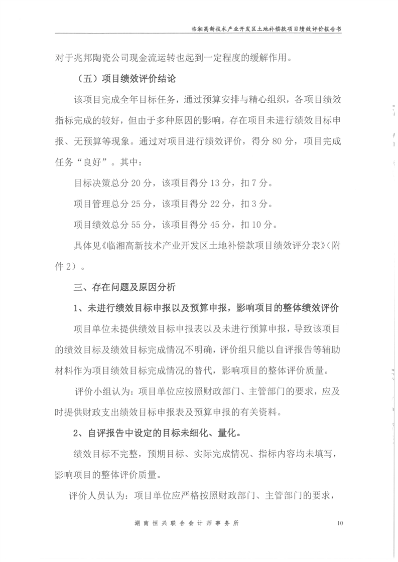 临湘高新技术产业开发区土地补偿款项目重点绩效评价报告