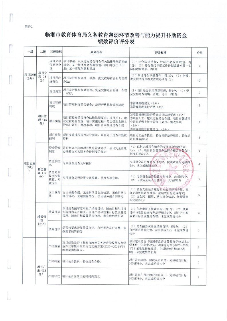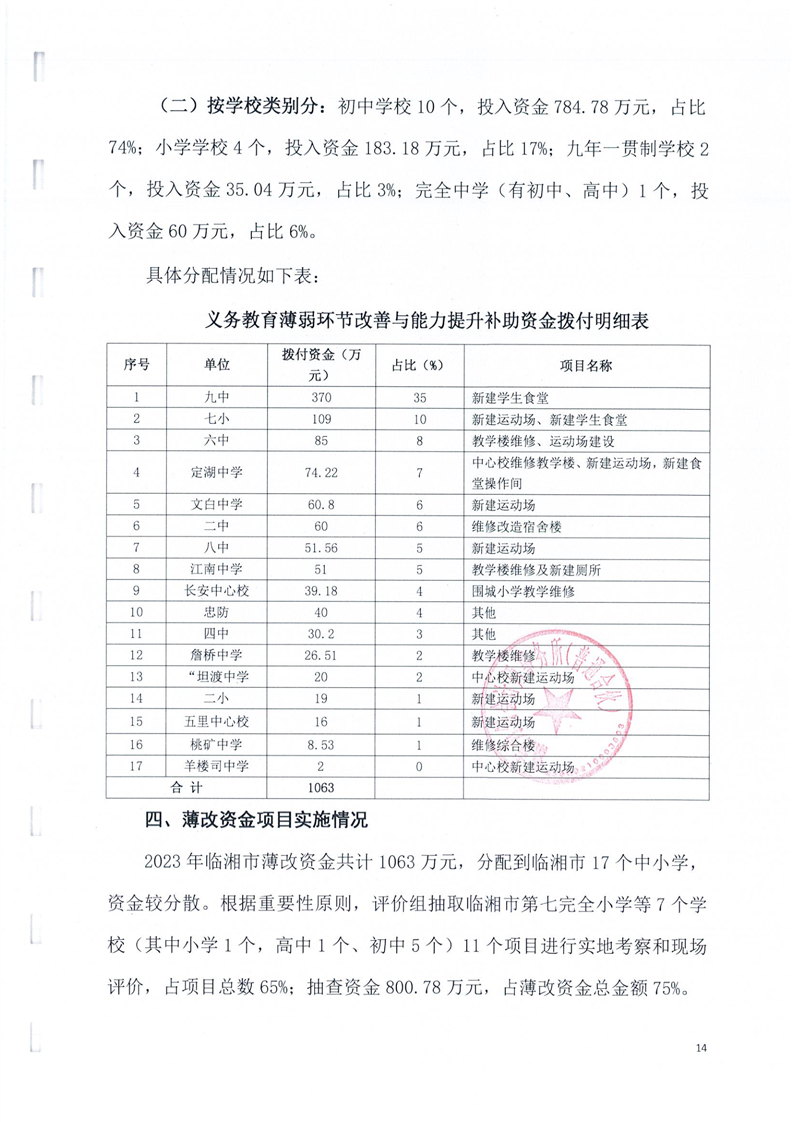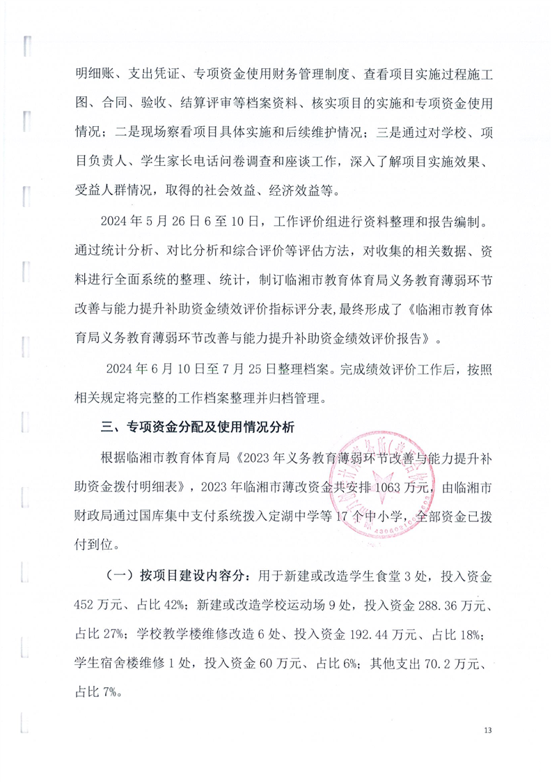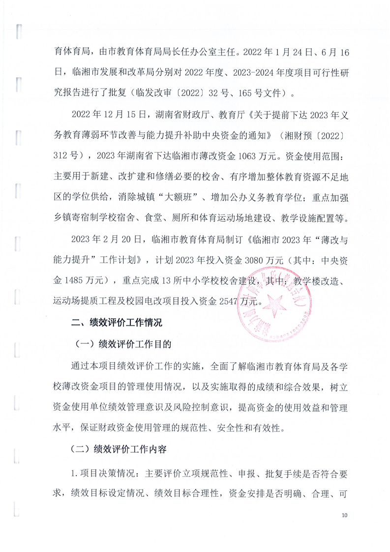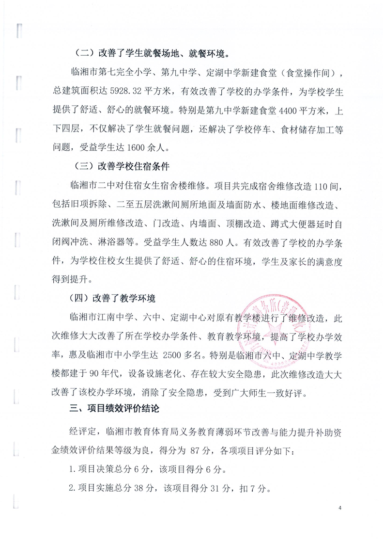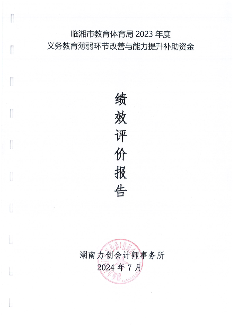 临湘市教育体育局义务教育薄弱环节改善与能力提升补助资金绩效评价报告