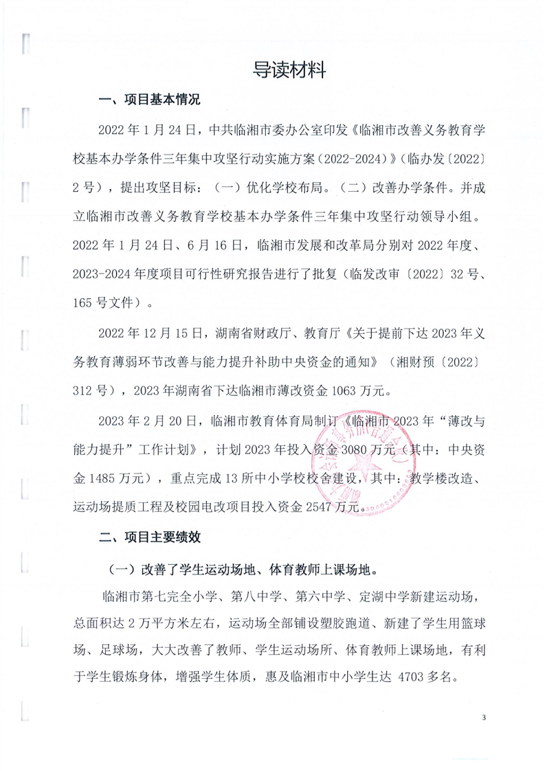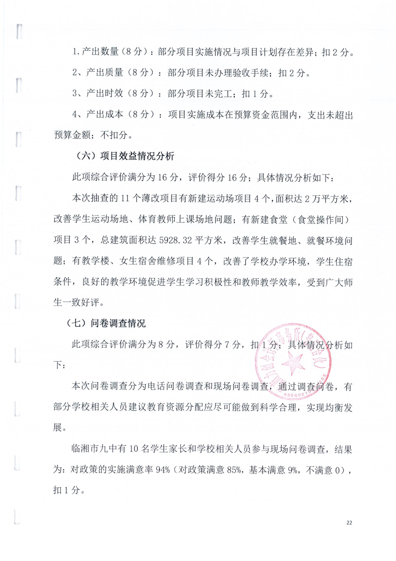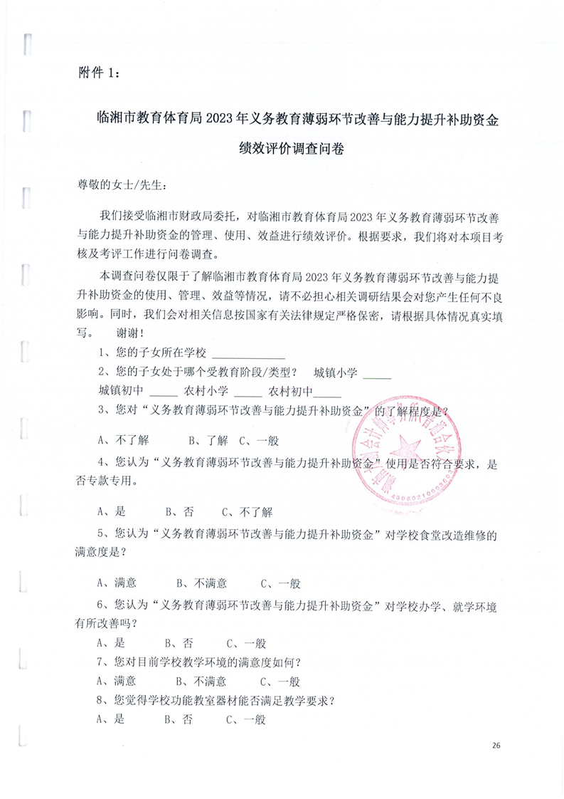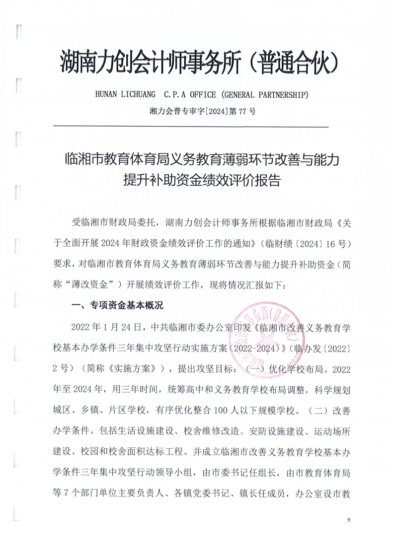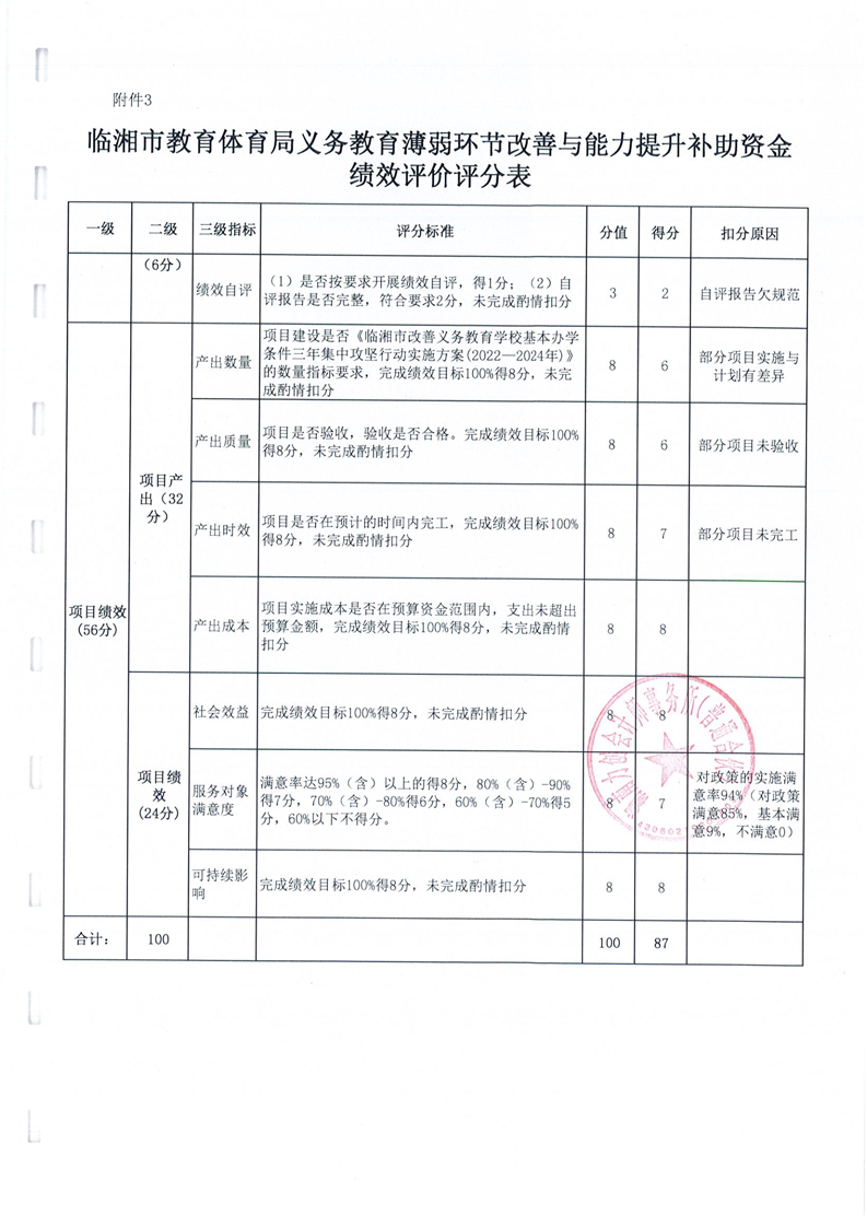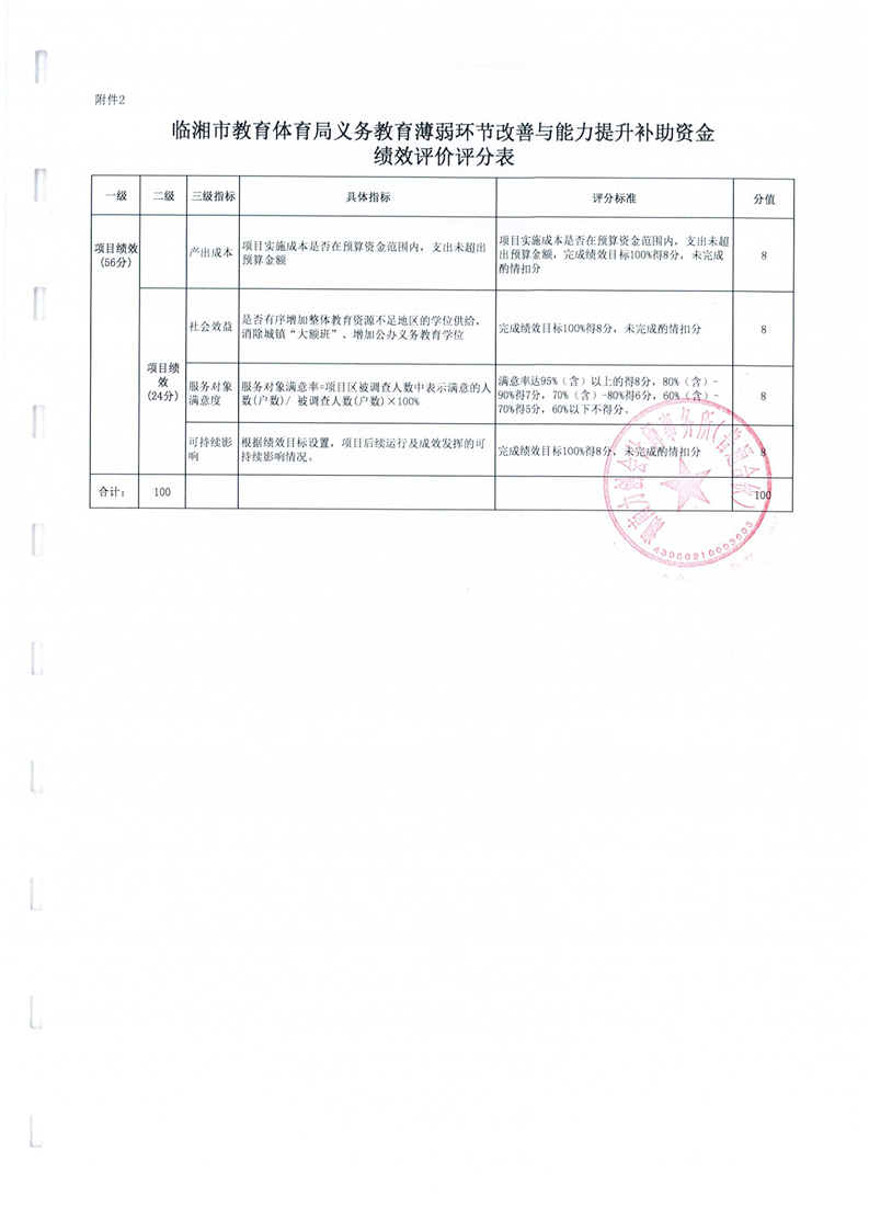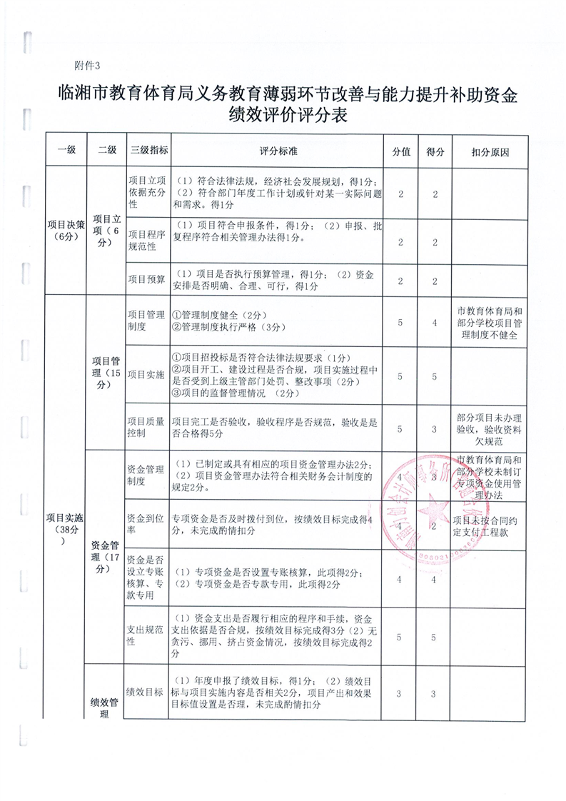 临湘市教育体育局义务教育薄弱环节改善与能力提升补助资金绩效评价报告