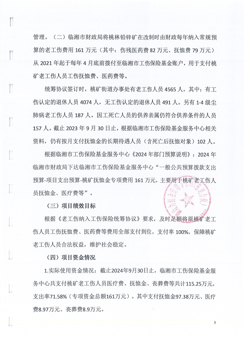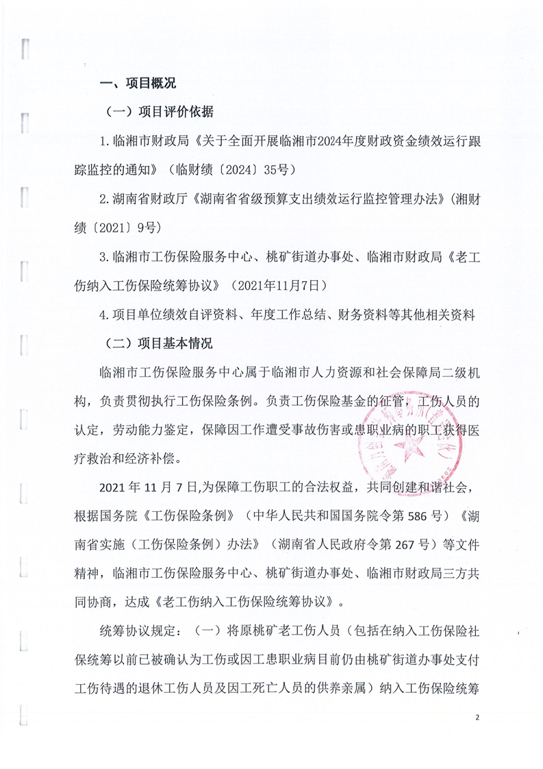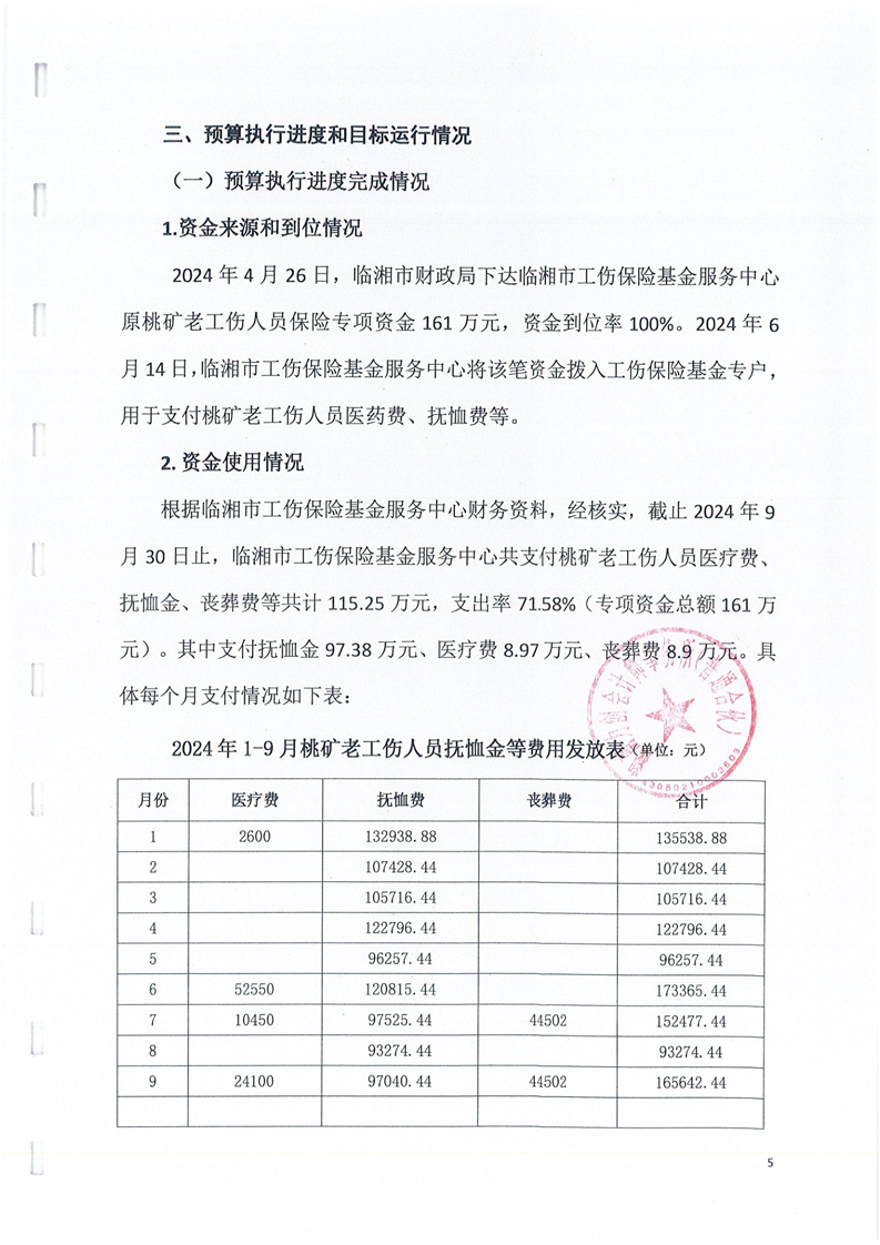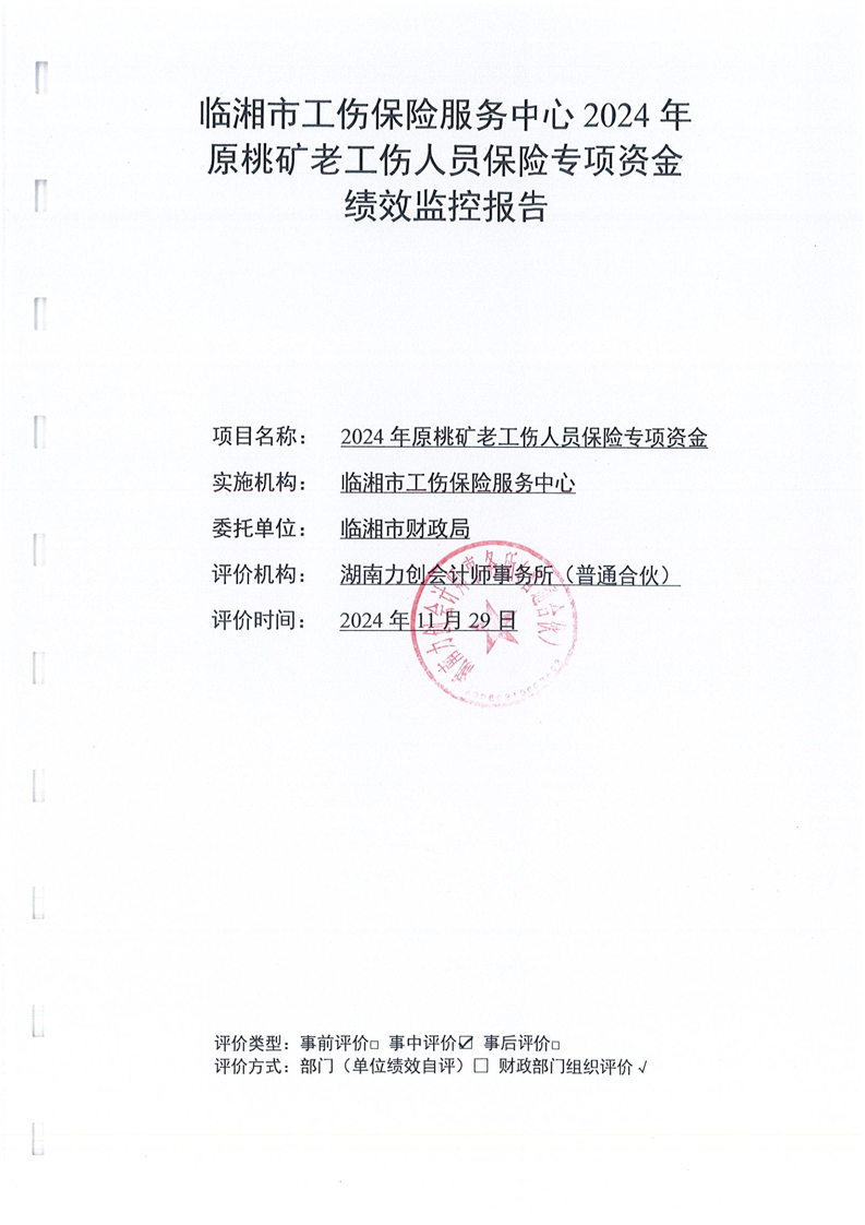 临湘市工伤保险服务中心2024年原桃矿老工伤人员保险专项资金绩效监控报告