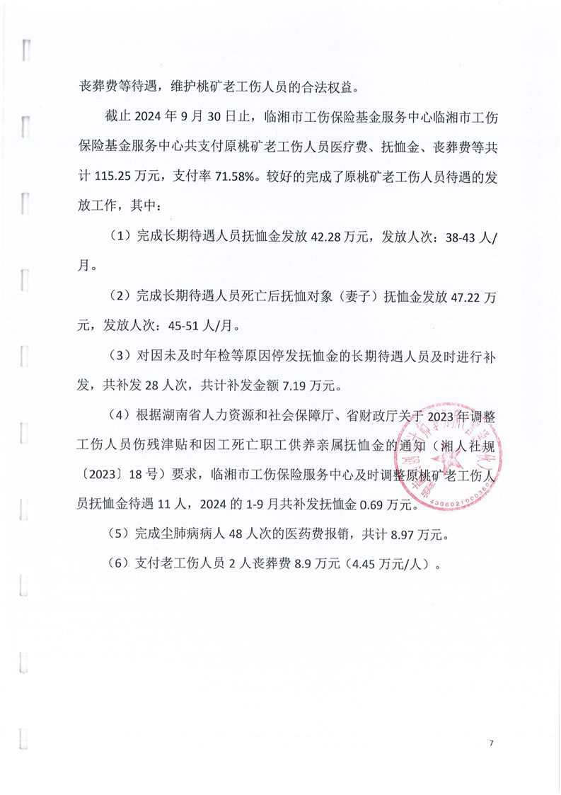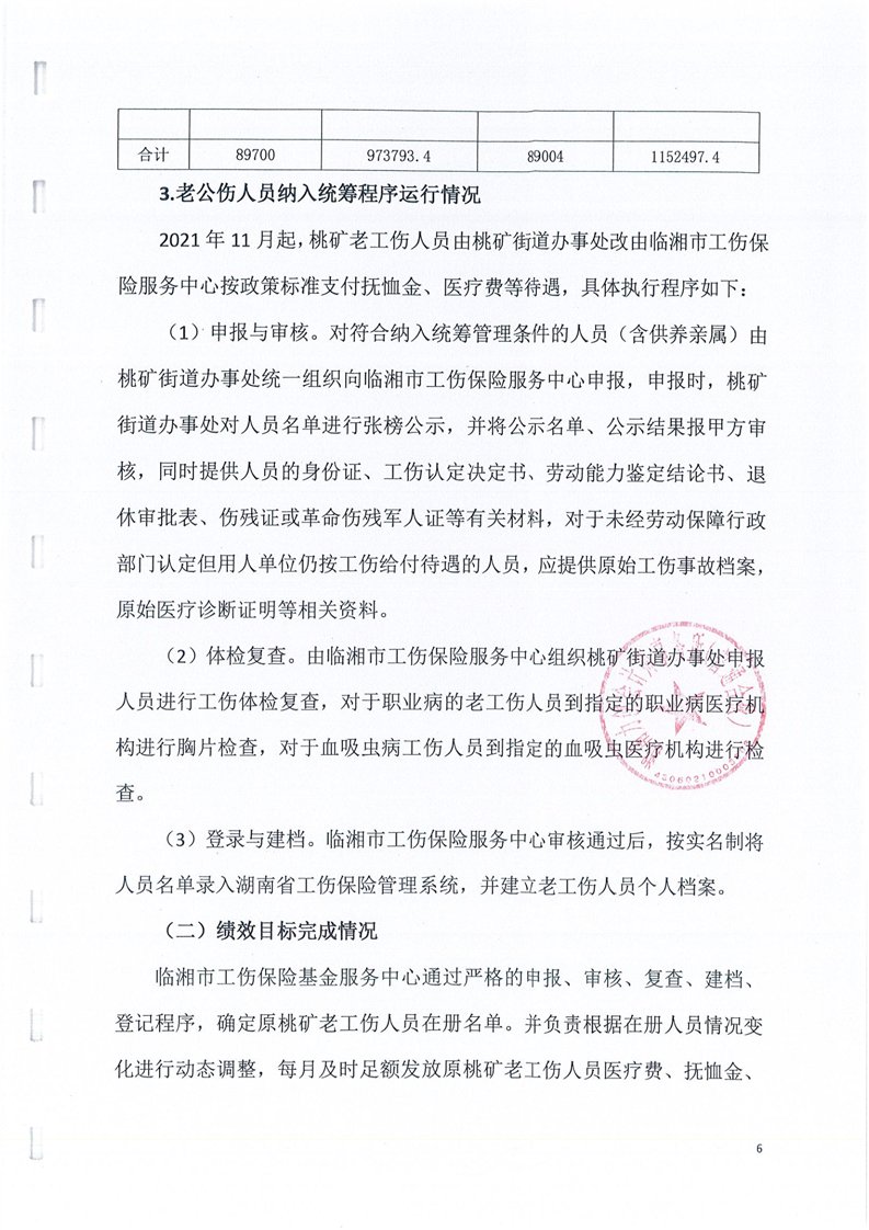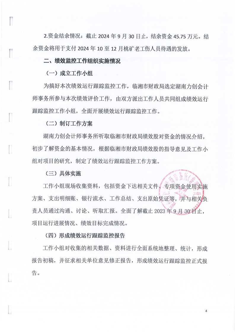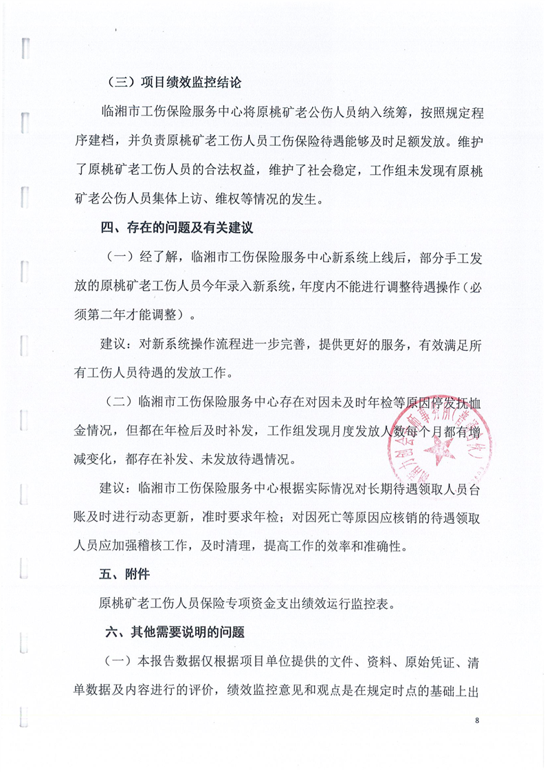 临湘市工伤保险服务中心2024年原桃矿老工伤人员保险专项资金绩效监控报告