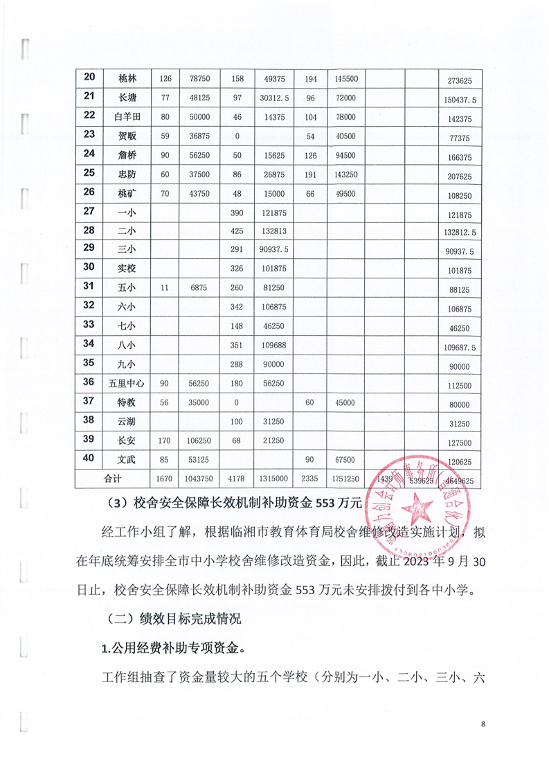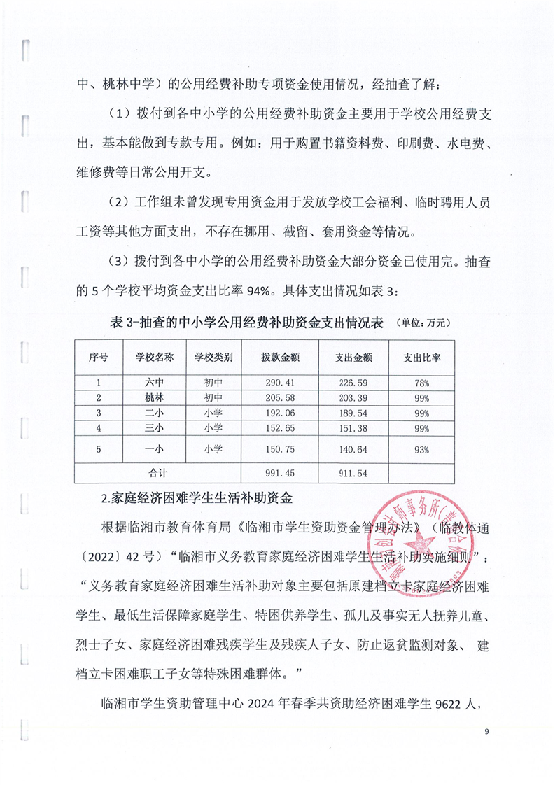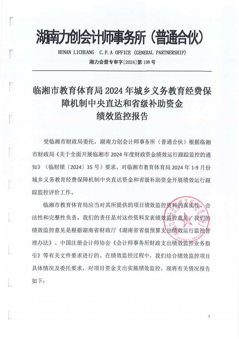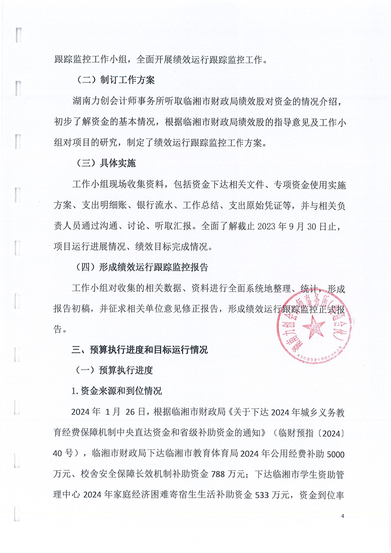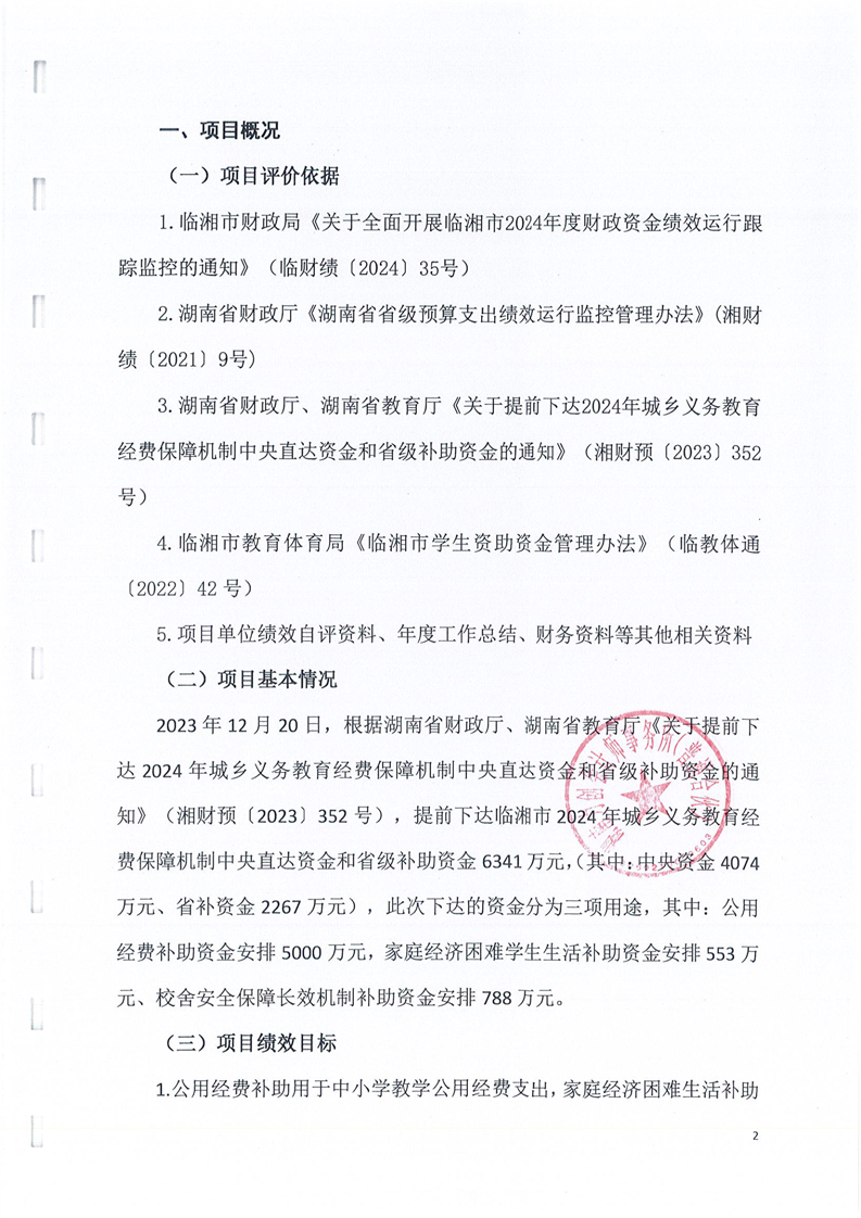 临湘市教育体育局2024年城乡义务教育经费保障机制中央直达和省级补助资金绩效监控报告