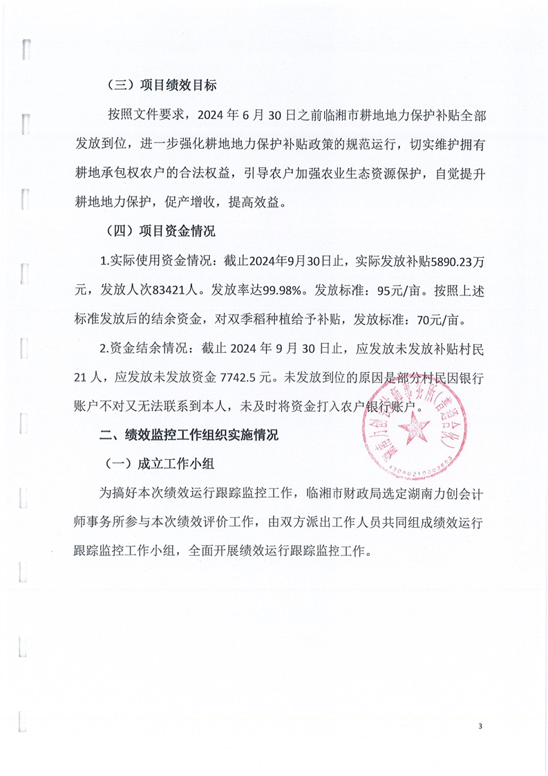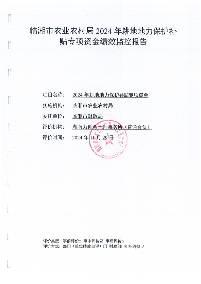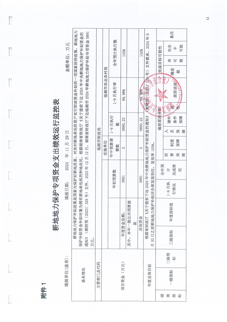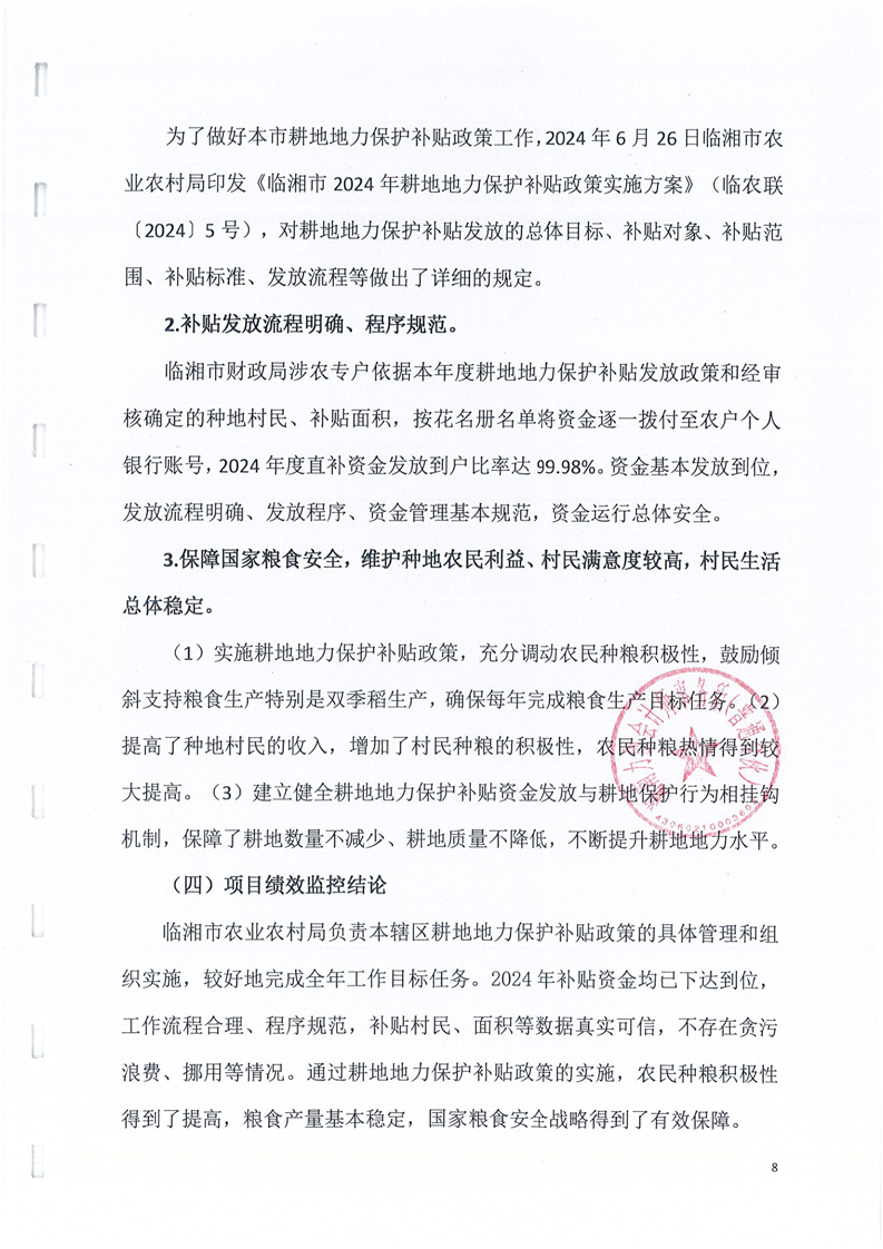 临湘市农业农村局2024年耕地地力保护补贴专项资金绩效监控报告