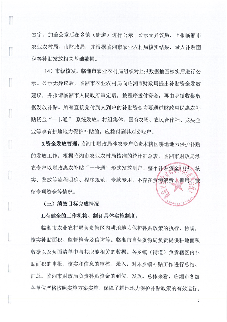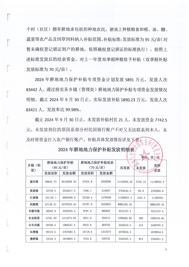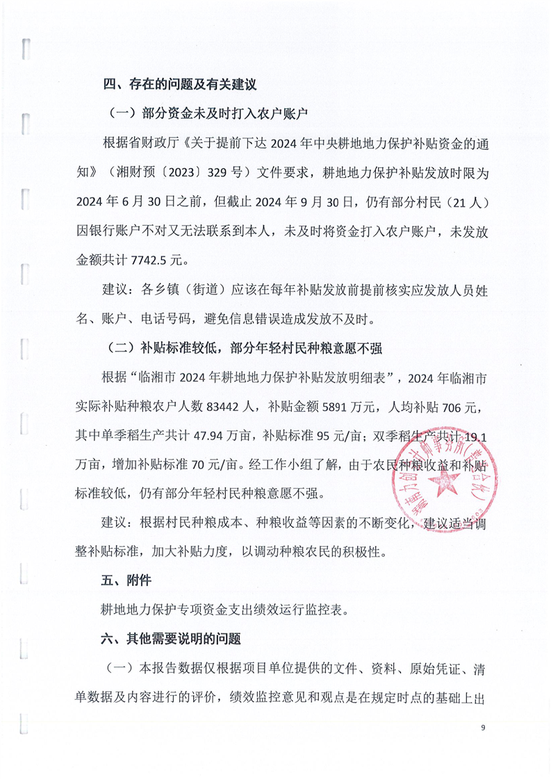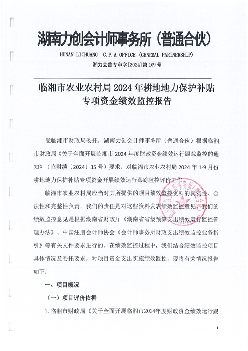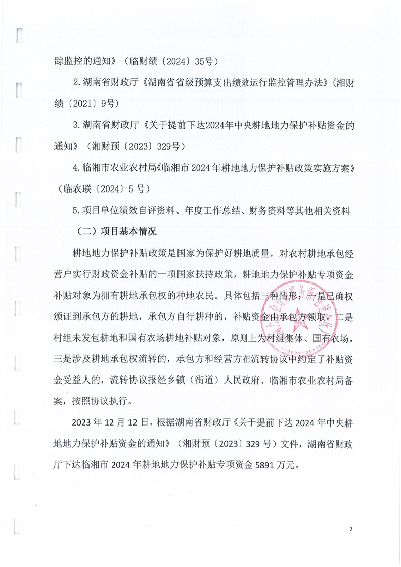 临湘市农业农村局2024年耕地地力保护补贴专项资金绩效监控报告