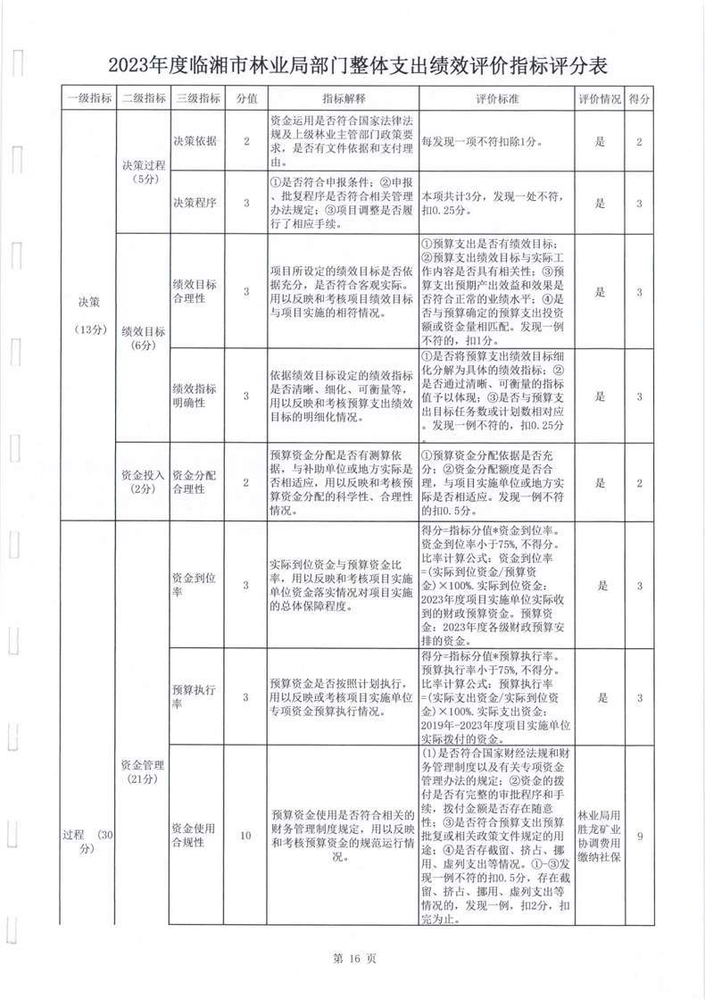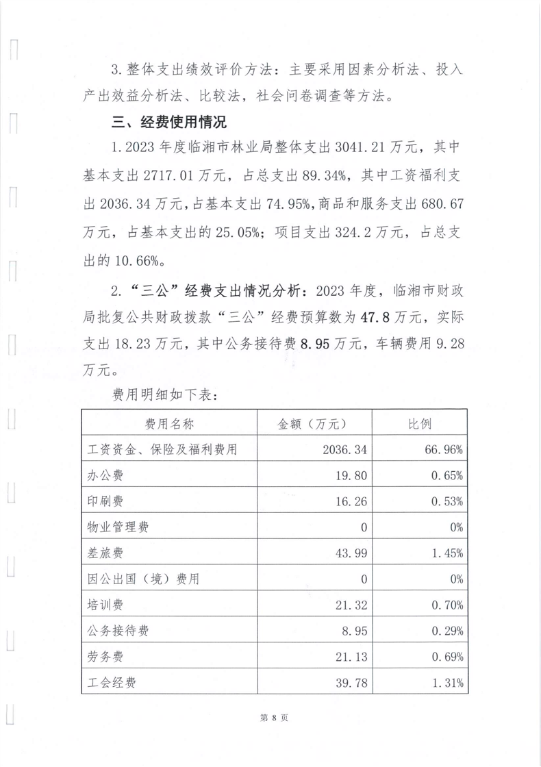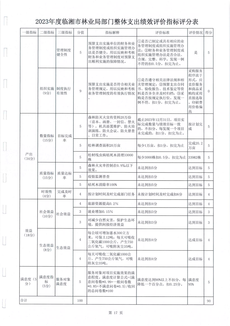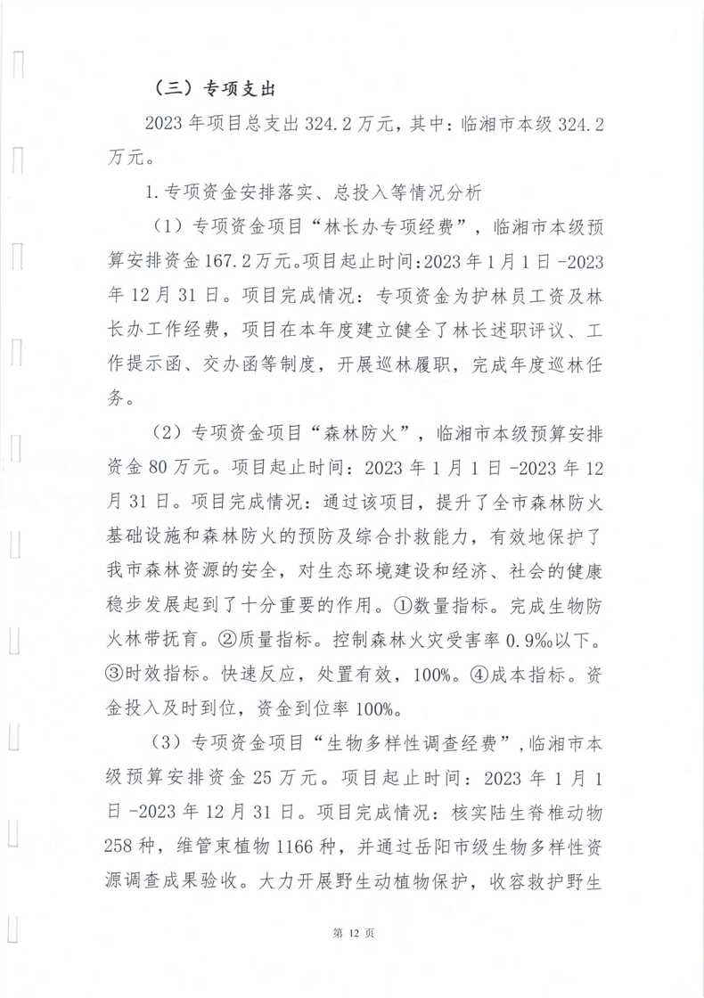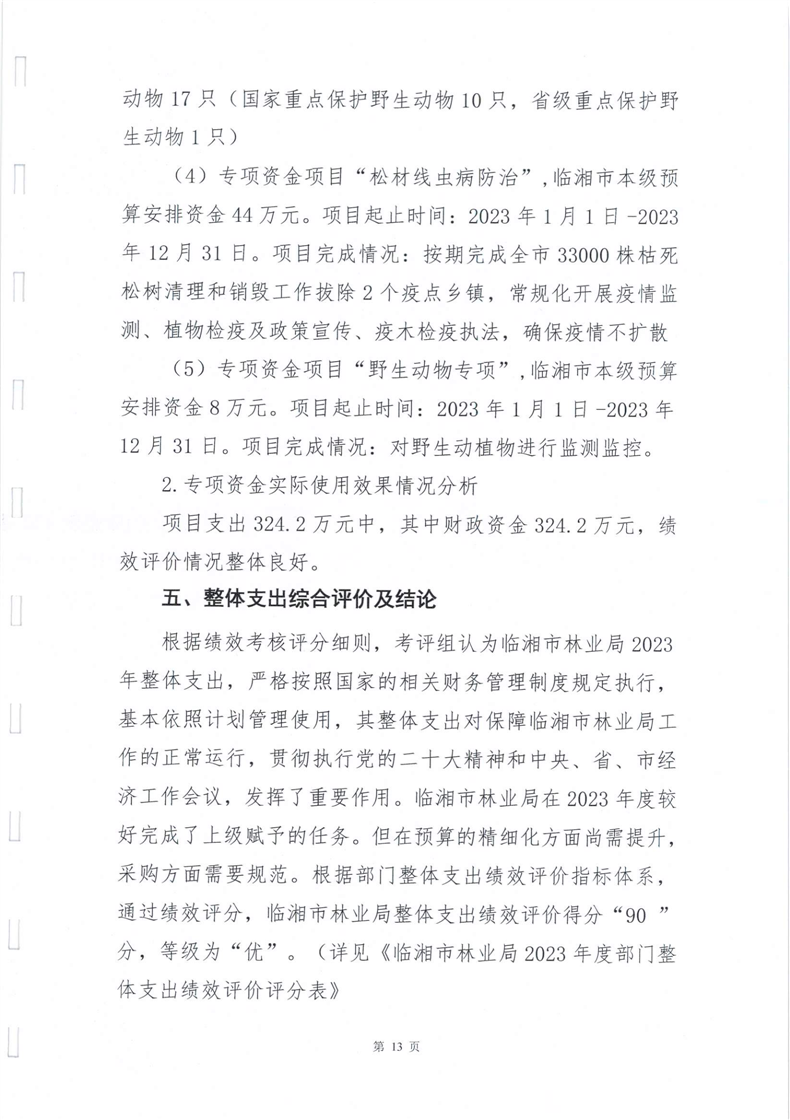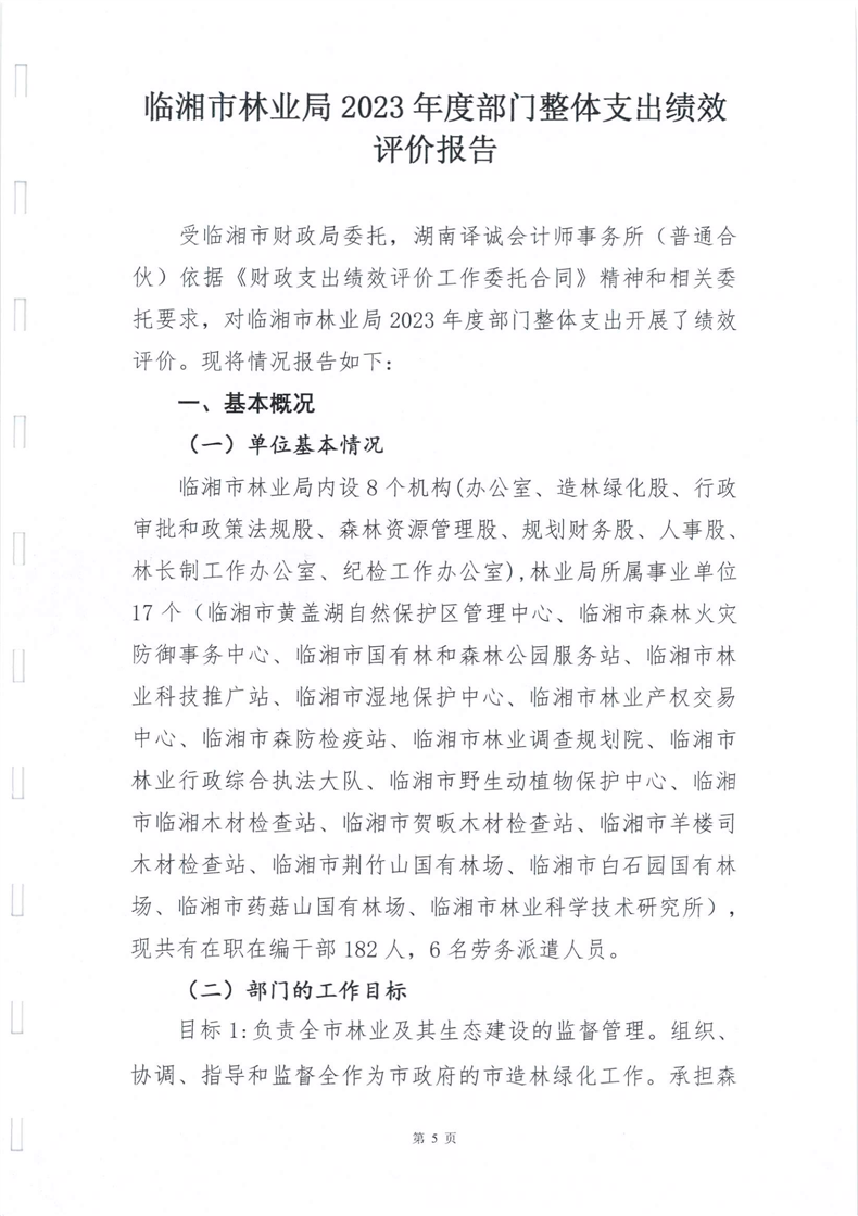 临湘市林业局2023年度部门整体支出绩效评价报告
