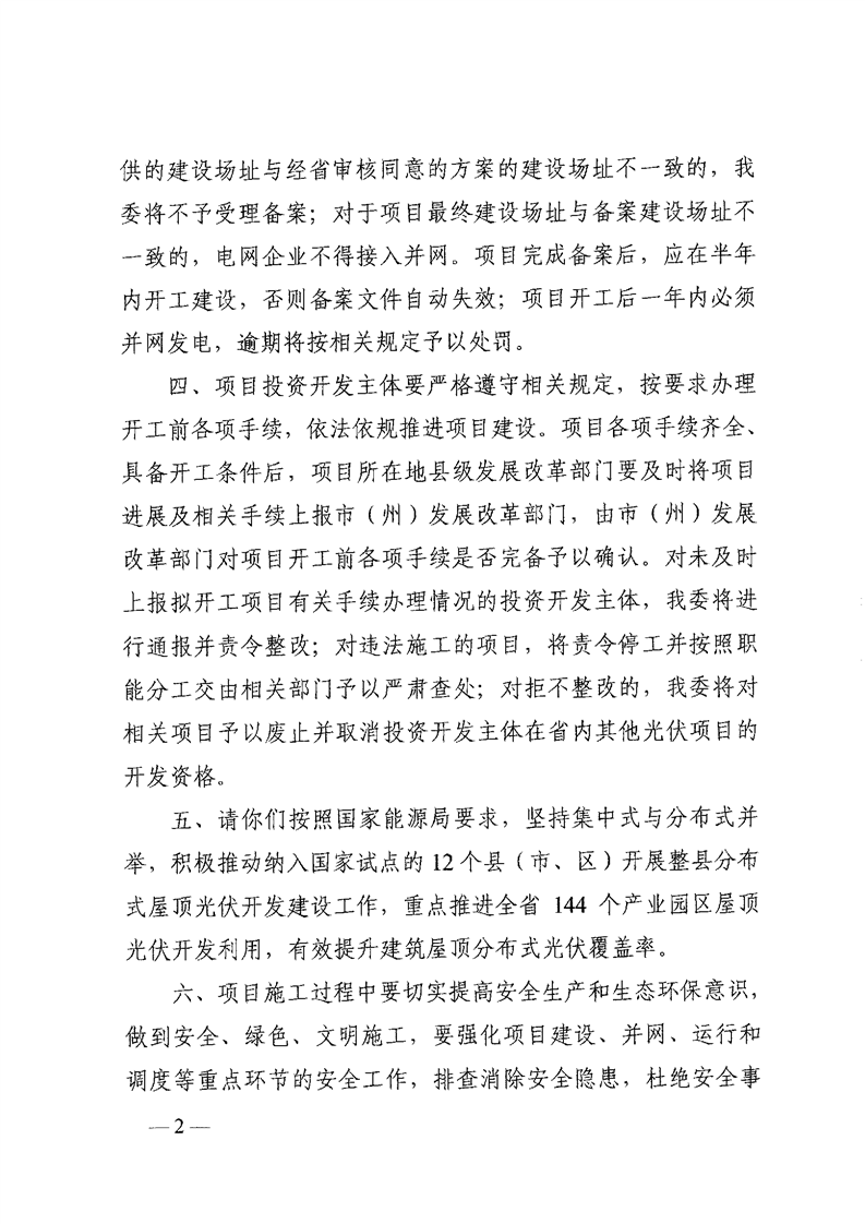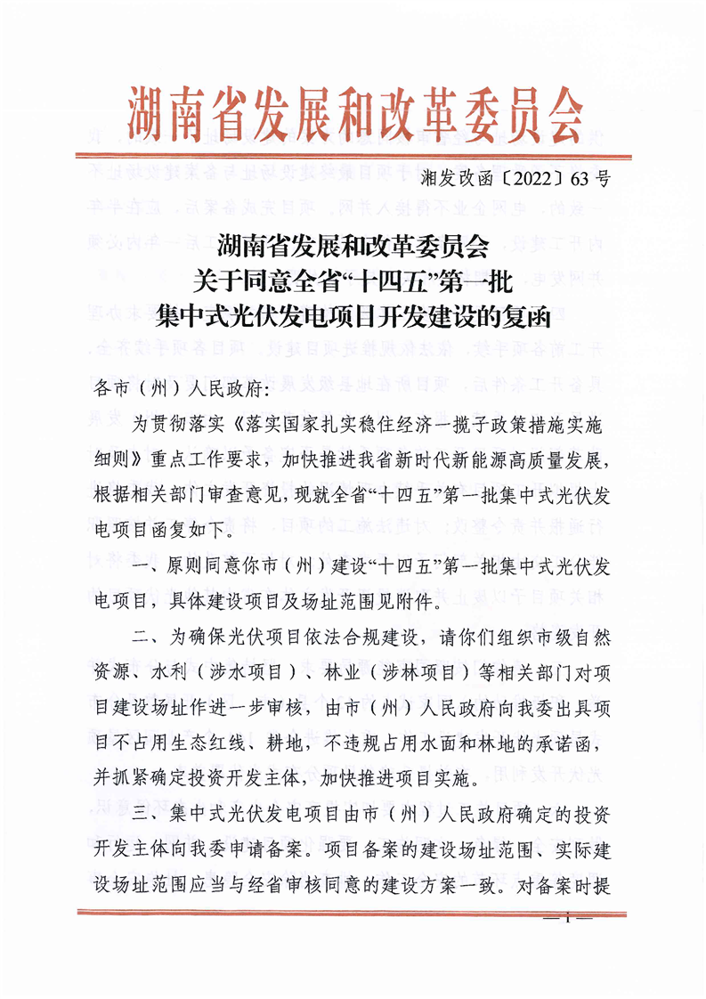 关于同意全省“十四五”第一批集中式光伏发电项目开发建设的复函