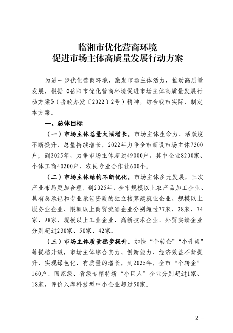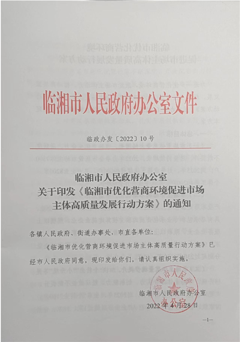 临湘市优化营商环境促进市场主体高质量发展行动方案