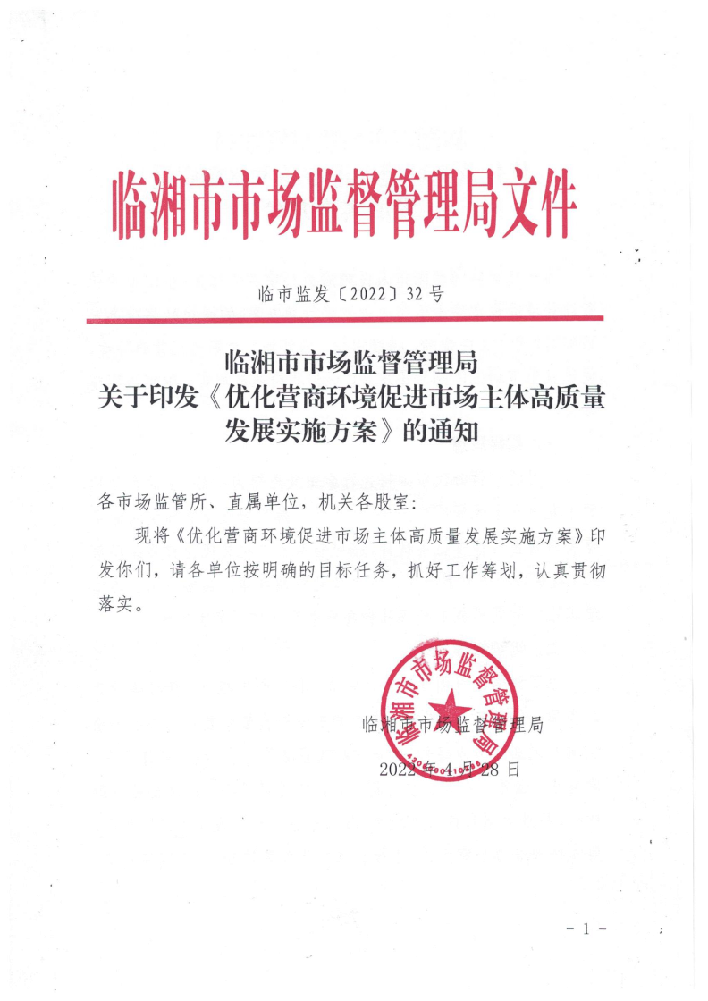 为认真落实《岳阳市人民政府办公室关于印发<岳阳市优化营商环境促进市场主体高质量发展行动方案>的通知》(岳政办发[2022]2号)文件精神,持续深化“放管服”改革优化营商环境,促进我市市场主体高质量发展,根据我局职能职责,制定该实施方案。