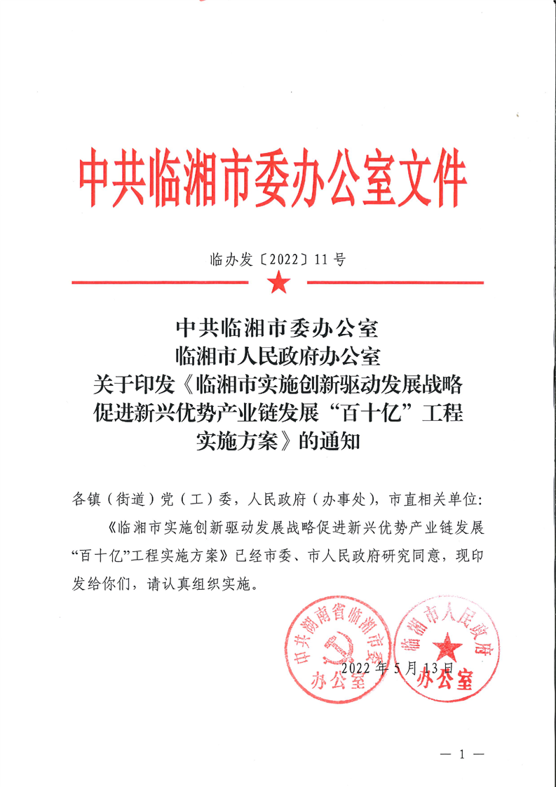 临湘市实施创新驱动发展战略促进新兴优势产业链发展“百十亿”工程实施方案