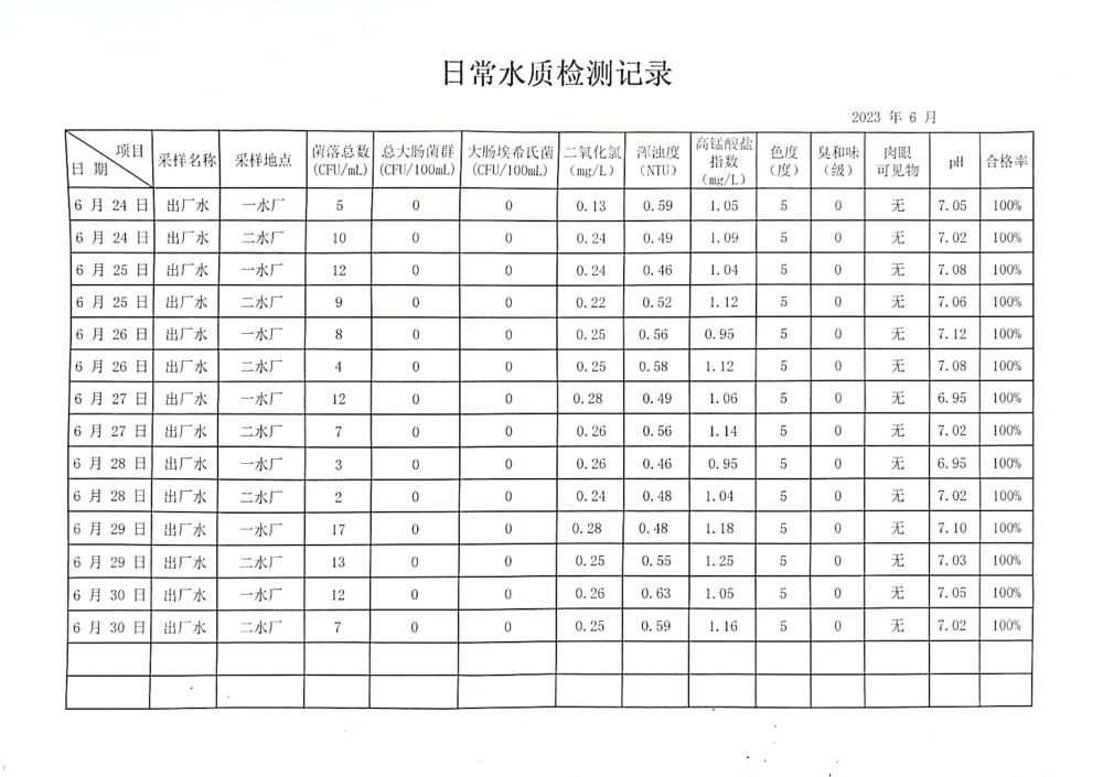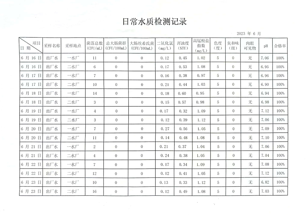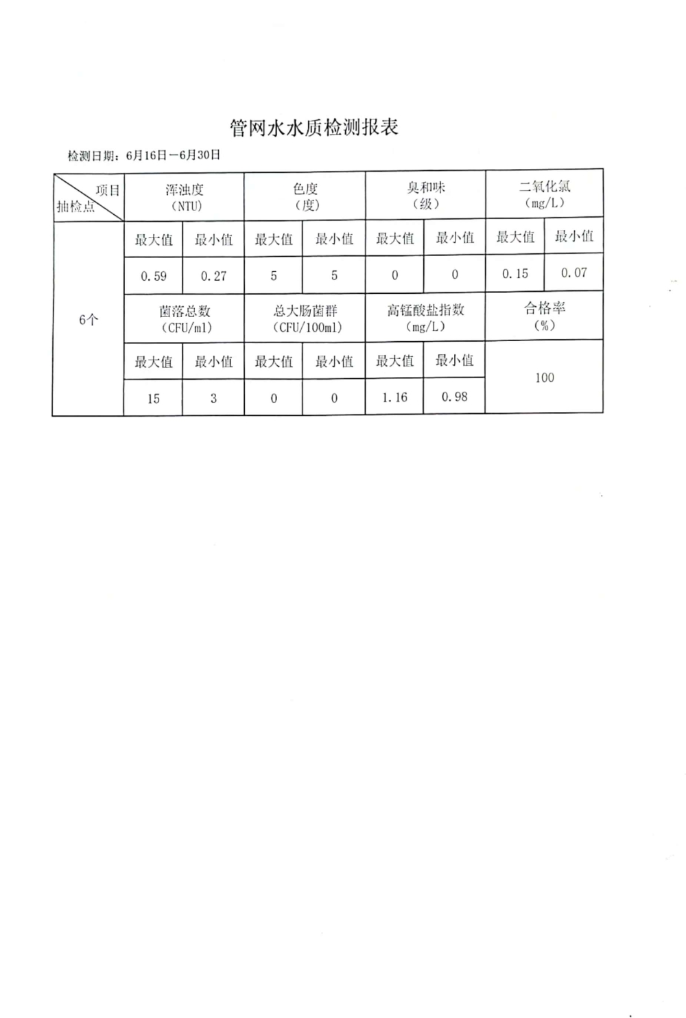 兴临自来水公司日检、半月检水质信息公开(6月下半月)