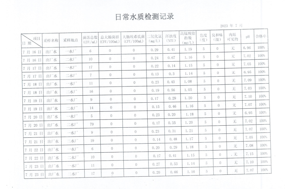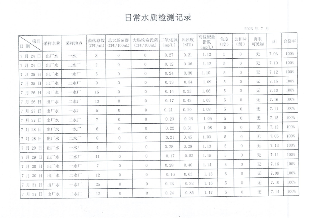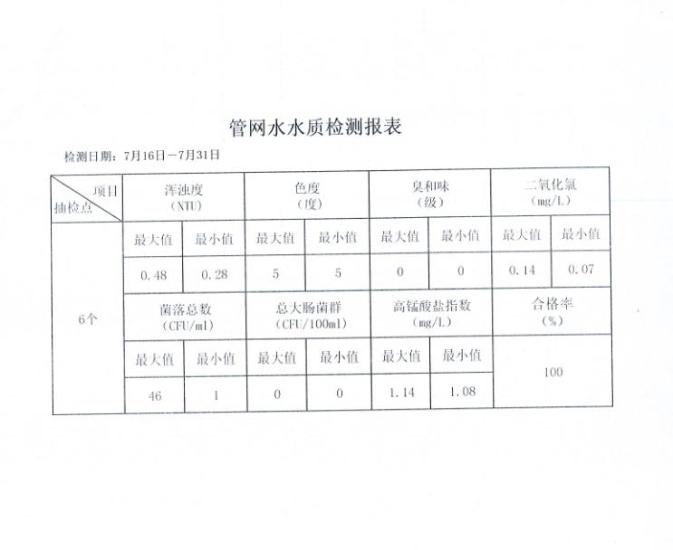 兴临自来水公司日检、半月检水质信息公开(7月下半月)