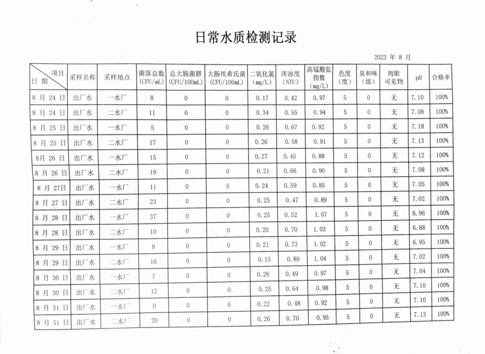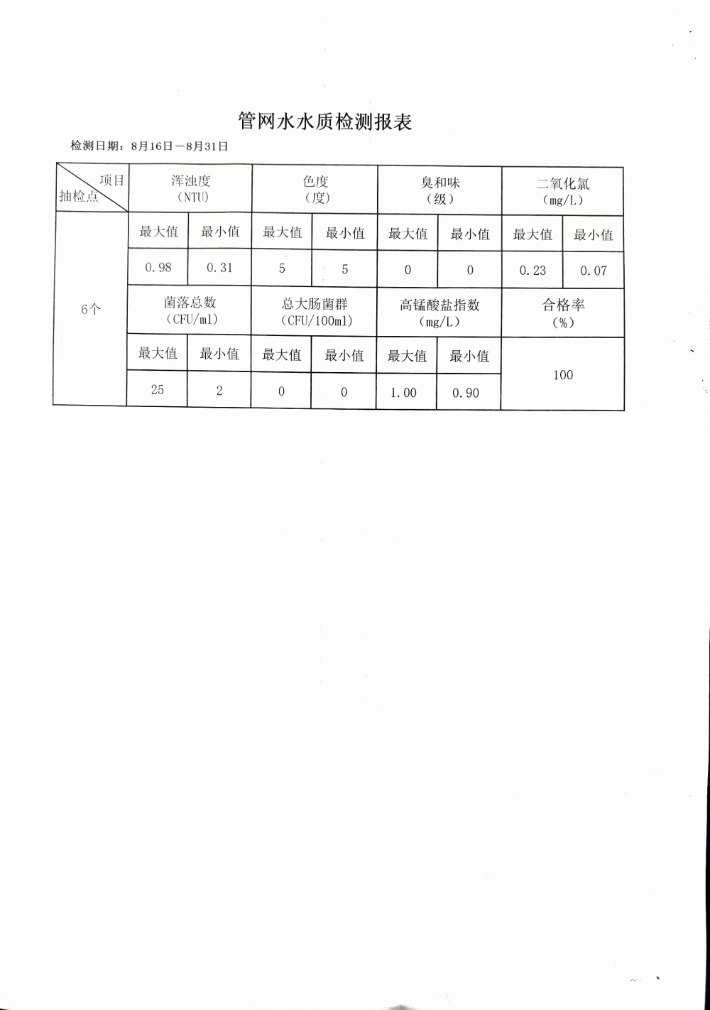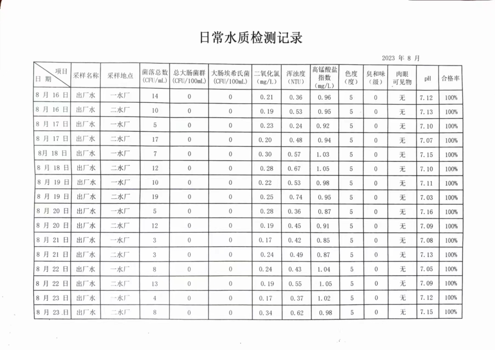兴临自来水公司日检、半月检水质信息公开(8月下半月)