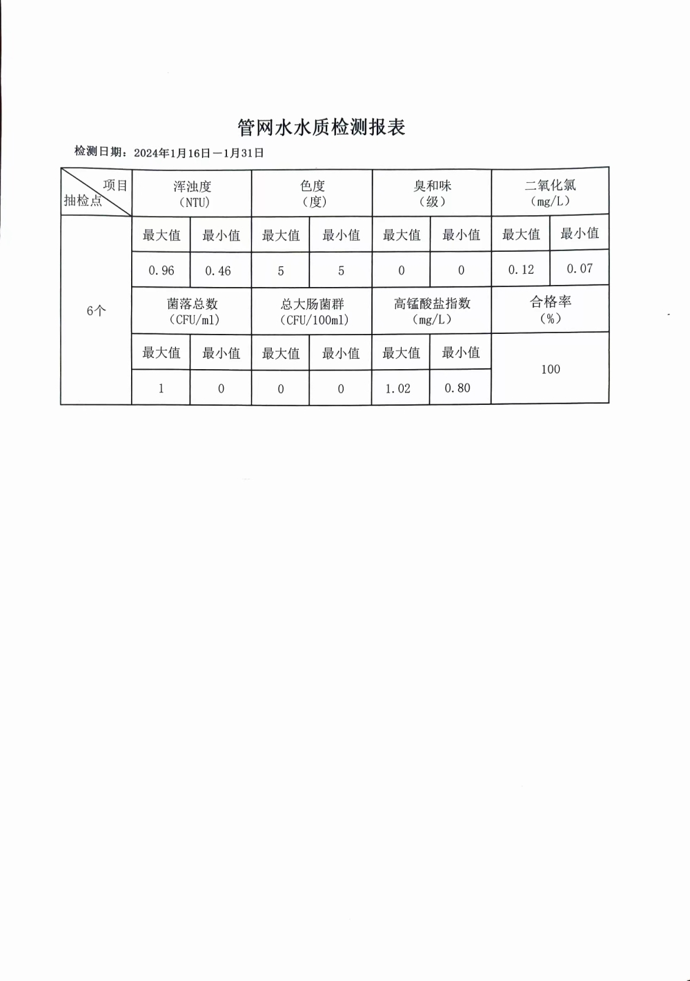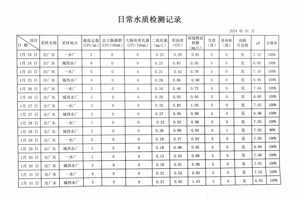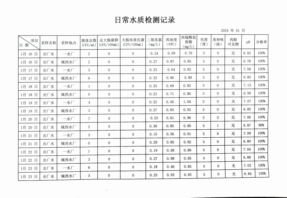 兴临自来水公司日检、半月检水质信息公开(1月下半月)