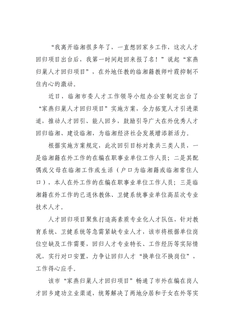 临湘:启动“家燕归巢人才回归项目”,助推人才反哺家乡