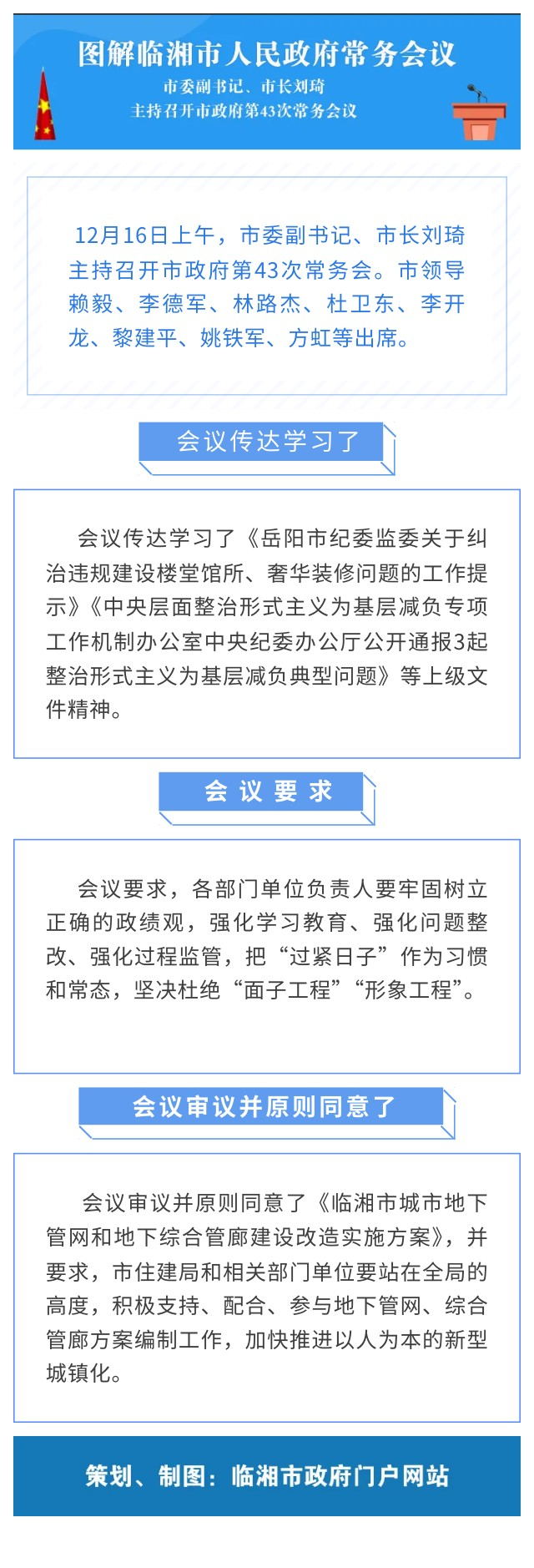 12月16日上午,市委副书记、市长刘琦主持召开市政府第43次常务会。市领导赖毅、李德军、林路杰、杜卫东、李开龙、黎建平、姚铁军、方虹等出席。
