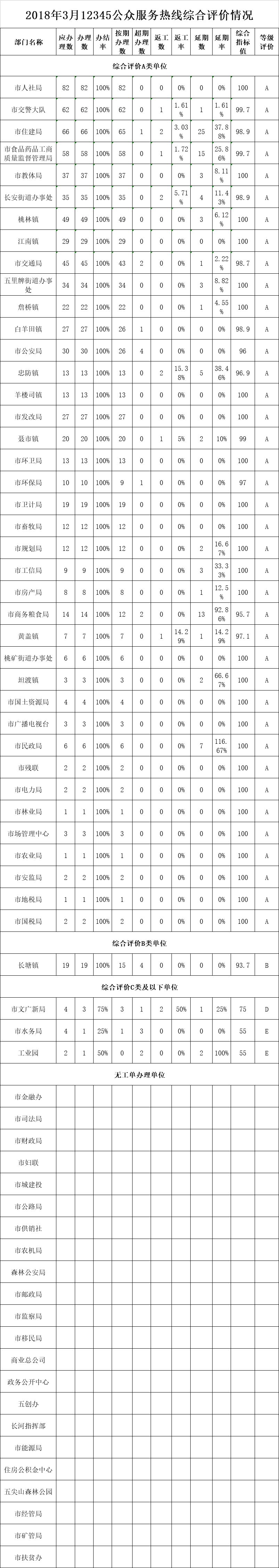 2018年3月12345公众服务热线综合评价情况