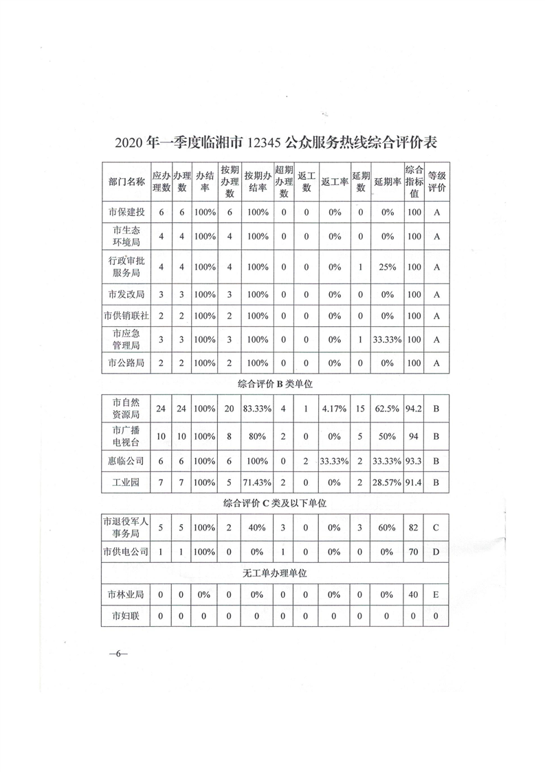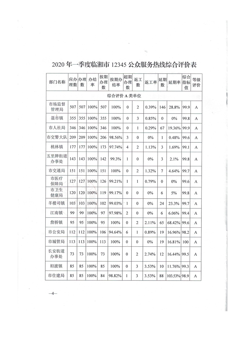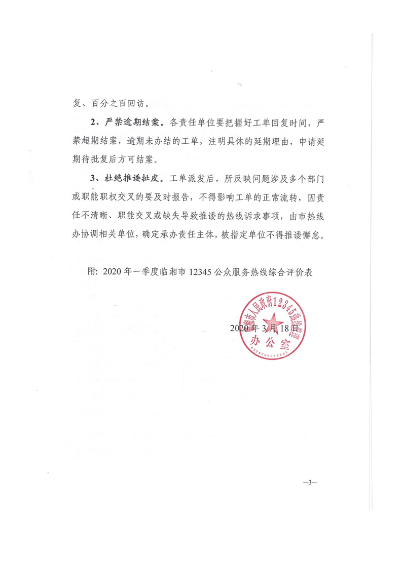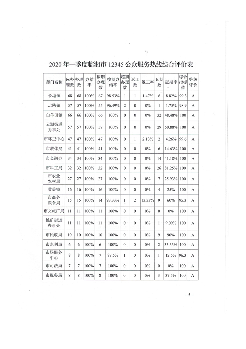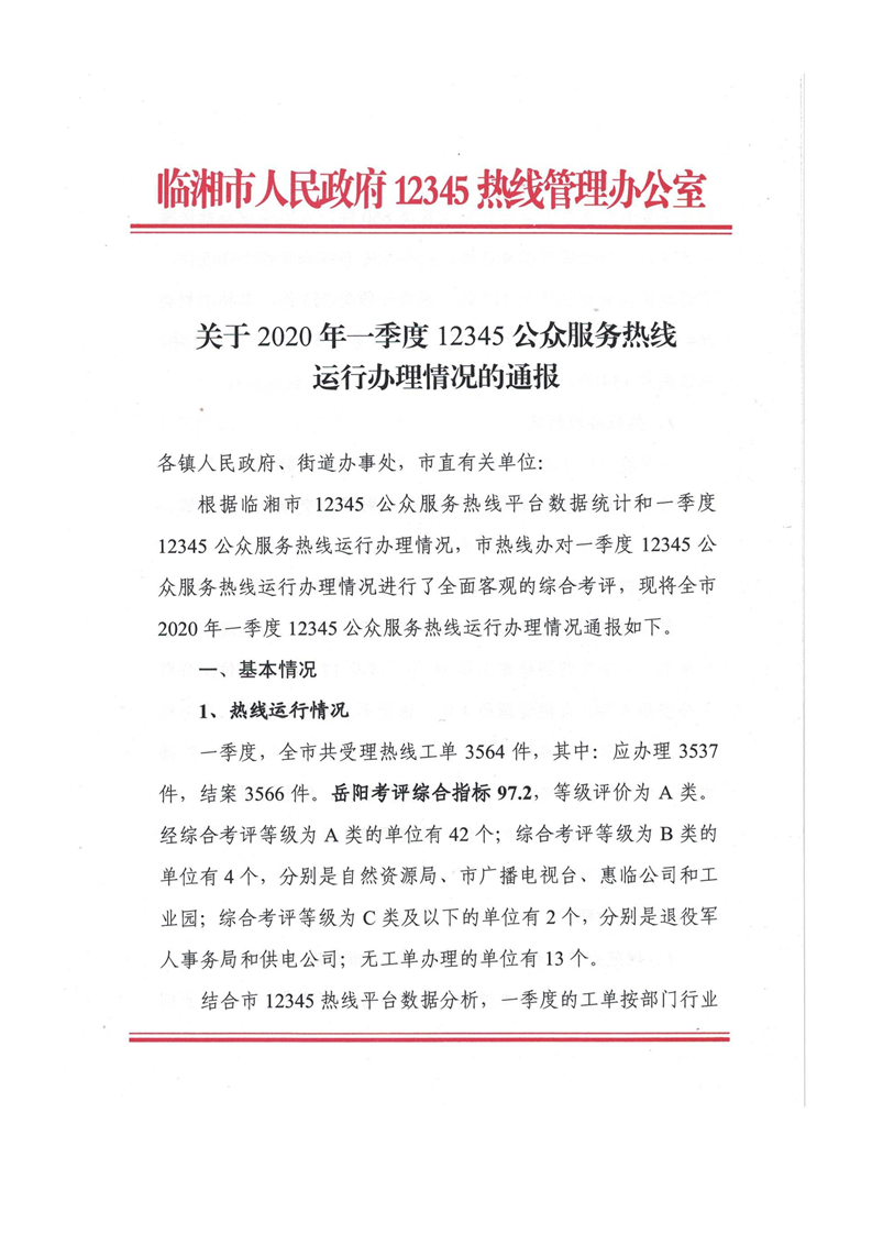 关于2020年一季度12345公众服务热线运行办理情况的通报