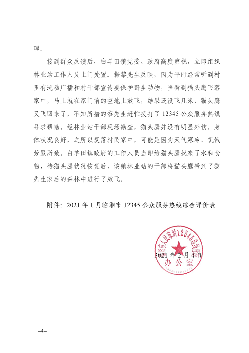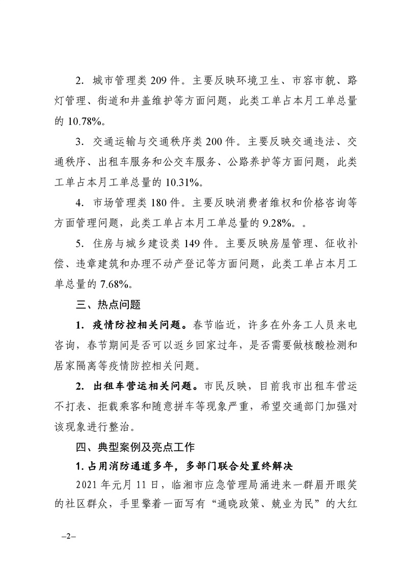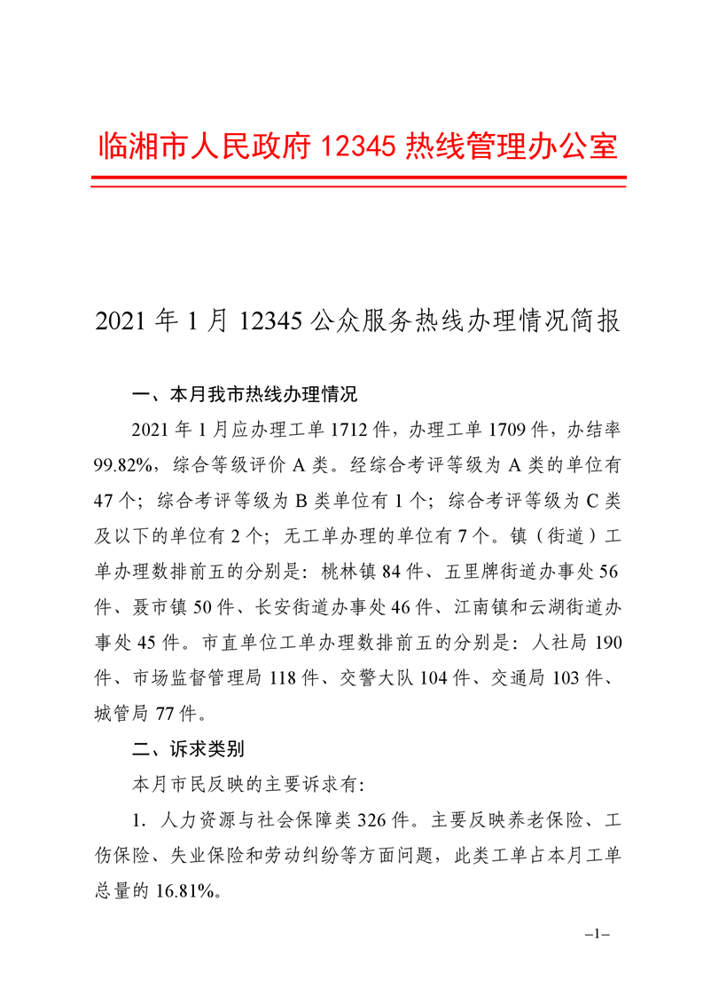 2021年1月12345公众服务热线办理情况简报
