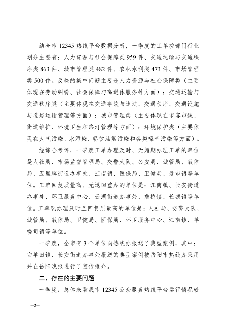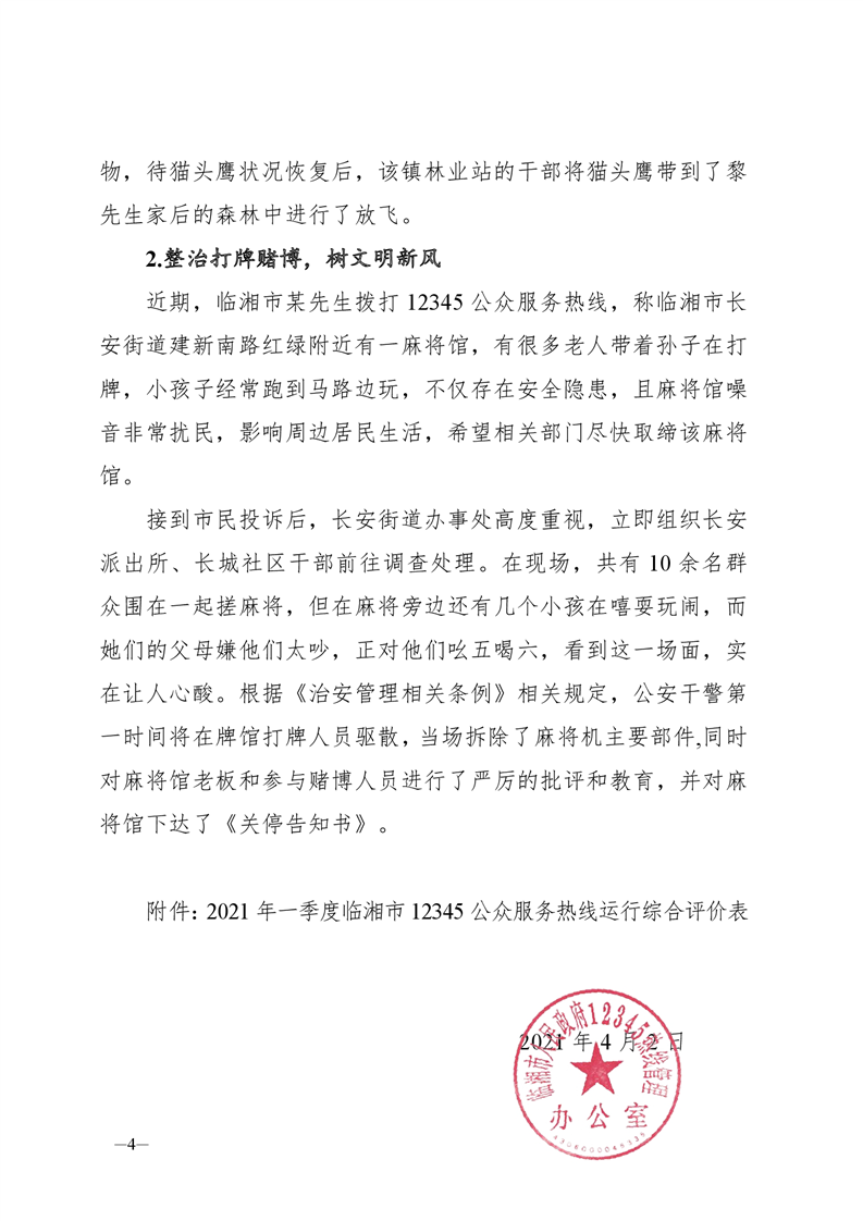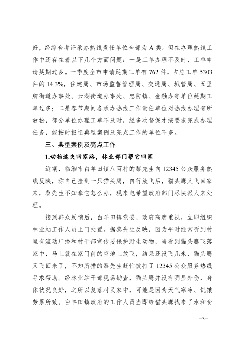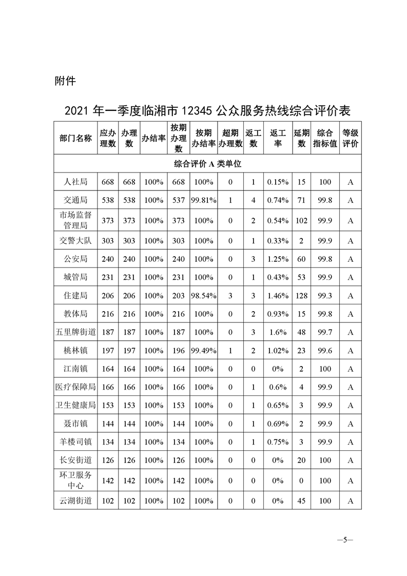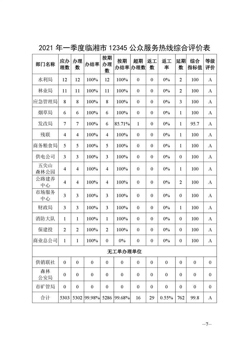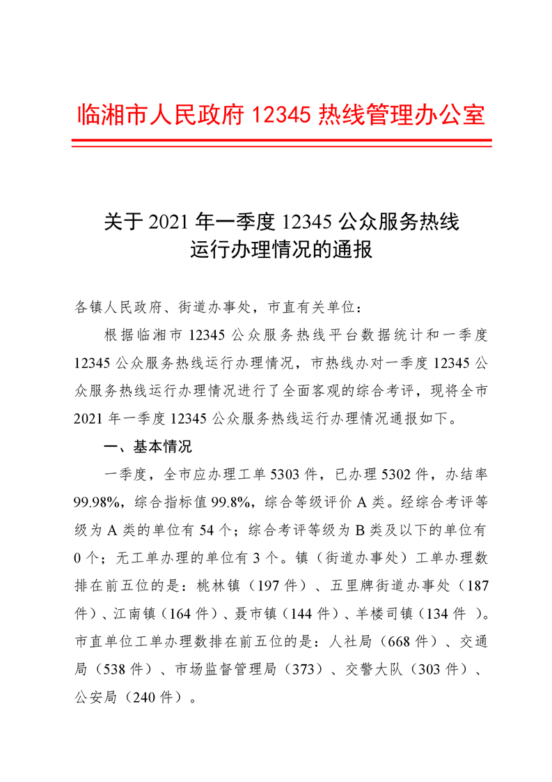 关于2021年一季度12345公众服务运行办理情况的通报