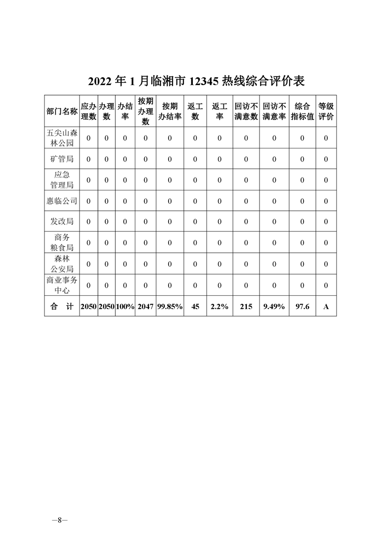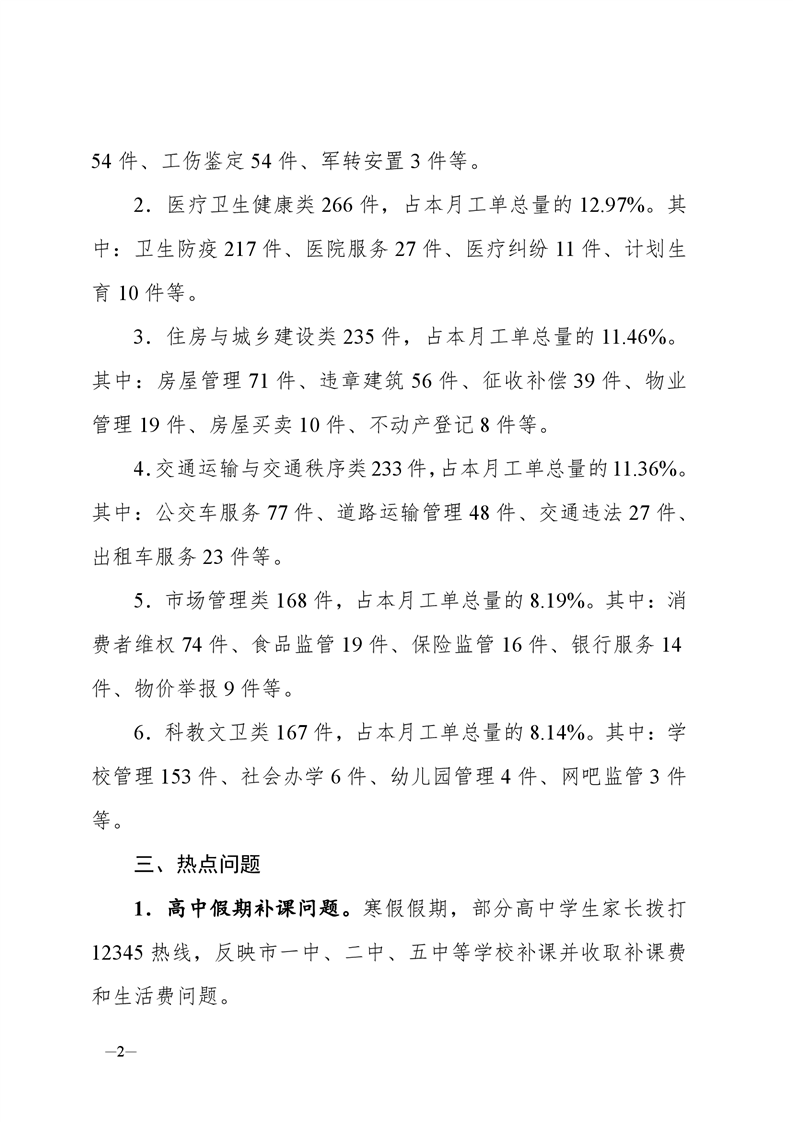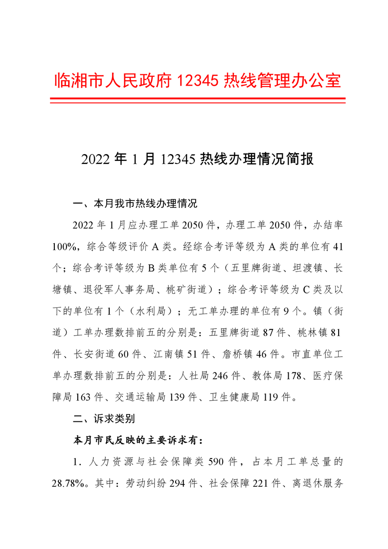 2022年1月12345热线办理情况简报