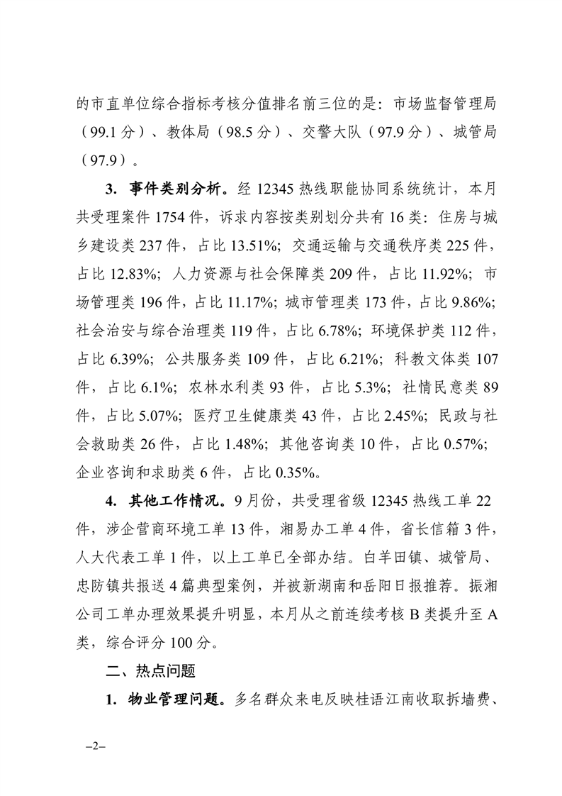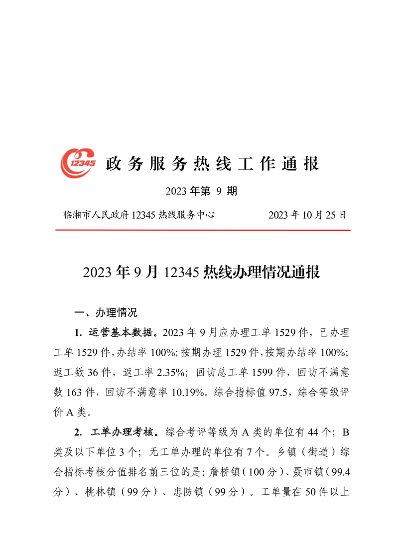 2023年9月12345热线办理情况通报