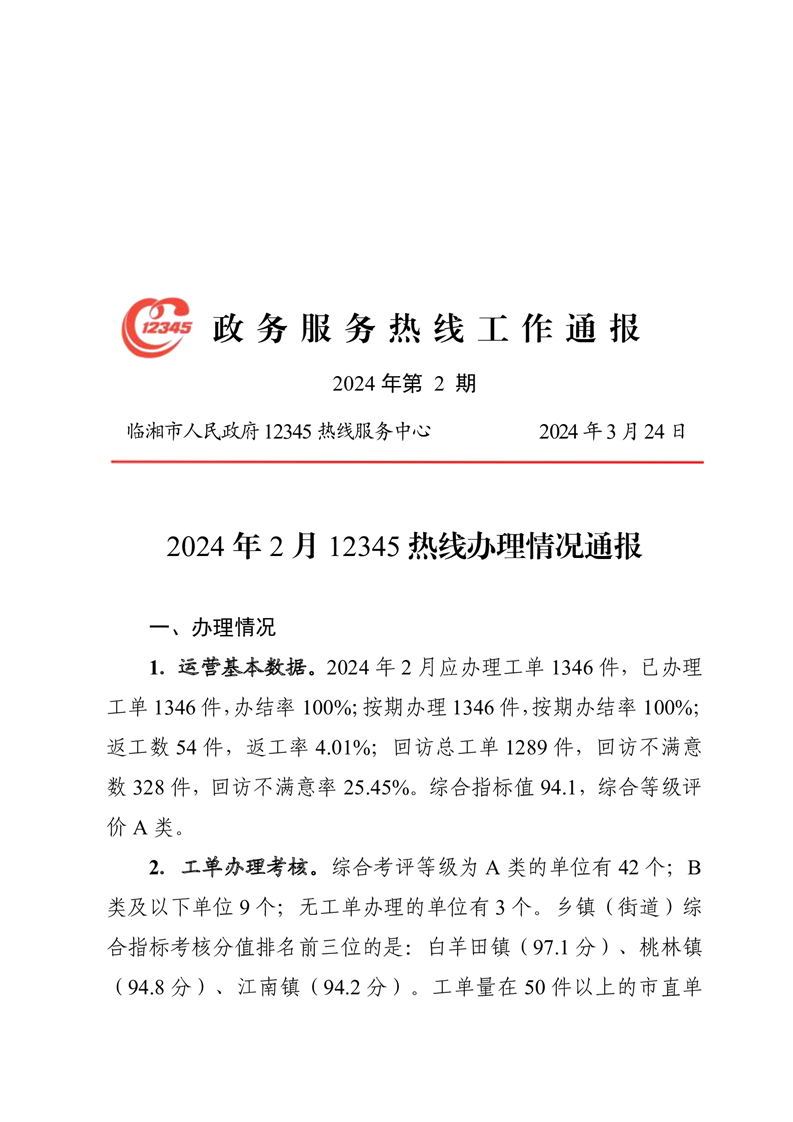 2024年2月12345热线办理情况通报