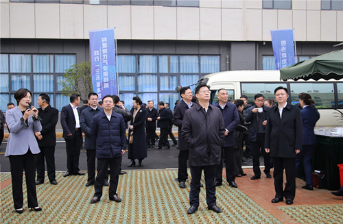 陈爱林一行先后实地考察了湖南瑞琦户外用品有限公司和临湘海创水泥窑综合利用危废固废两个项目。
