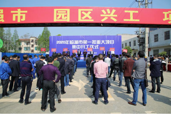 4月9日上午,在春意盎然的长江之滨,临湘市隆重举行2020年第一批重大项目集中开工仪式,7个开工项目总投资57.4亿元。岳阳城陵矶综合保税区党工委书记、管委会主任李建华,党工委委员、管委会副主任许克军,我市领导谢胜、廖星辉、余岳雄、李其报、孙少游、彭海云、夏逢响等出席,相关部门单位、镇(街道)负责人参加开工仪式。