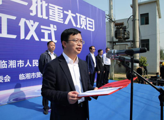 开工仪式由市委副书记余岳雄主持。市委副书记、市长廖星辉在开工仪式上致辞,并介绍了中非经贸产业园、科美芯液晶显示屏电子信息、长江临湘段水环境综合治理,九鼎、博利特、君泰农牧、宏岳养殖4个生猪规模化养殖,钓具电商物流园,渔潭尾砂库尾砂回采,临鸭公路(二期)等七个开工项目情况。