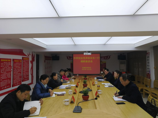 为贯彻落实党的十九届五中全会精神、习近平总书记关于外贸高质量发展的系列讲话精神以及视察湖南时提出的“三高四新”要求,12月2日,岳阳市贸促会会长范泽容、副会长刘大海一行四人到临湘开展“打造内陆地区改革开放高地,推动贸易高质量发展”专题调研。