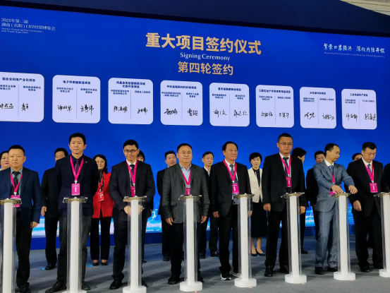 此次博览会为期5天,包括开幕式及论坛、推介及项目签约、展览展示三大板块。集中展示来自俄罗斯、法国、马来西亚以及境内部分省(市)区的3800多种国内外商品。此次活动,我市中科启程新材料科技项目进行了现场签约,并组织了湖南省高圣生物科技股份有限公司、湖南省明伦茶业有限公司、湖南九丰农业发展有限公司、湖南十三村食品有限公司四家本地企业参展。