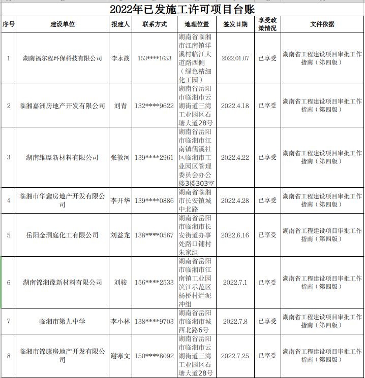 2022年已发施工许可项目台账