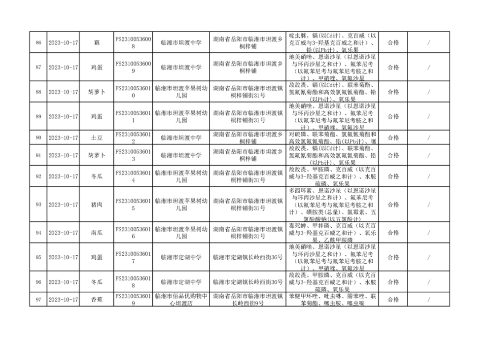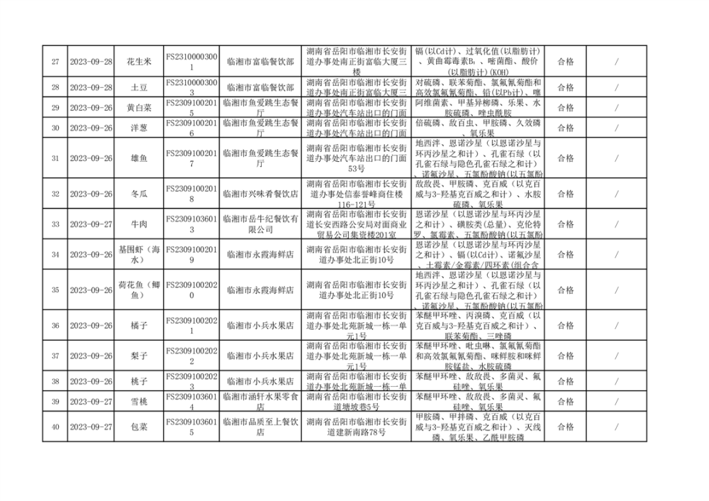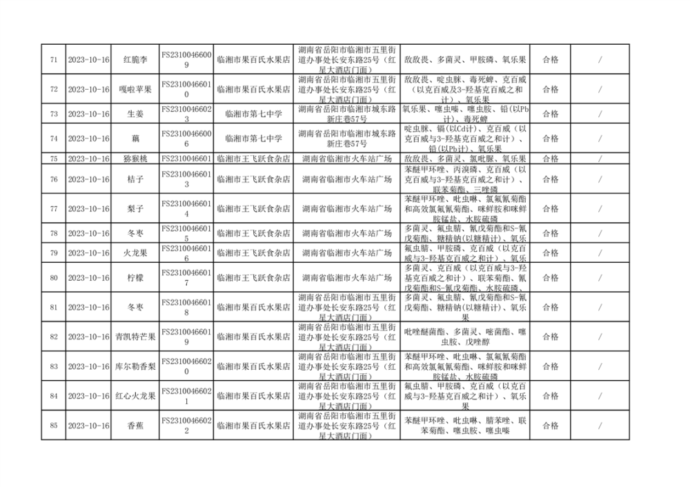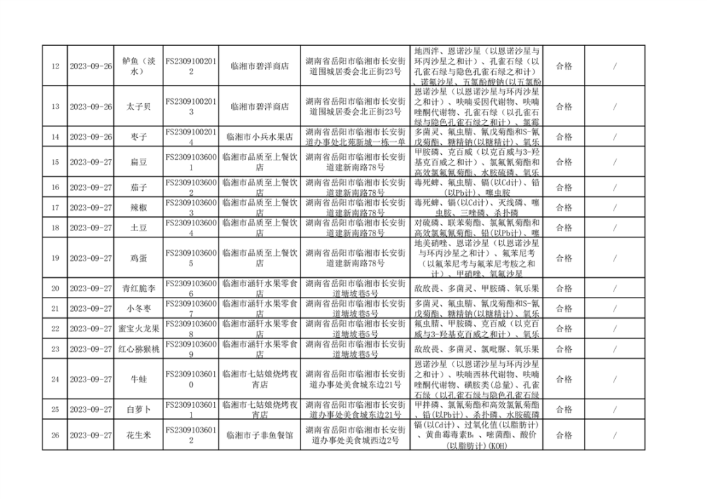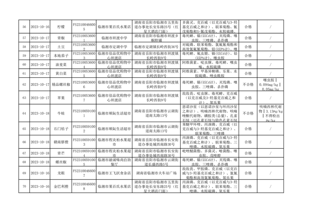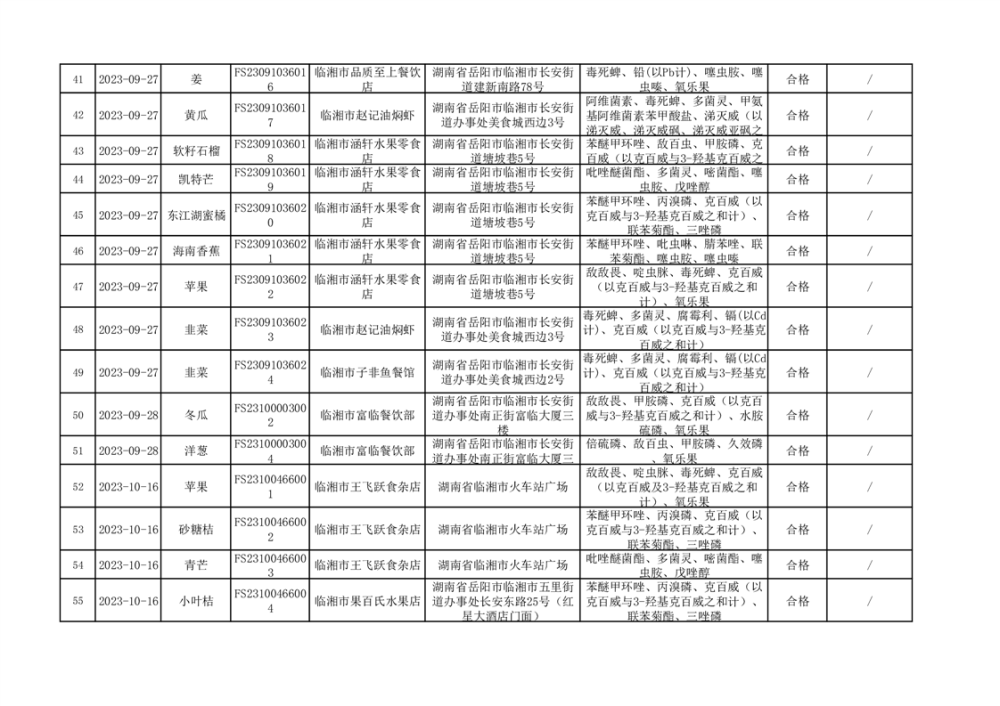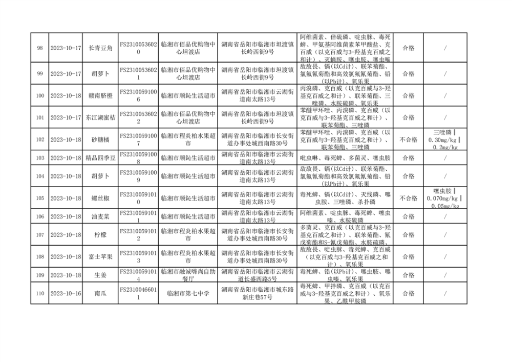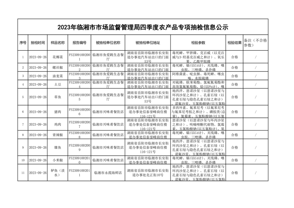 2023年临湘市市场监督管理局四季度农产品专项抽检信息公示