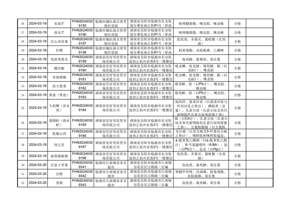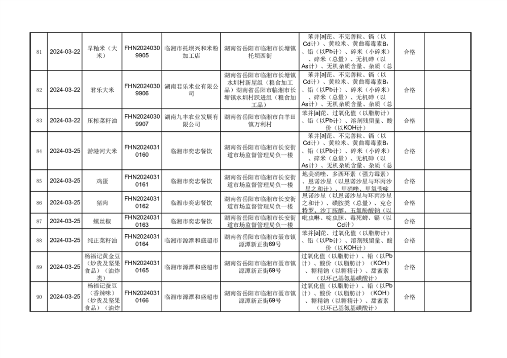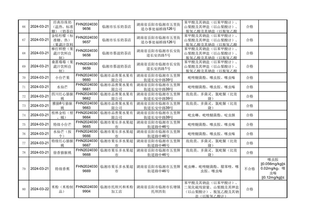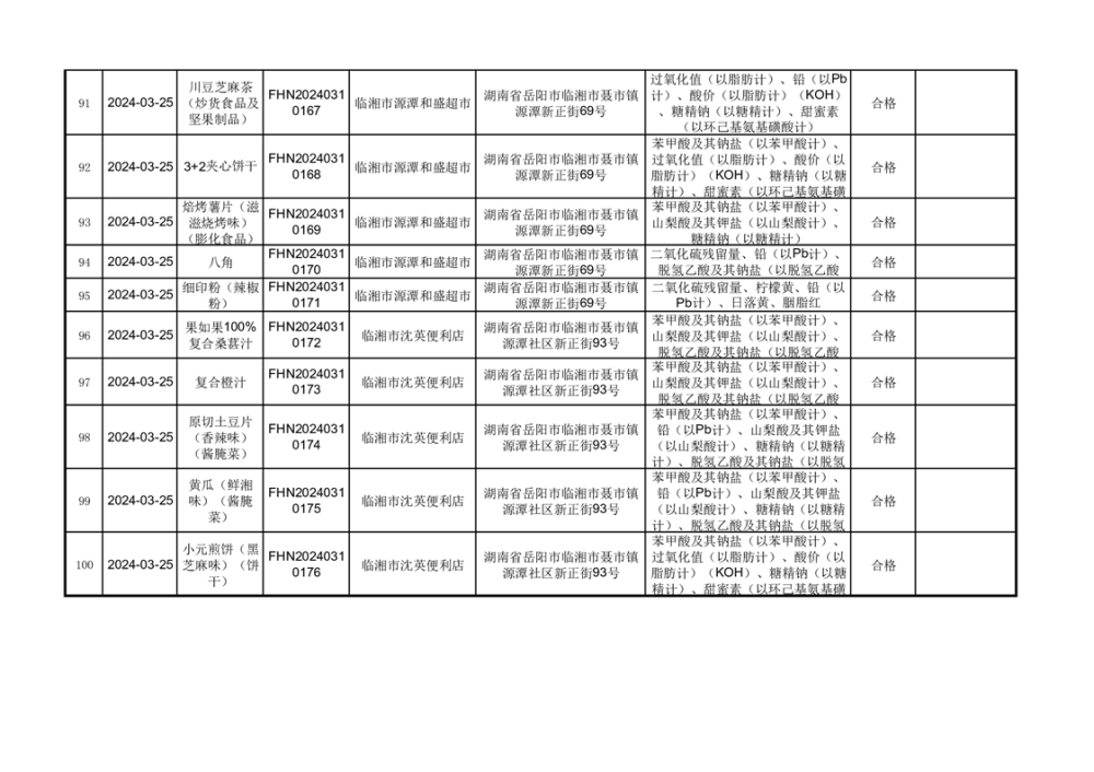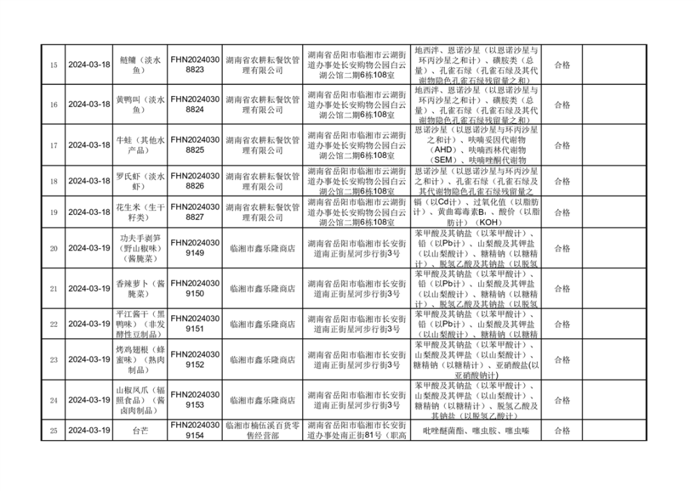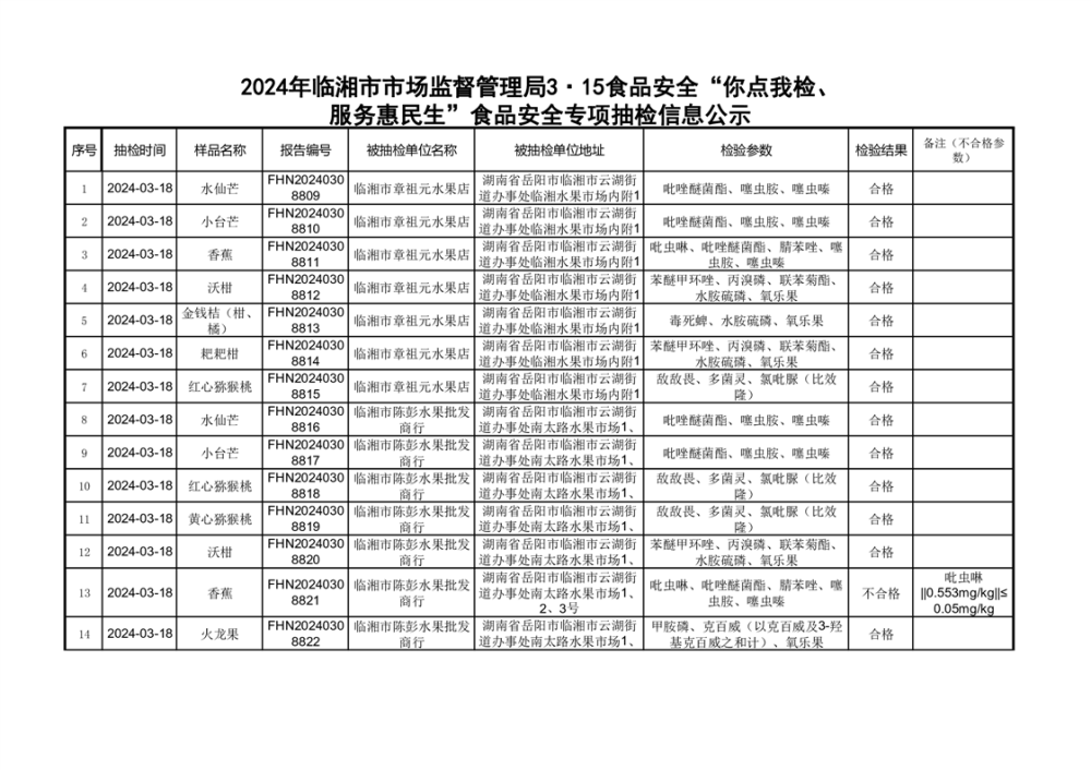 2024年临湘市市场监督管理局3·15食品安全“你点我检、 服务惠民生”食品安全专项抽检信息公示