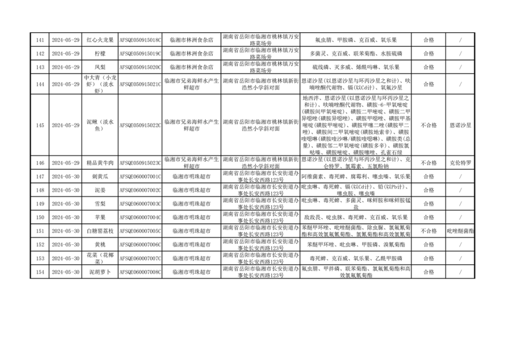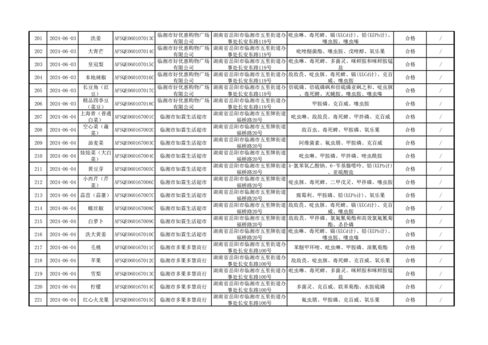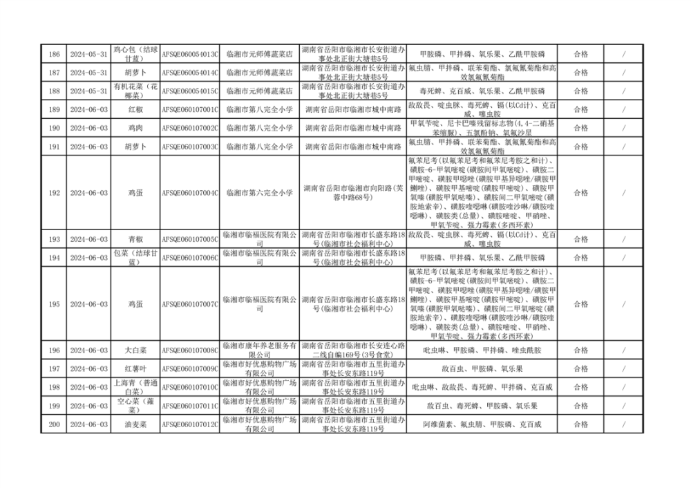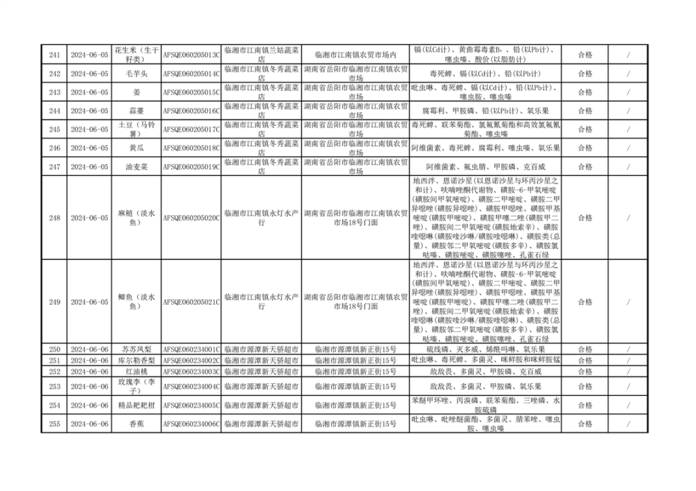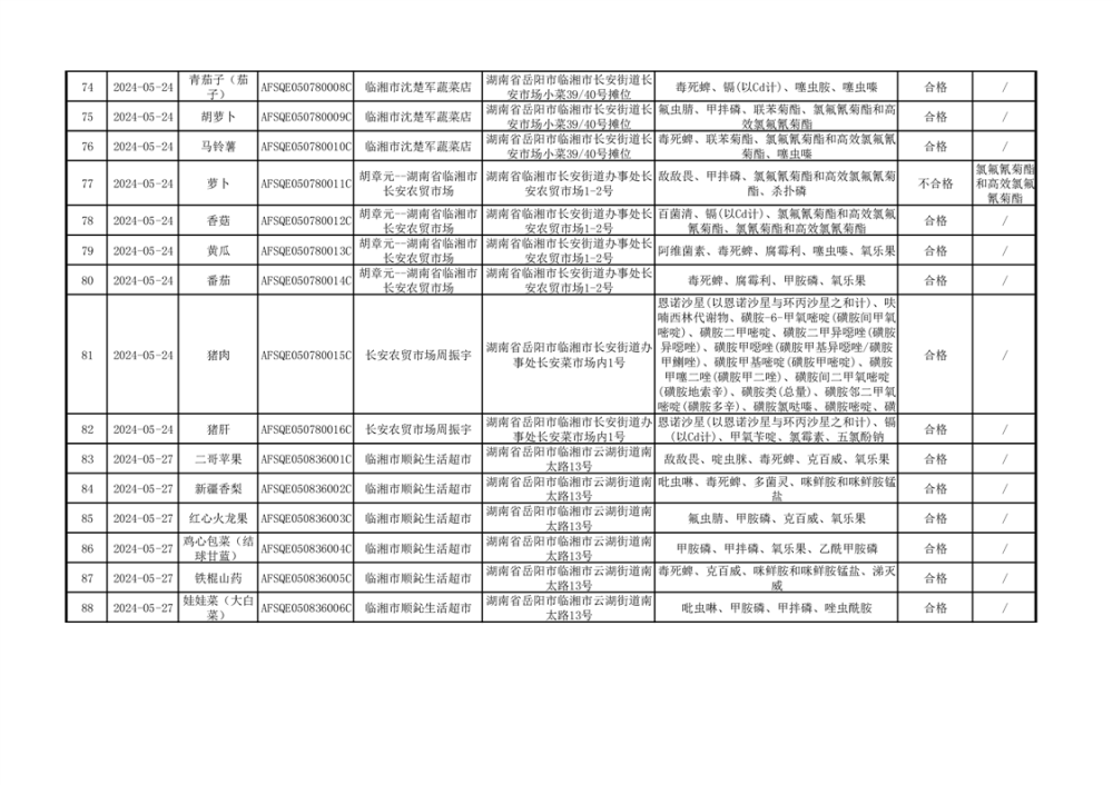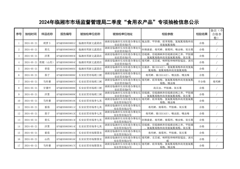 2024年临湘市市场监督管理局二季度食用农产品专项抽检信息公示