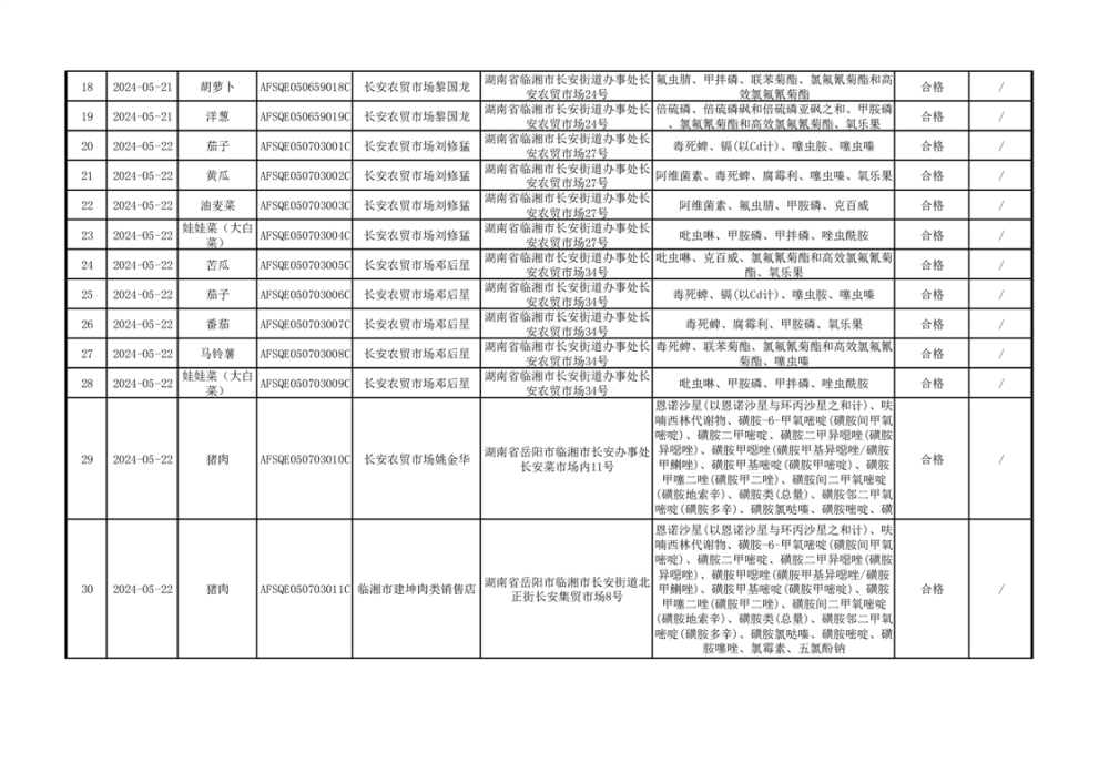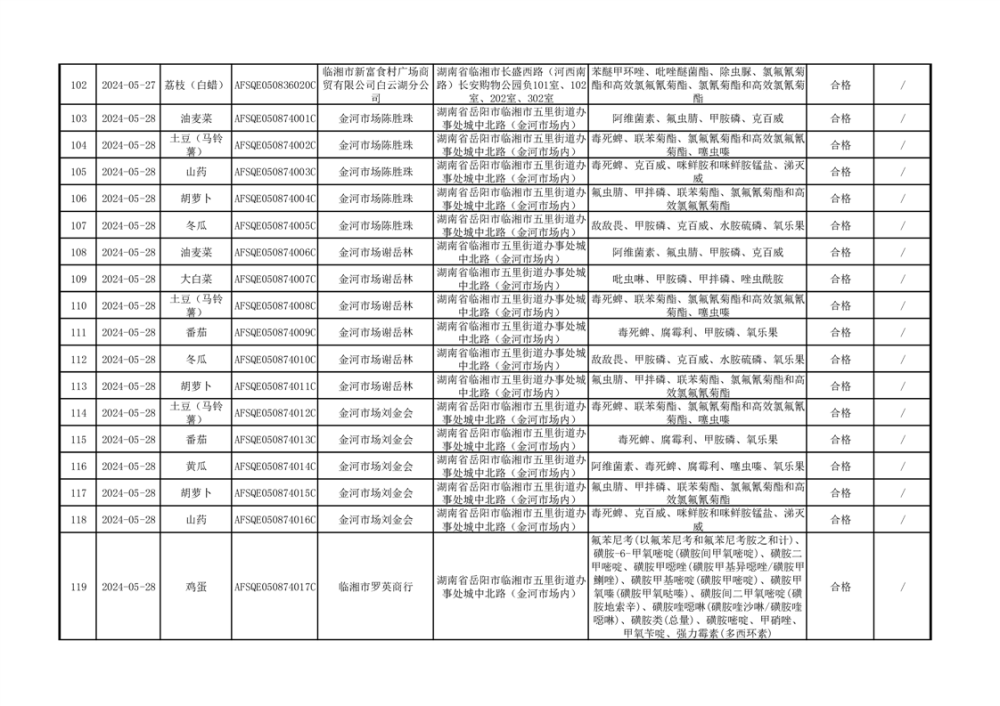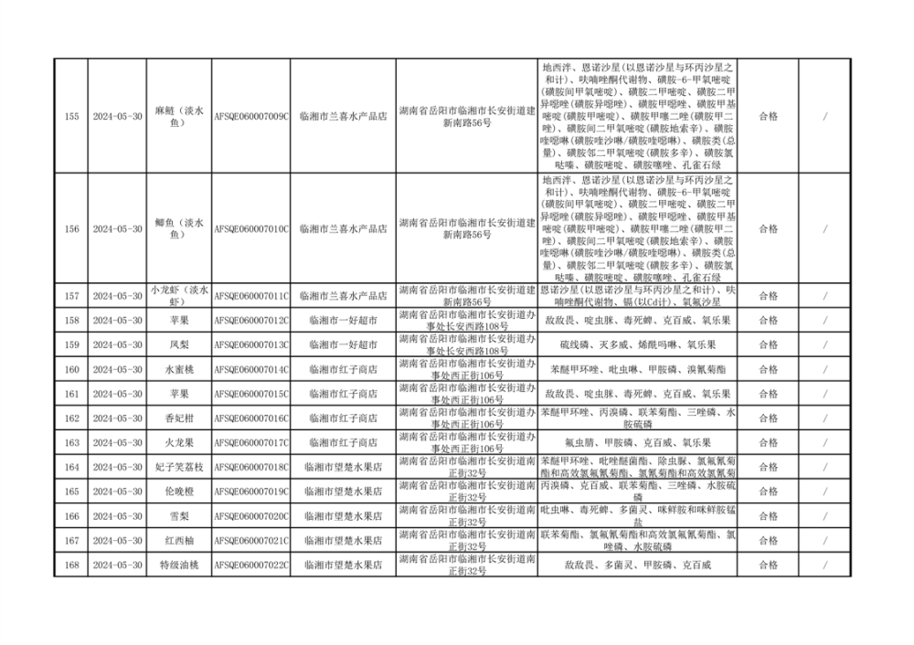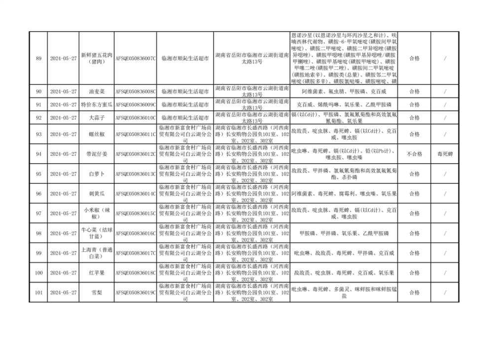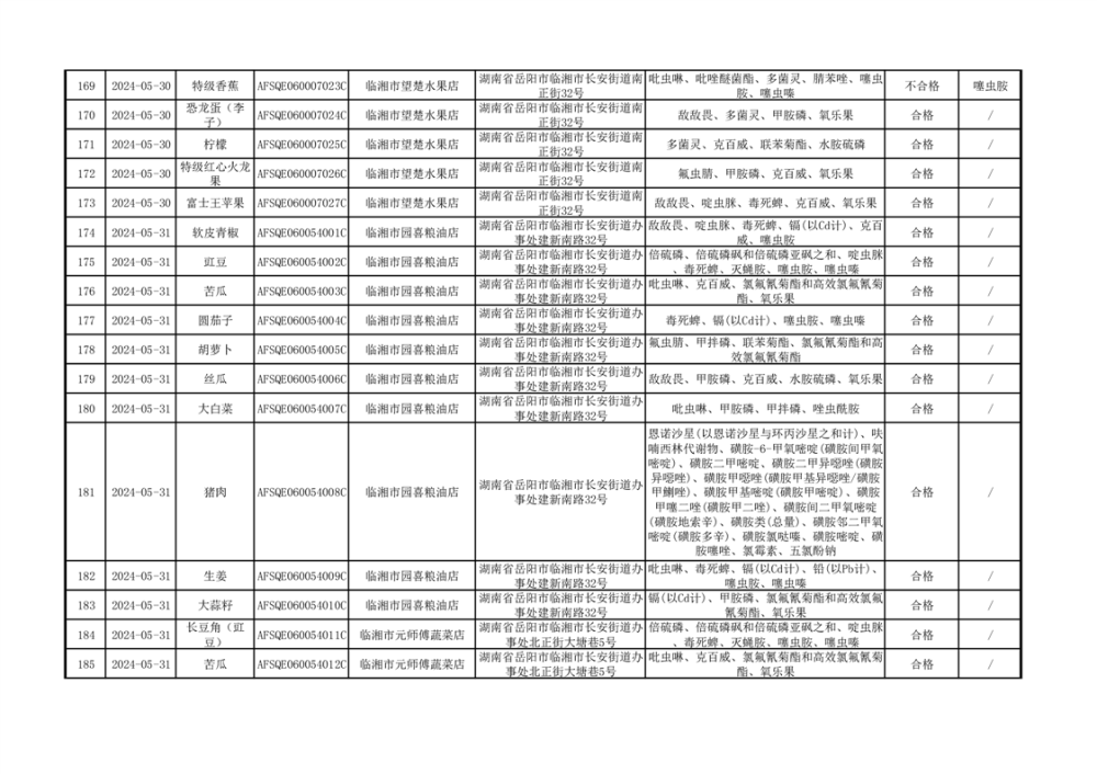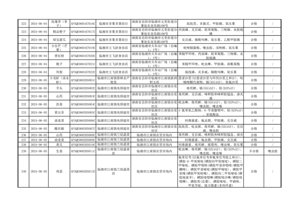 2024年临湘市市场监督管理局二季度食用农产品专项抽检信息公示