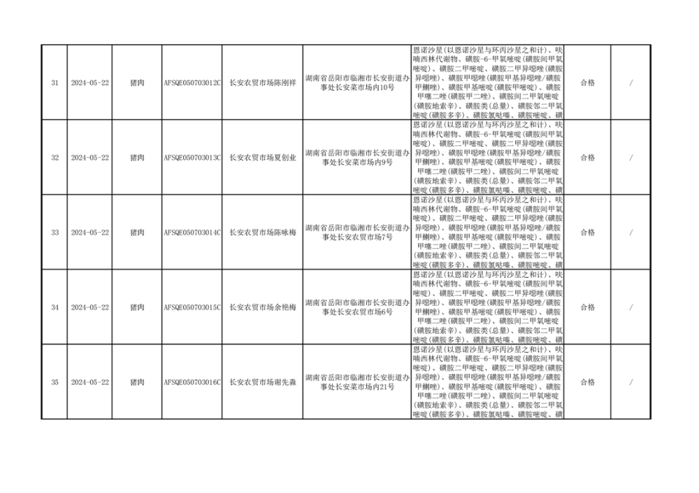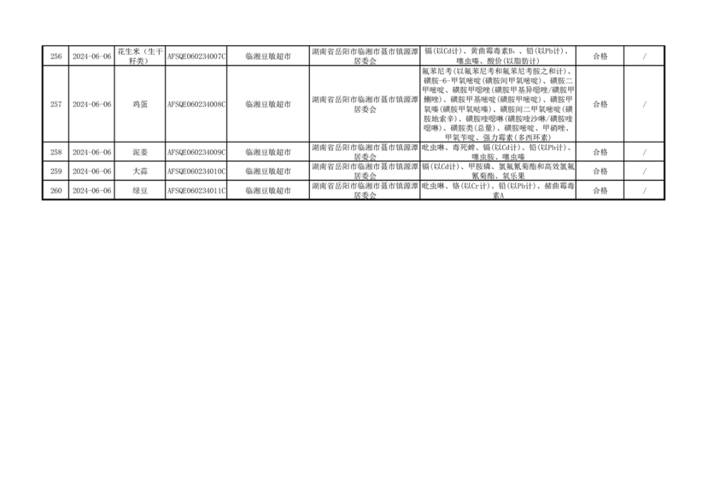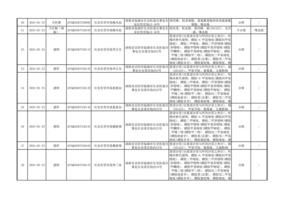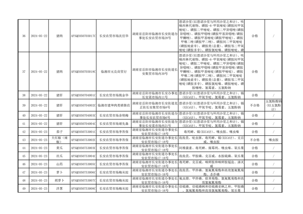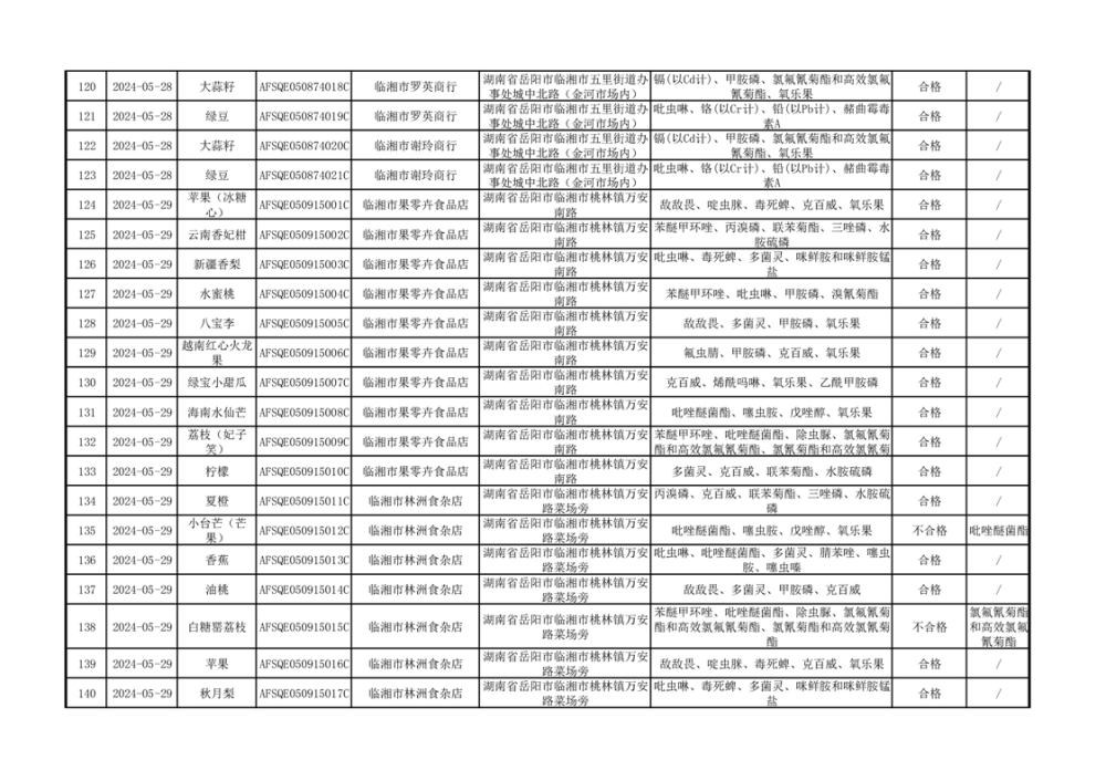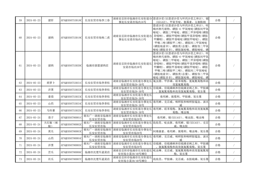 2024年临湘市市场监督管理局二季度食用农产品专项抽检信息公示