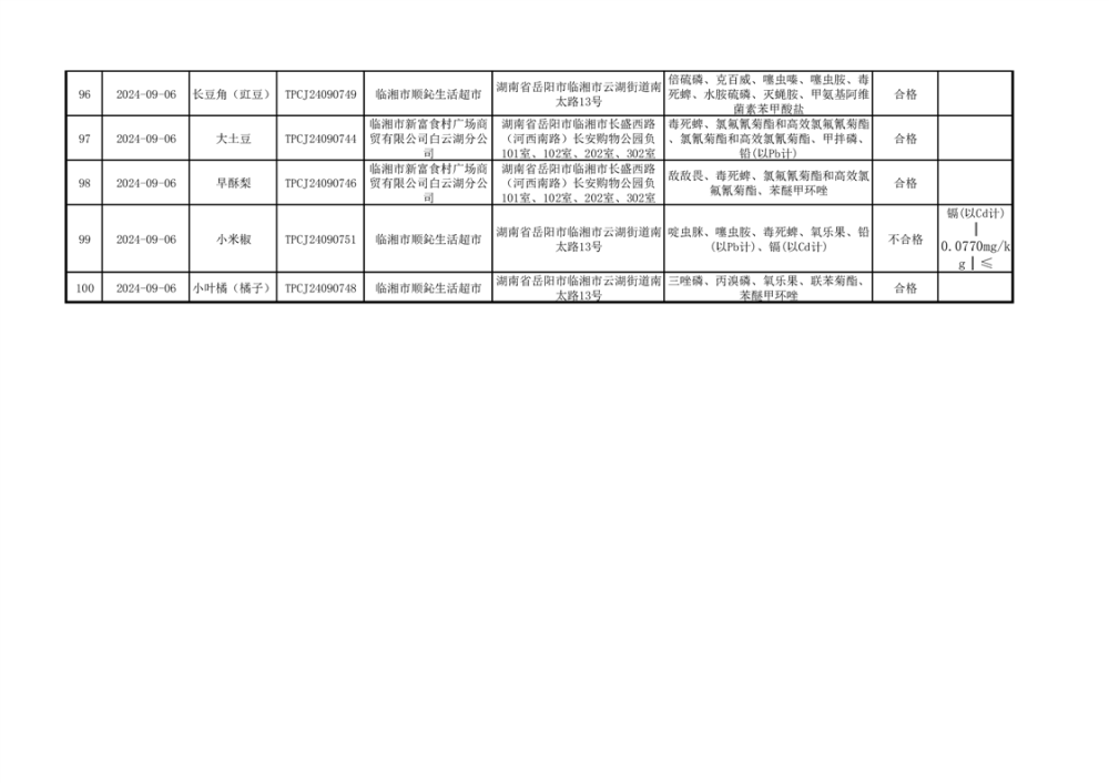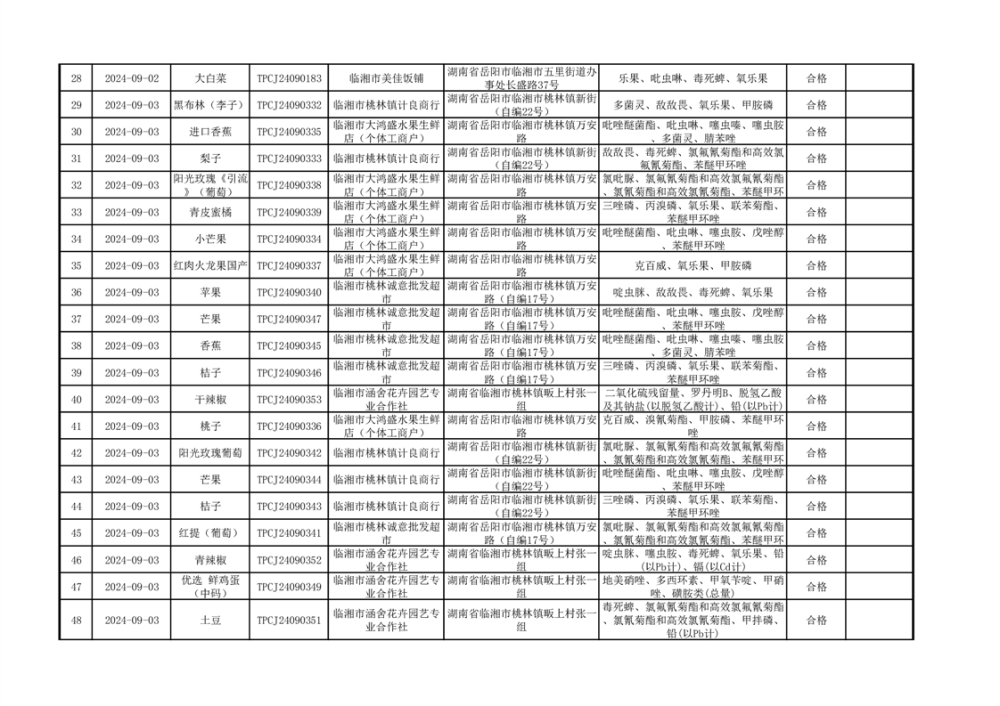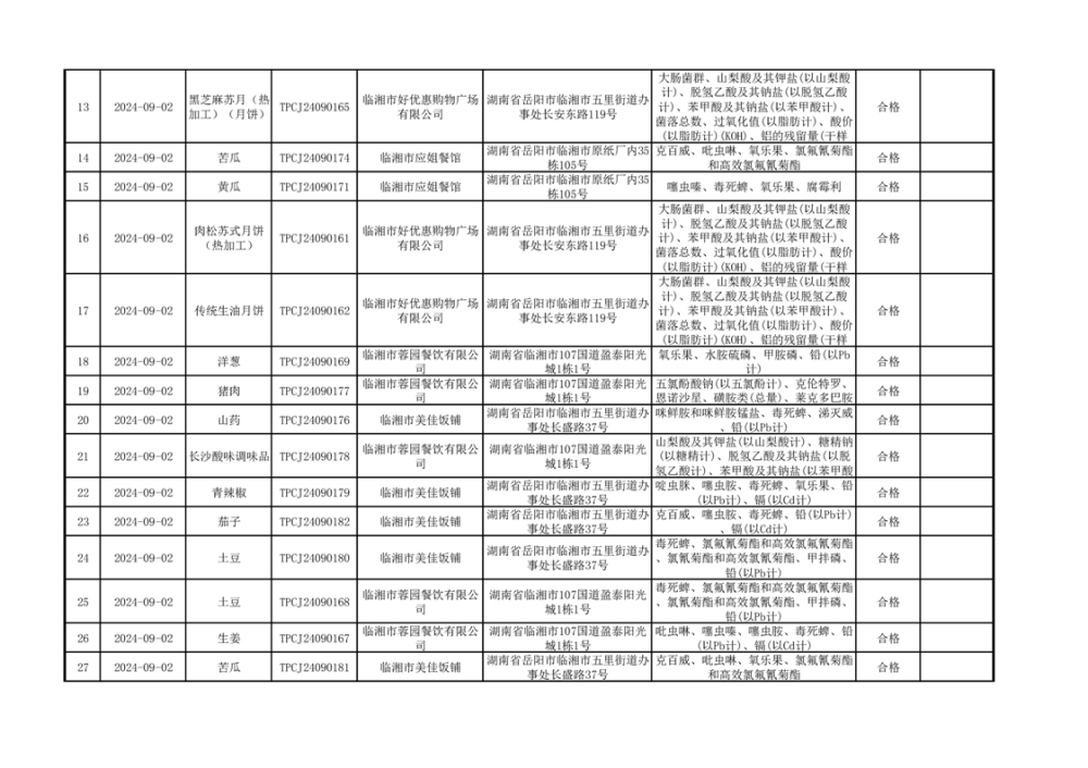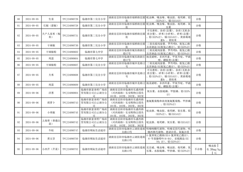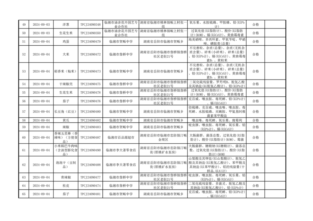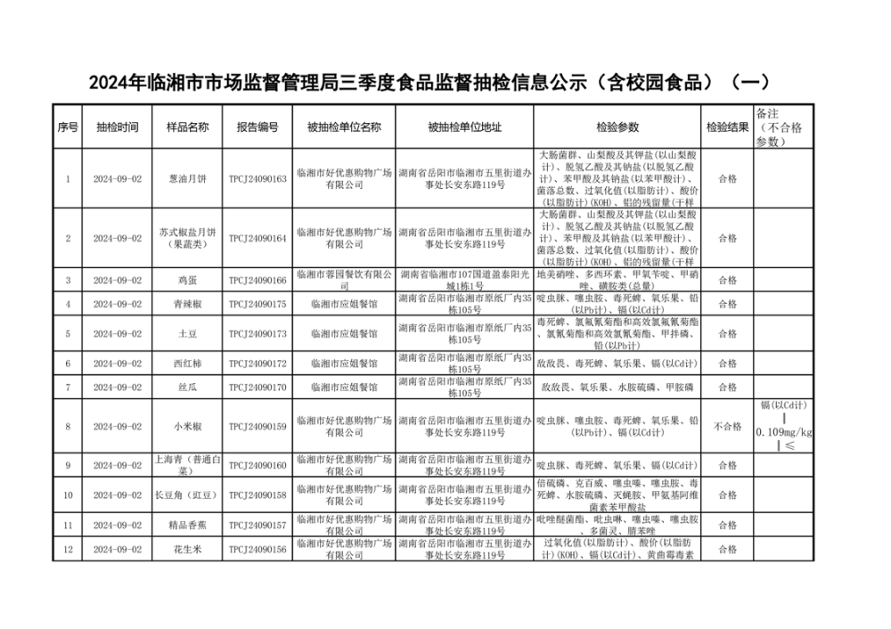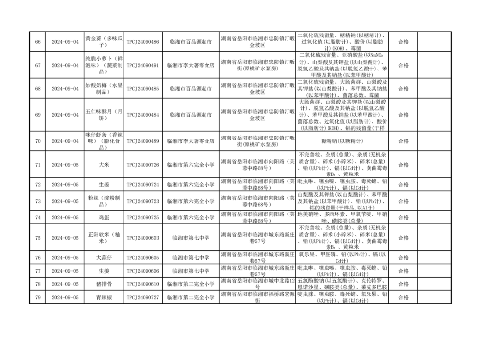 2024年临湘市市场监督管理局三季度食品监督抽检信息公示(含校园食品)(一)