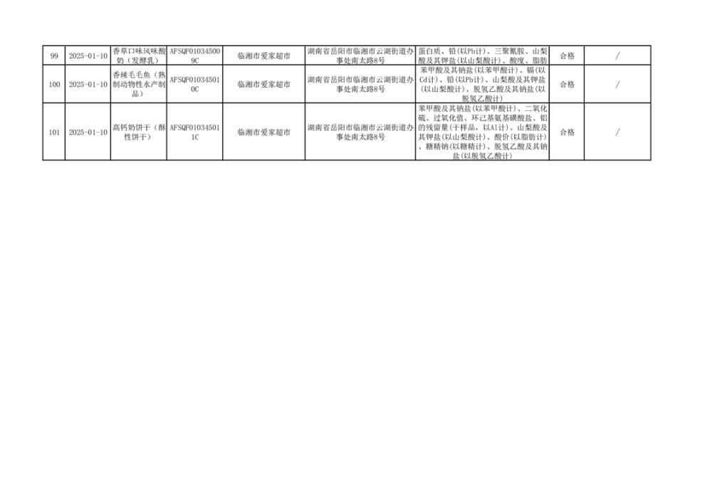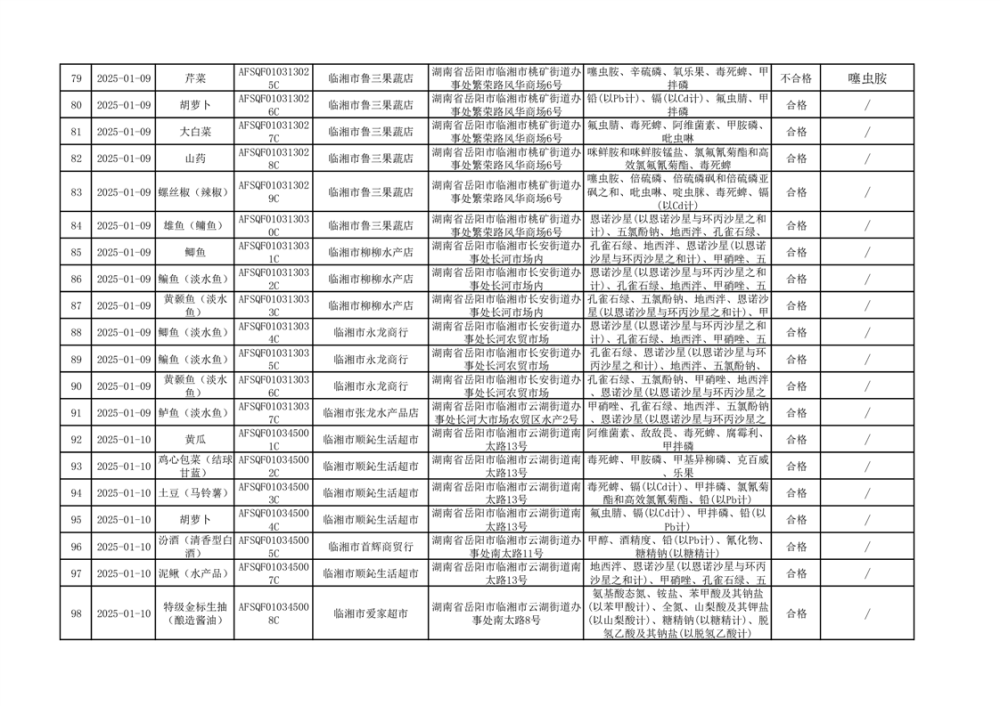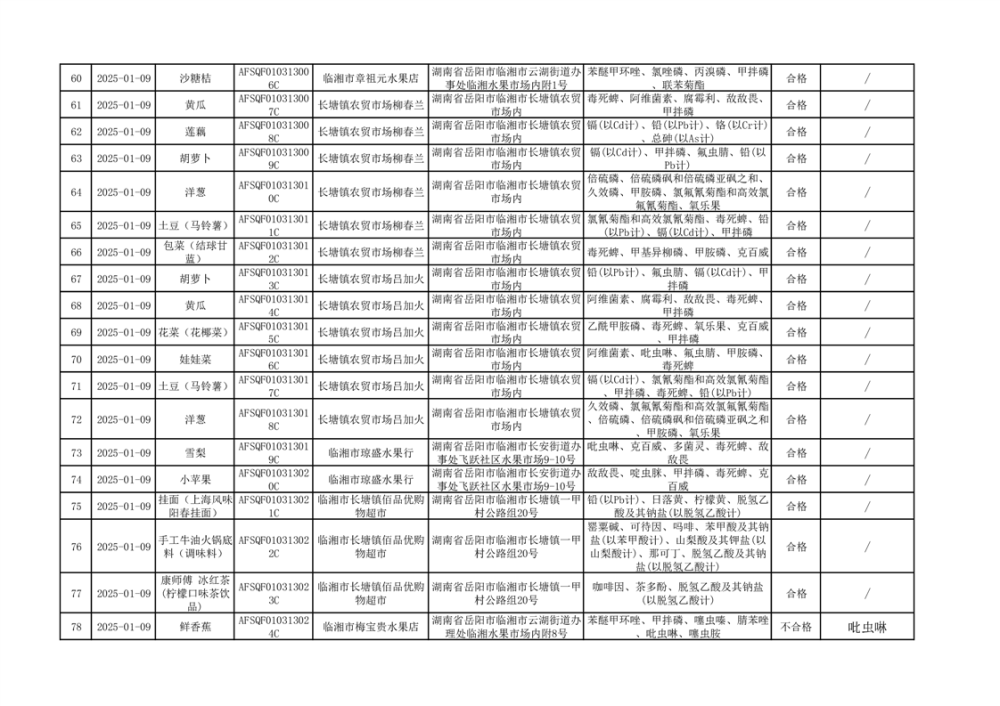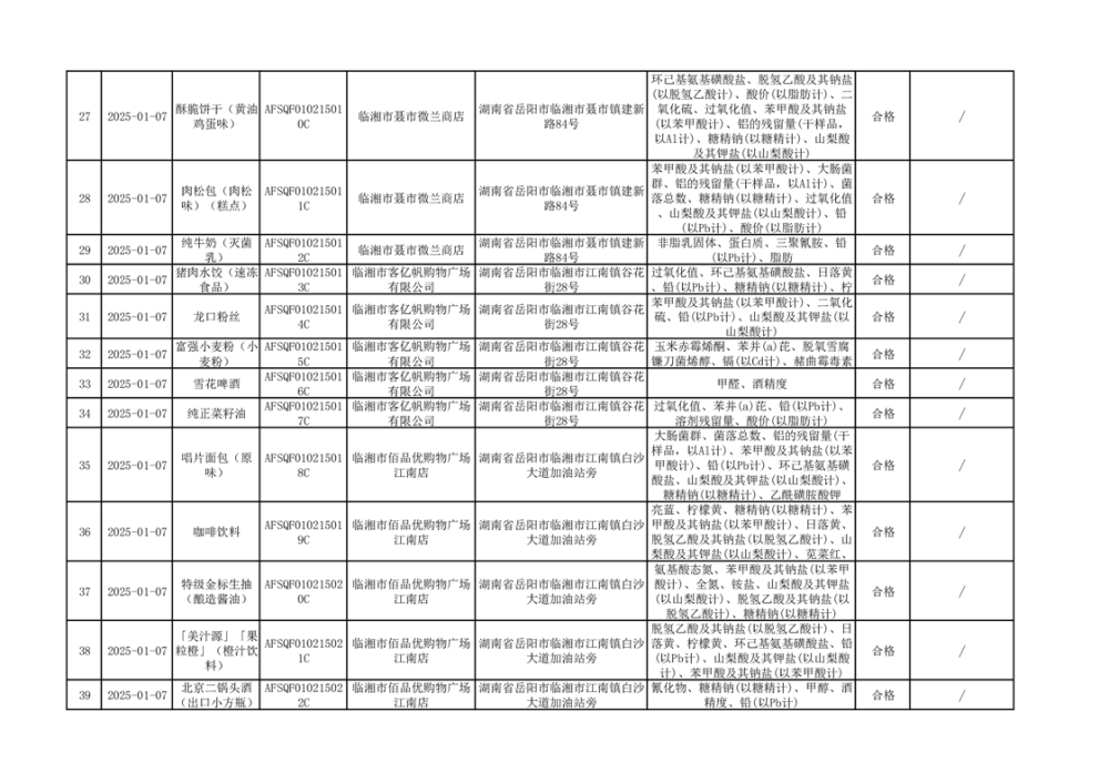 2025年临湘市市场监督管理局“年关守护”抽检信息公示(一)
