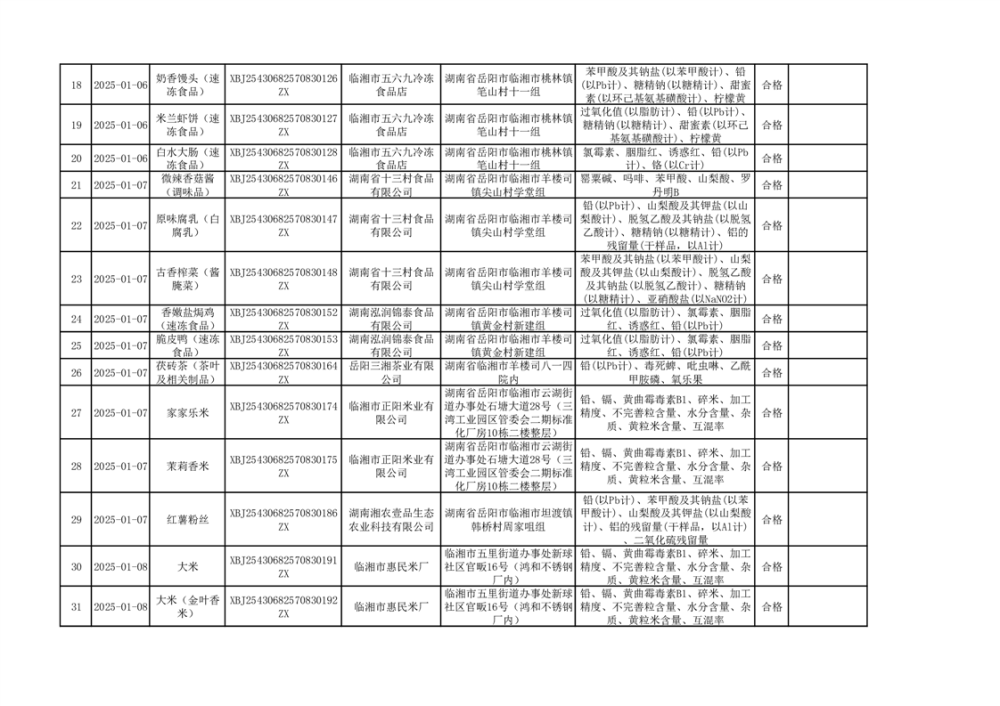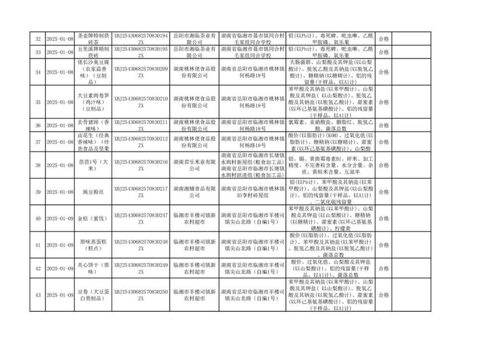 2025年临湘市市场监督管理局“年关守护”抽检信息公示(二)