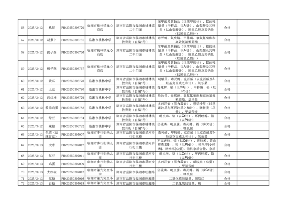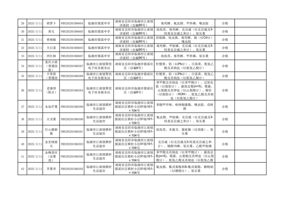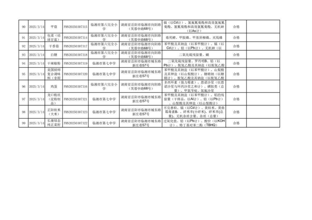 临湘市市场监督管理局2025年“315你点我检和春季校园专项”抽检公示