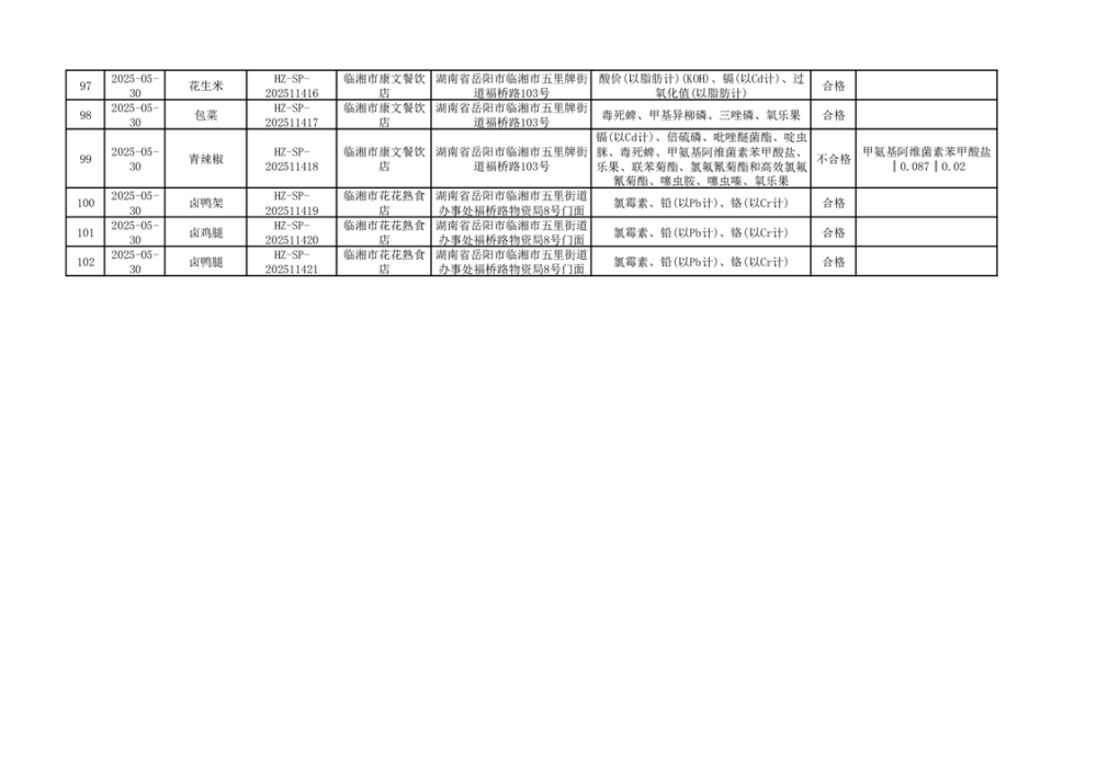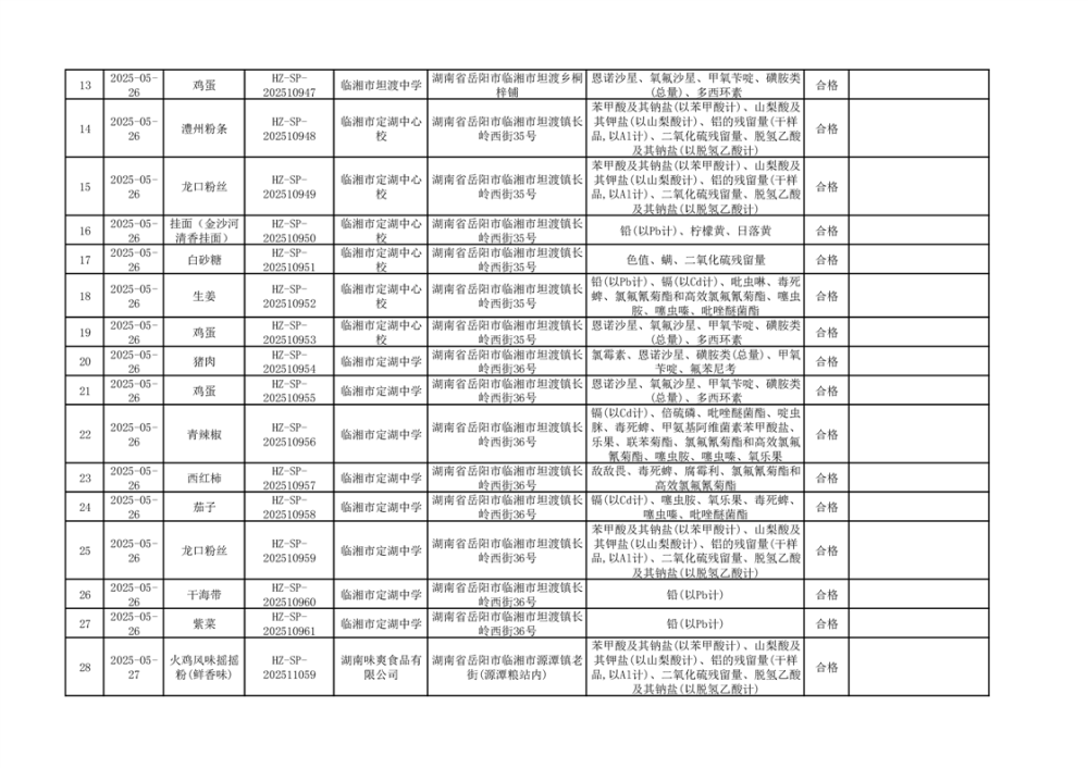 2025年临湘市市场监督管理局二季度食品监督抽检信息公示