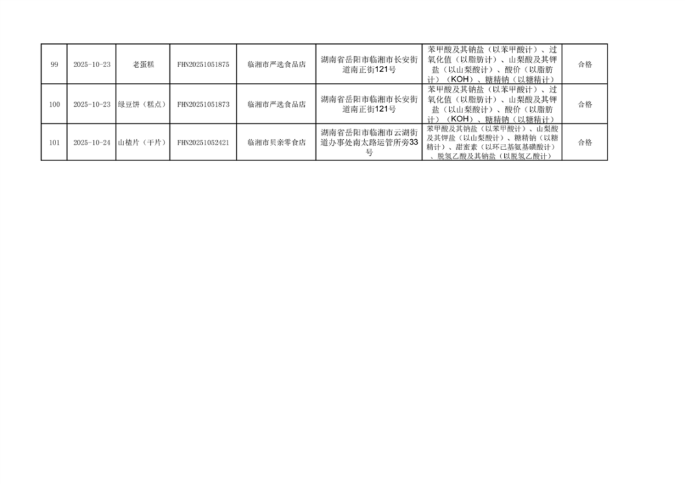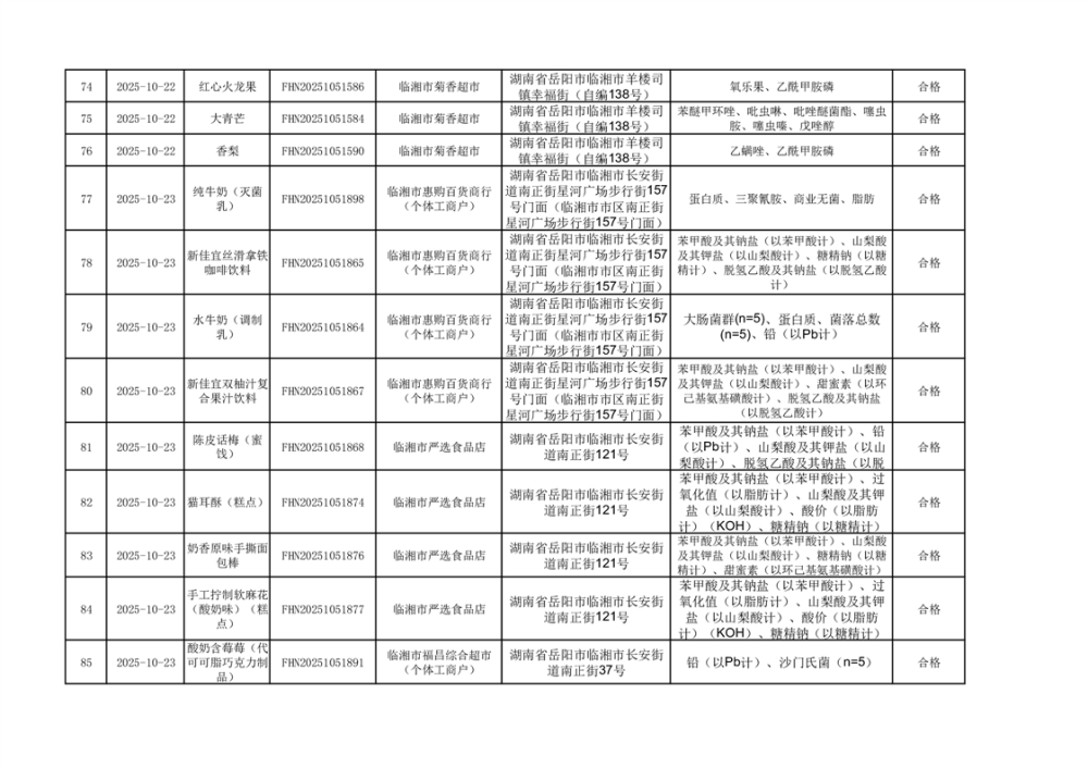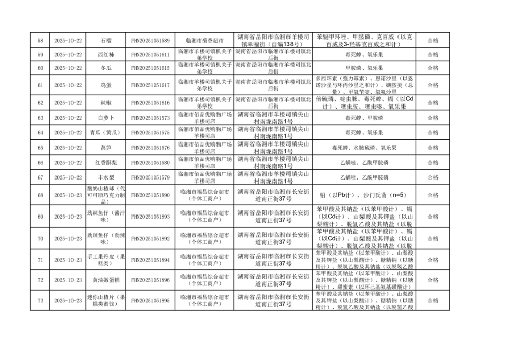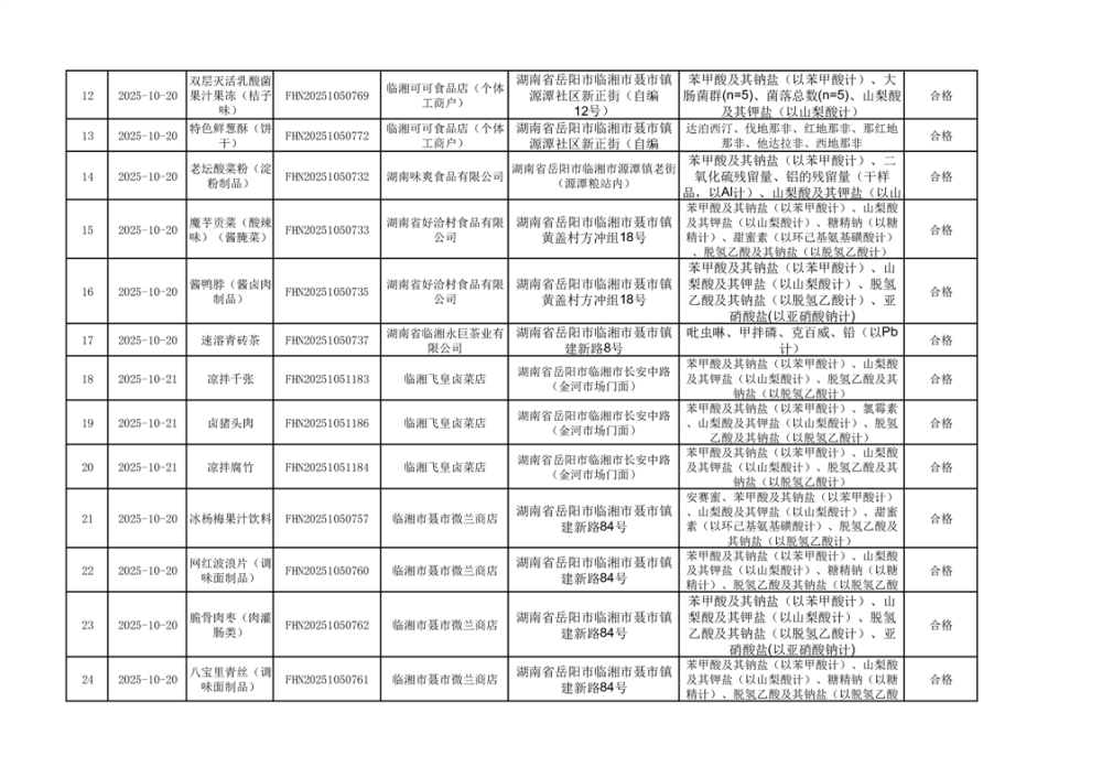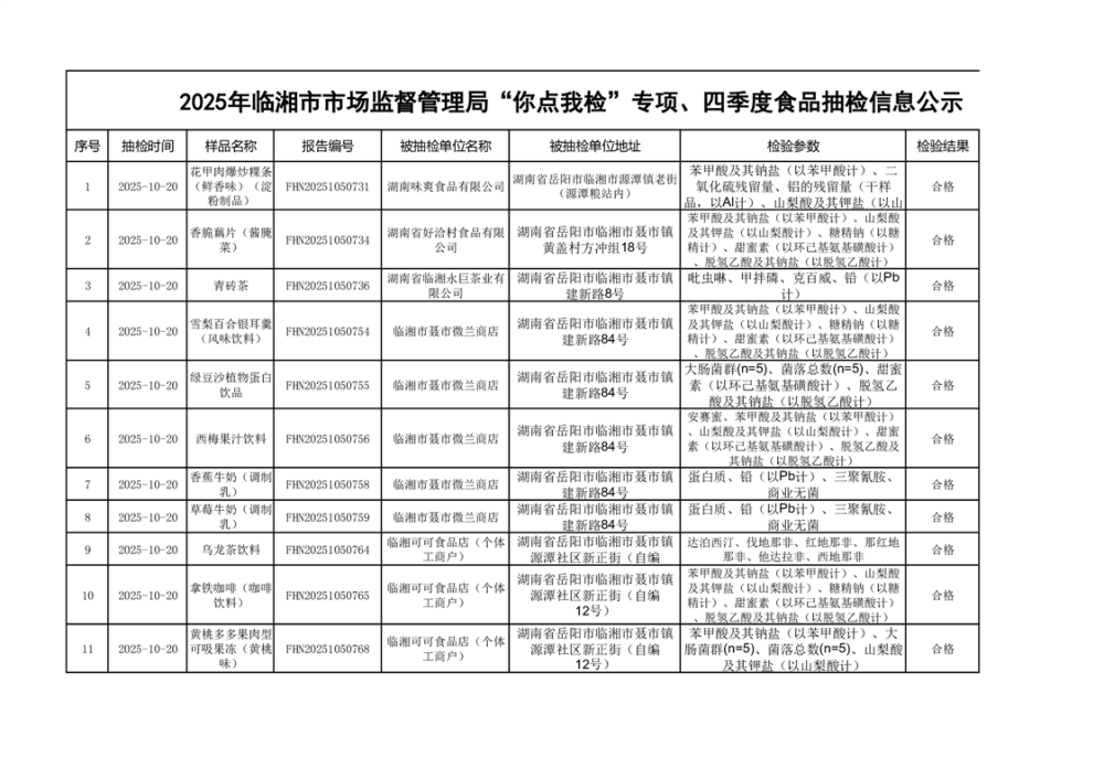 临湘市市场监督管理局2025年“你点我检”专项、四季度食品抽检信息公示