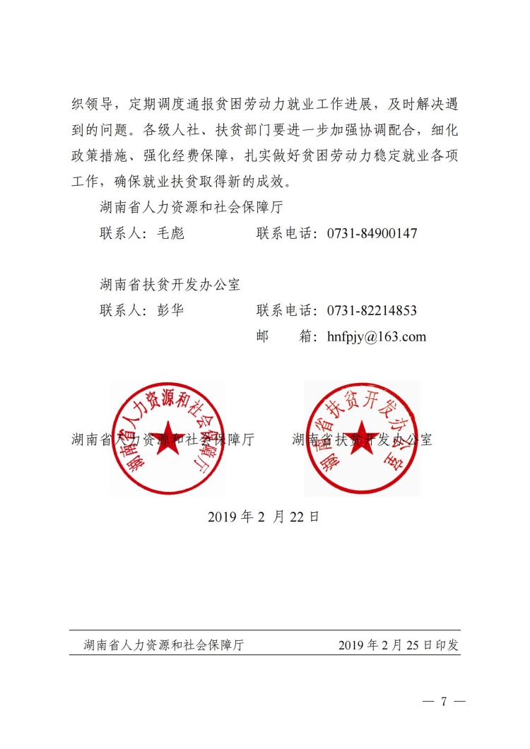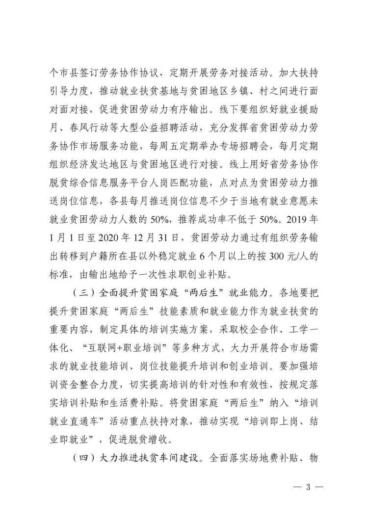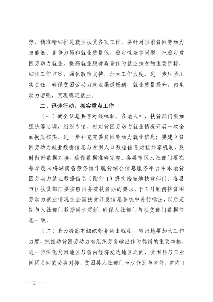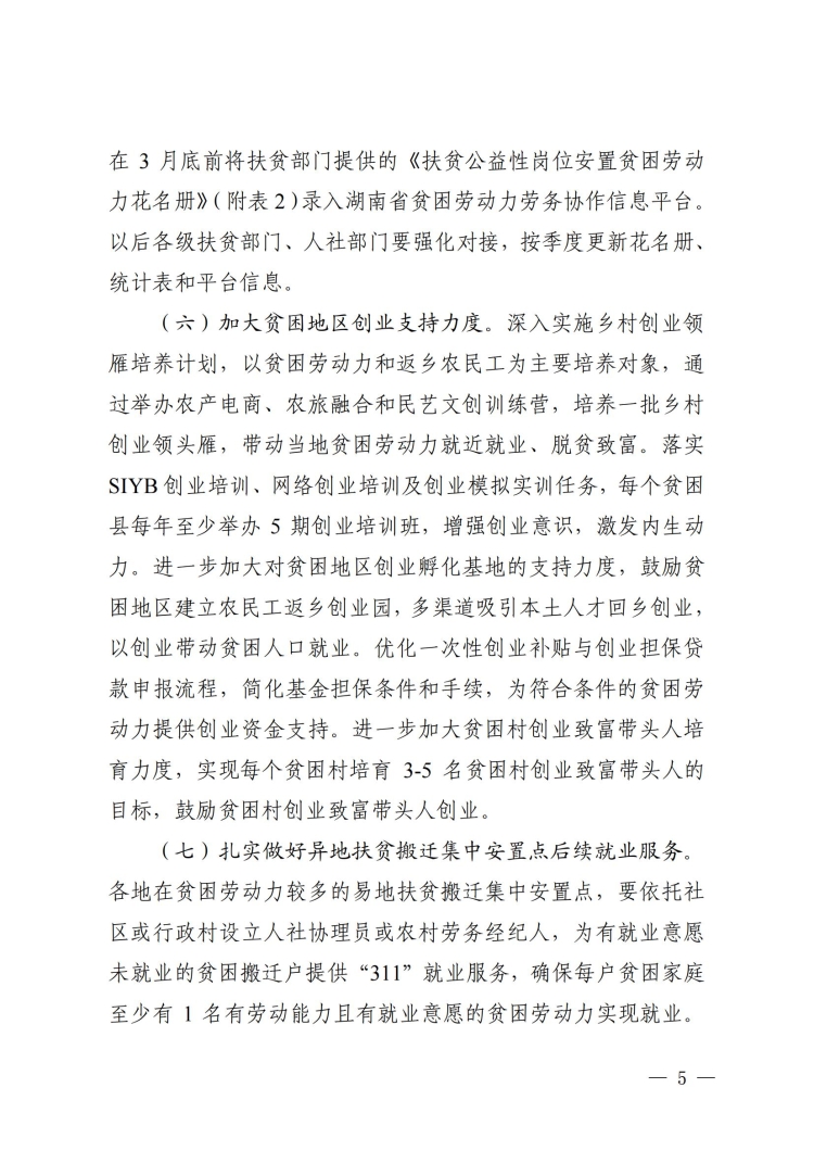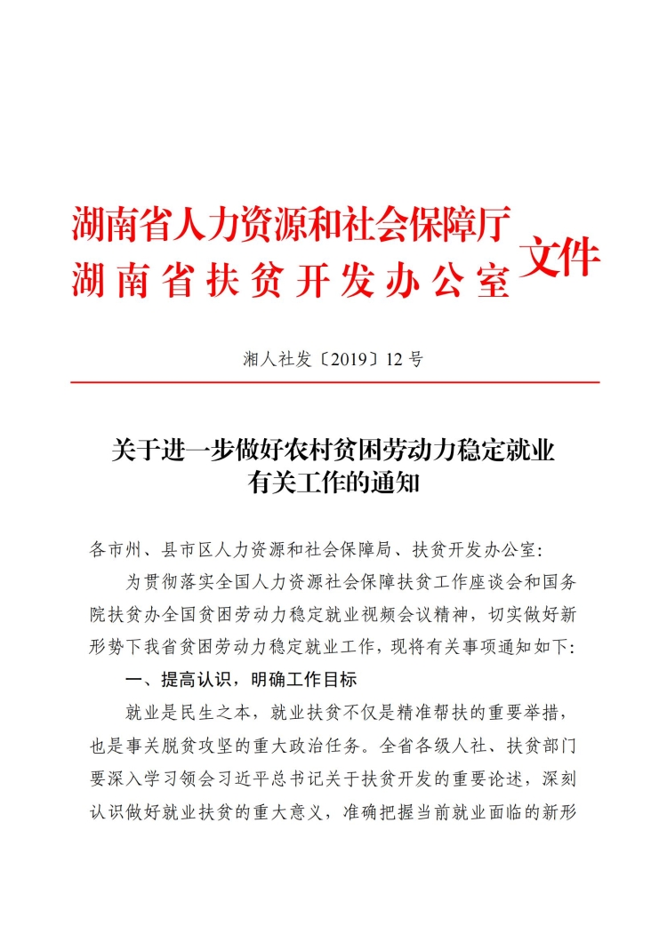 关于进一步做好农村贫困劳动力稳定就业有关工作的通知 湘人社发[2019]12号