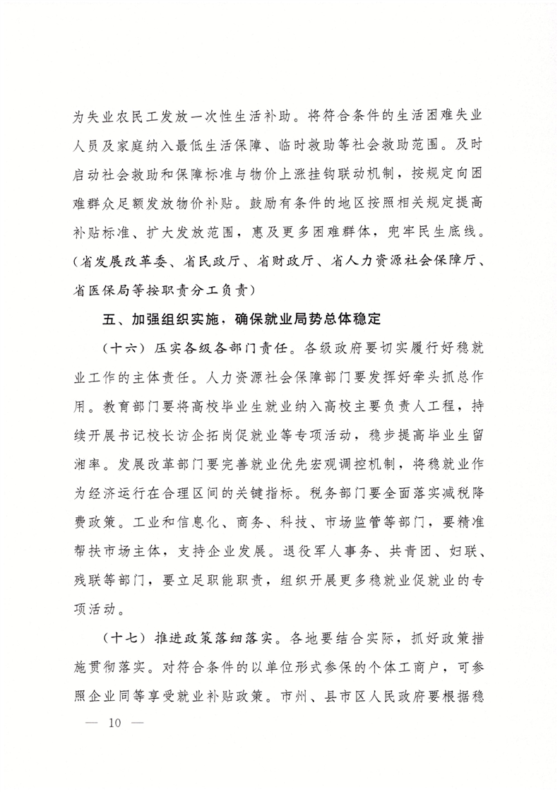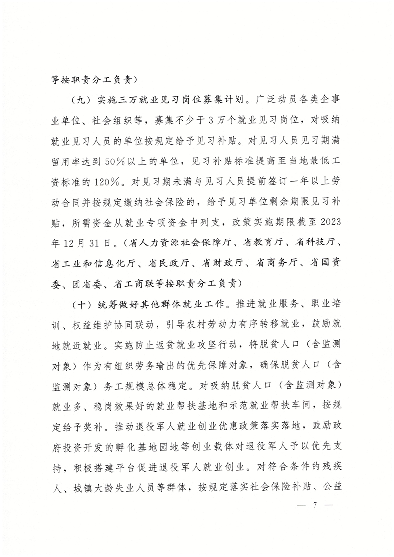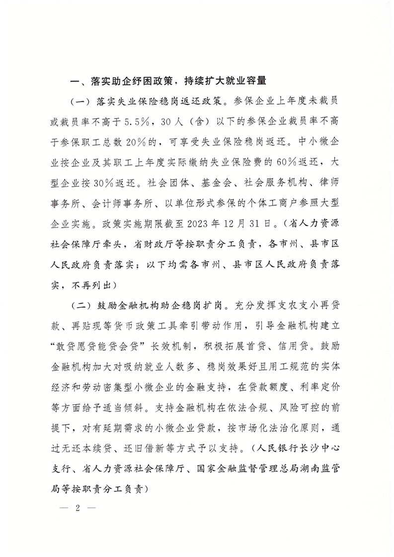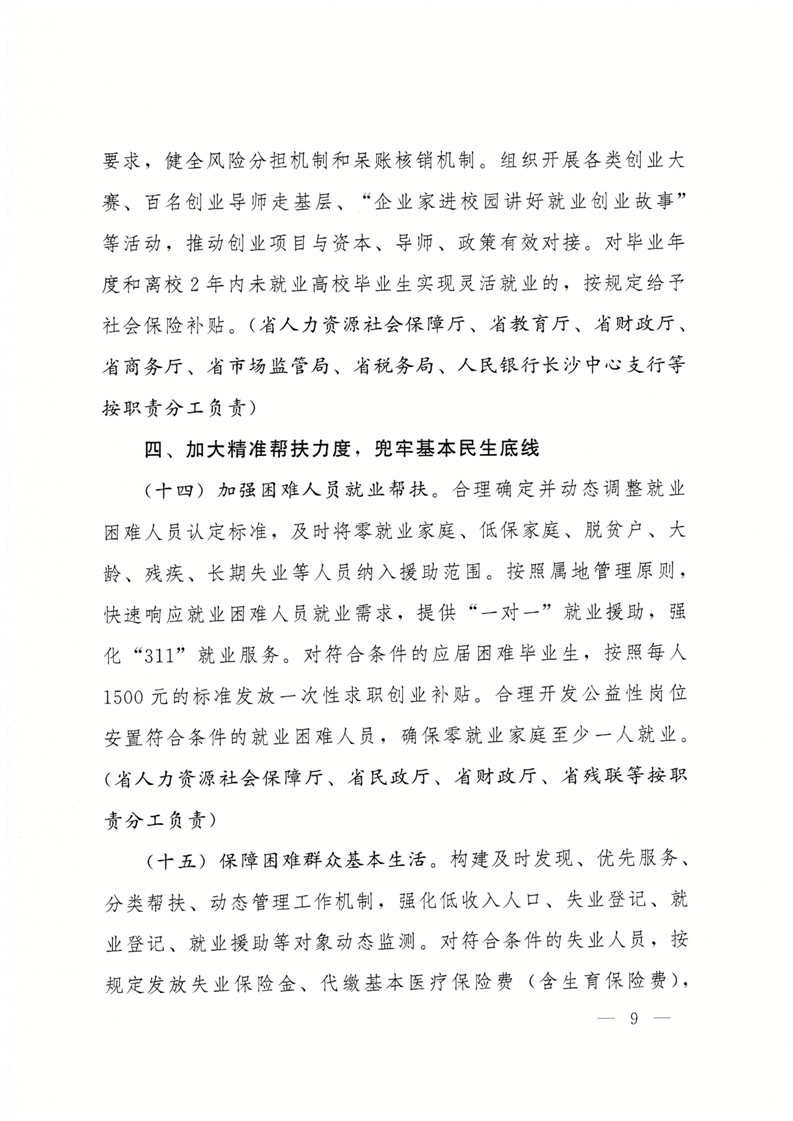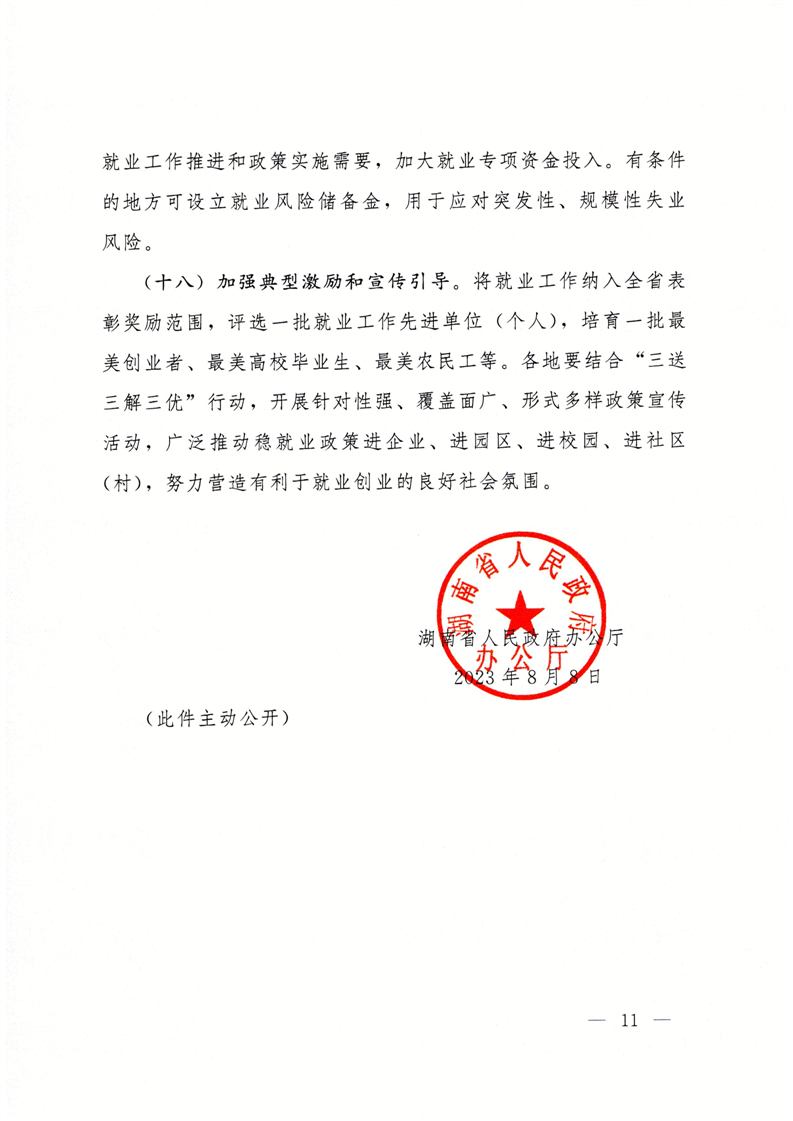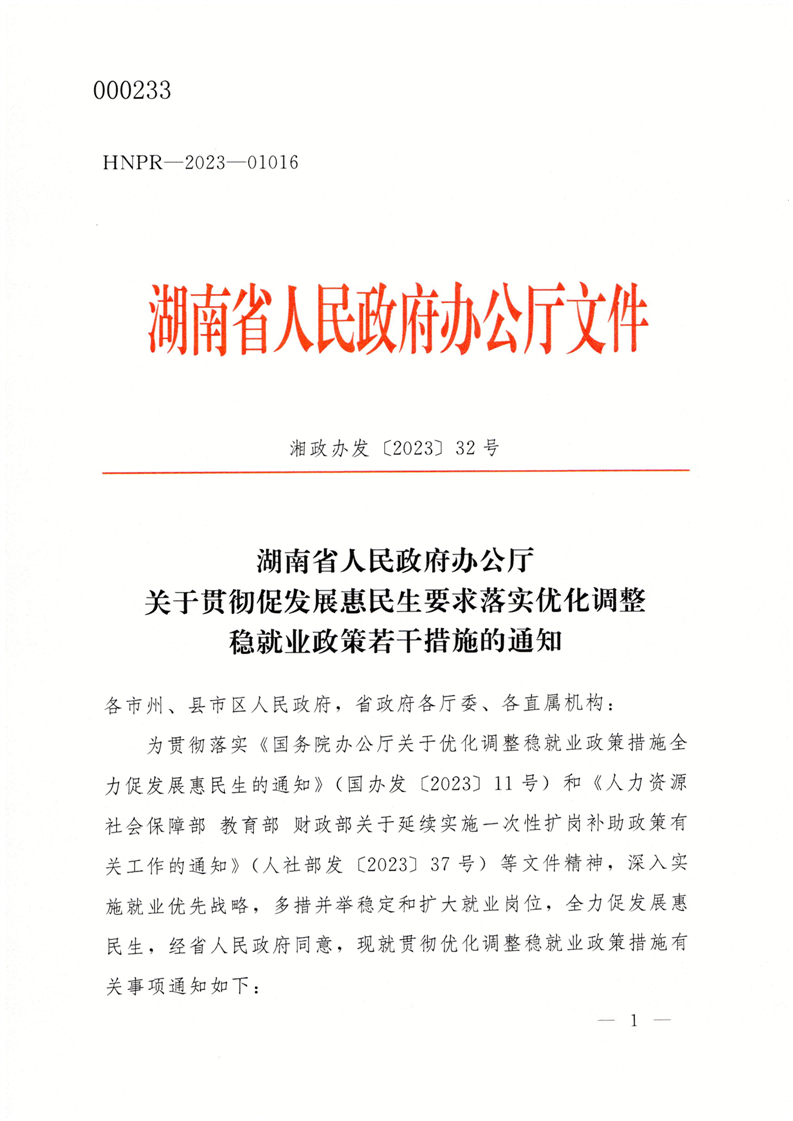 湖南省人民政府办公厅关于贯彻促发展惠民生要求落实优化调整稳就业政策若干措施的通知(湘政办发【2023】32号)