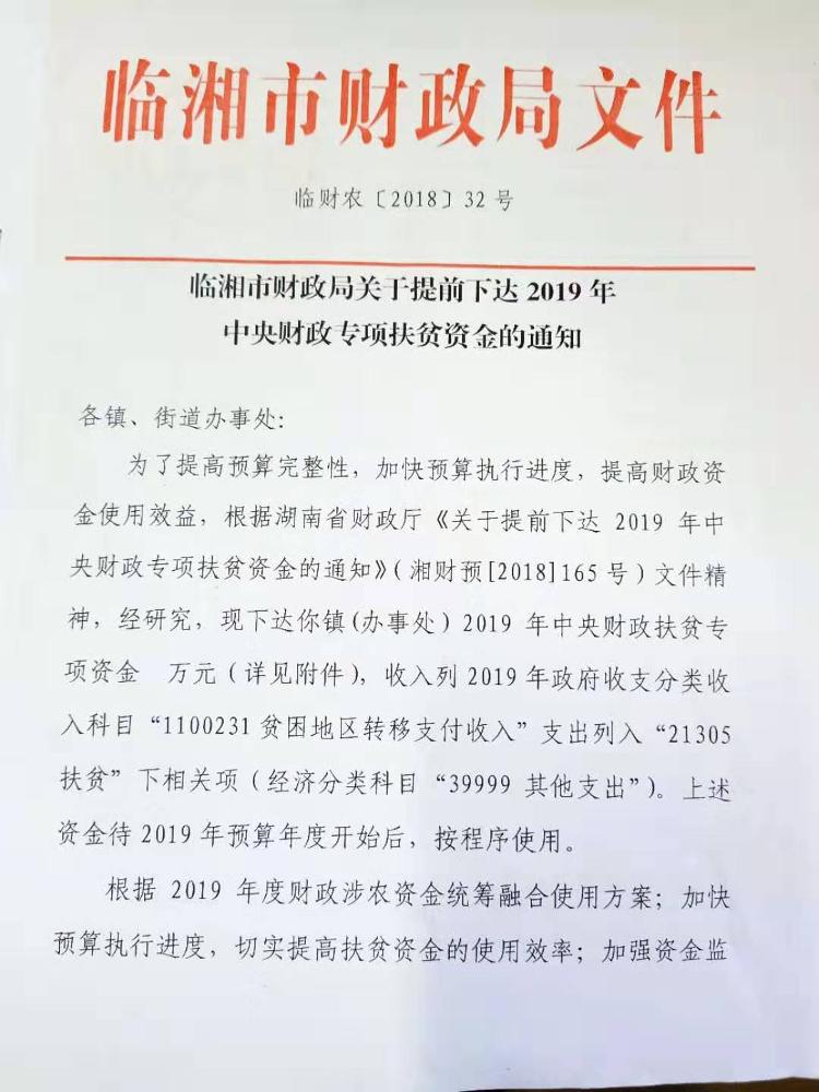 关于提前下达2019年中央财政专项扶贫资金的通知